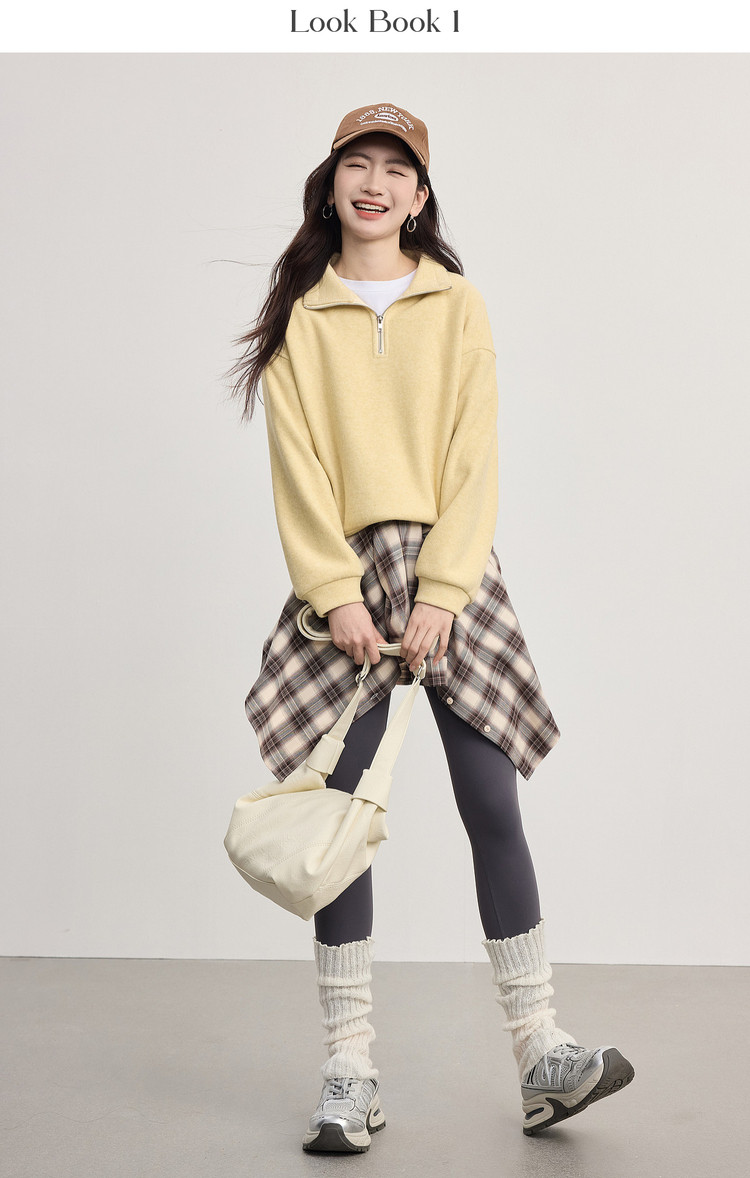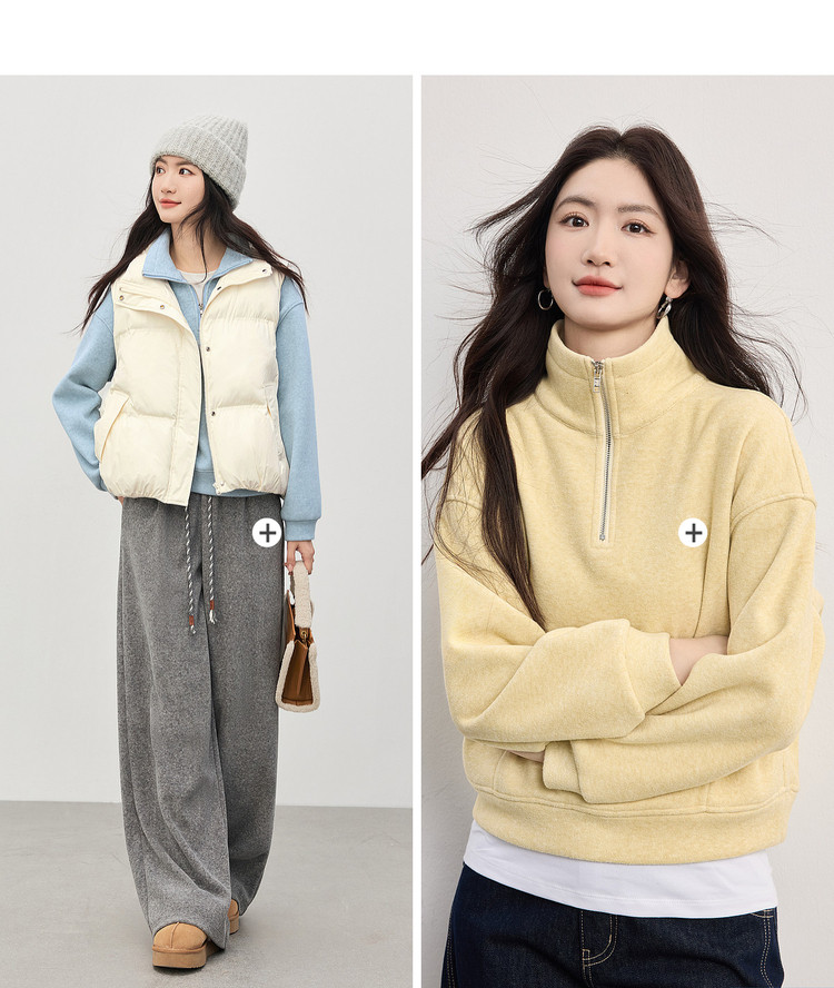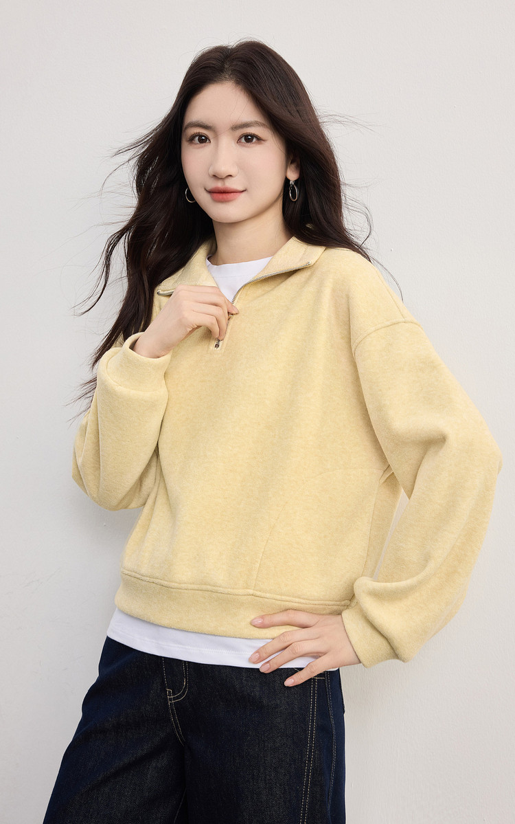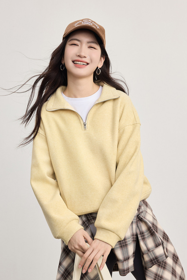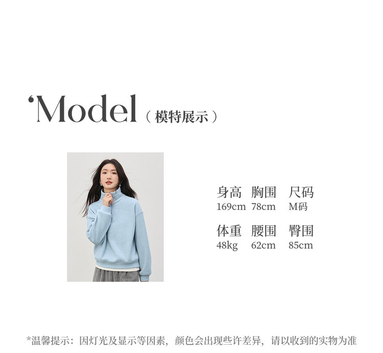 【1/21新品】熙世界盐系蓝色半拉链立领卫衣女加绒加厚秋冬运动风宽松休闲上衣
