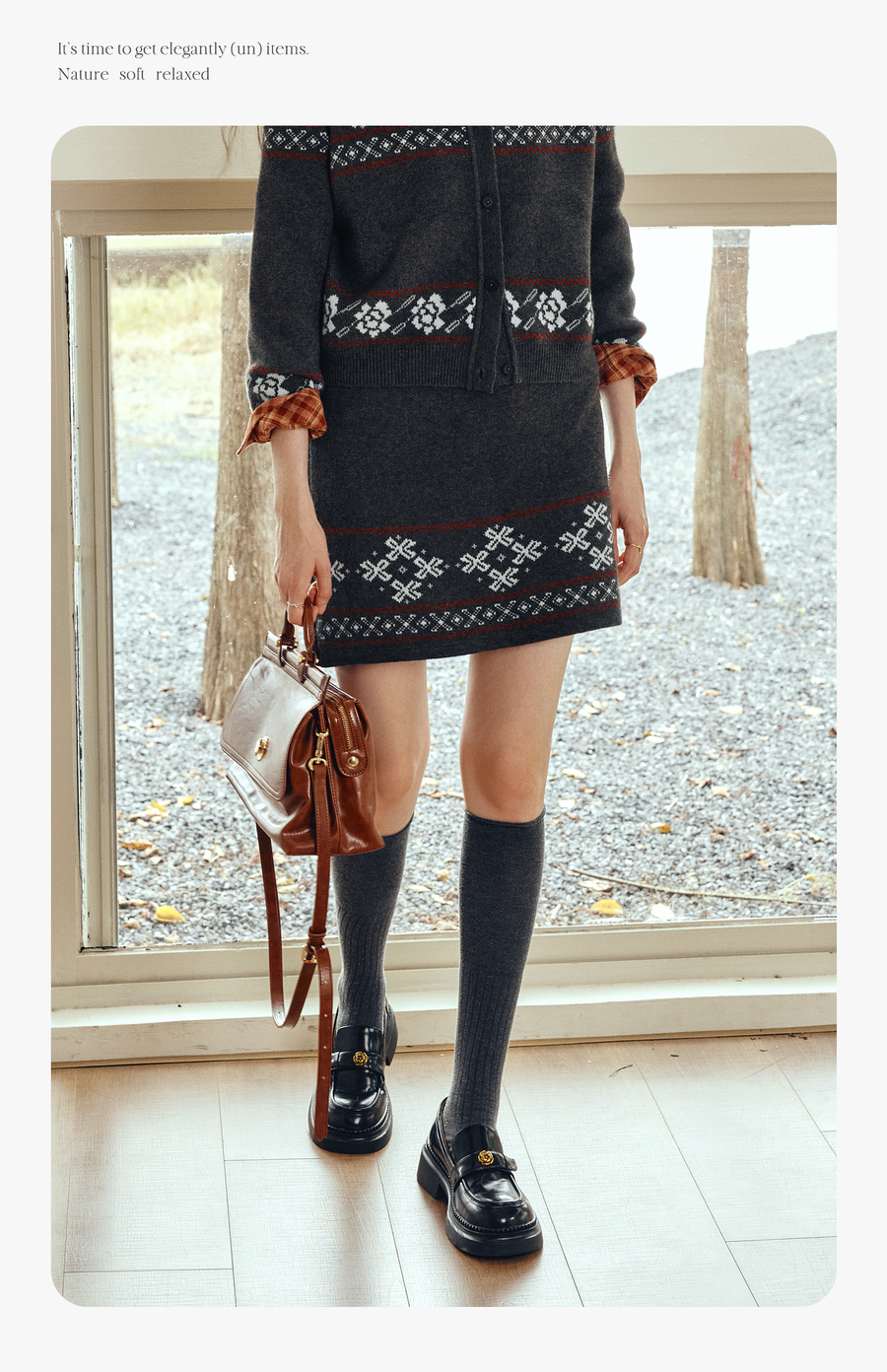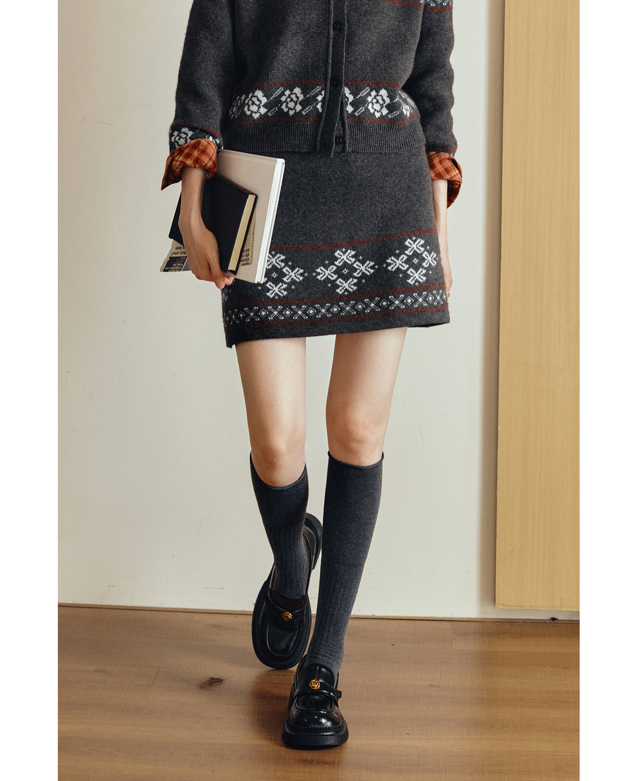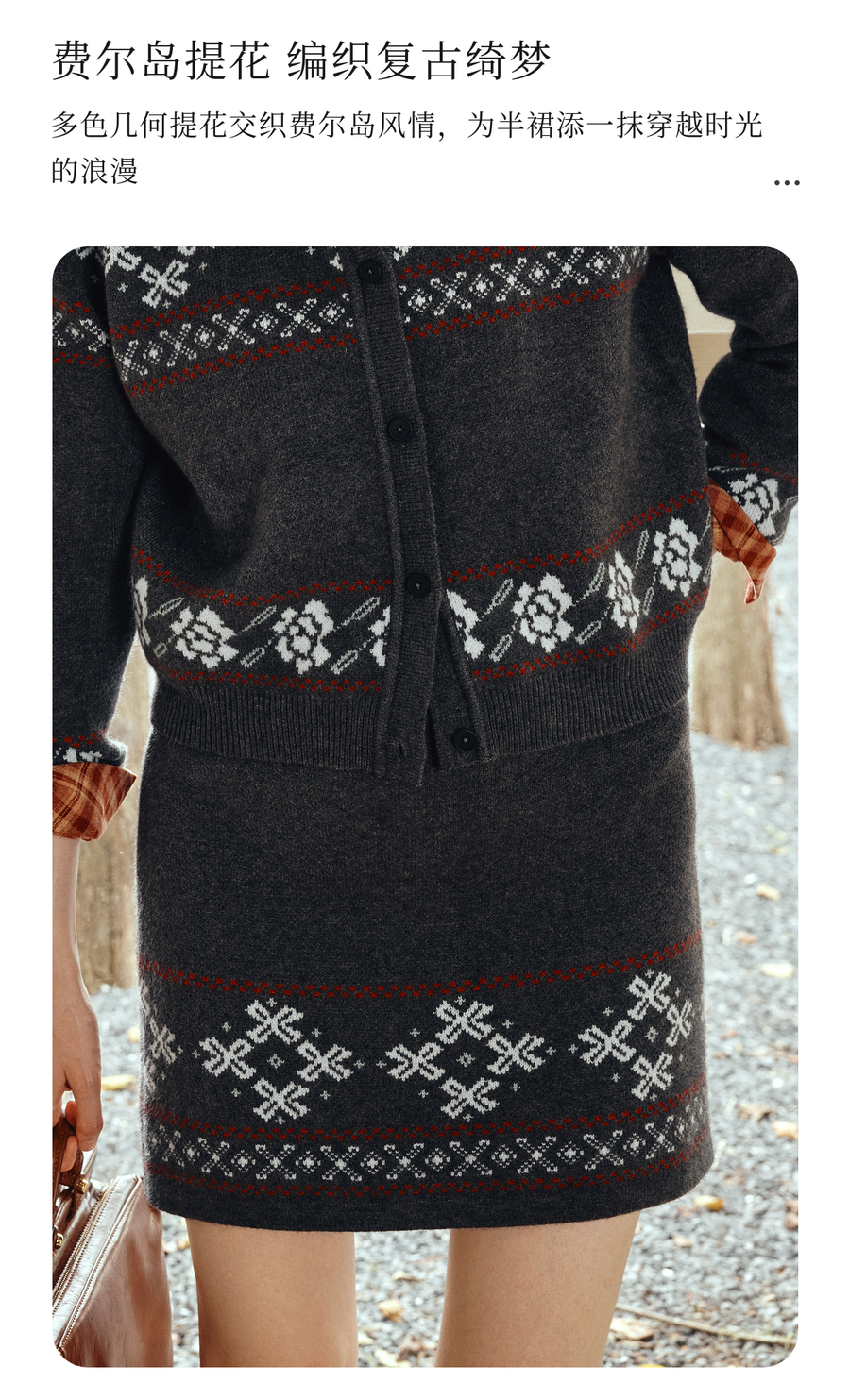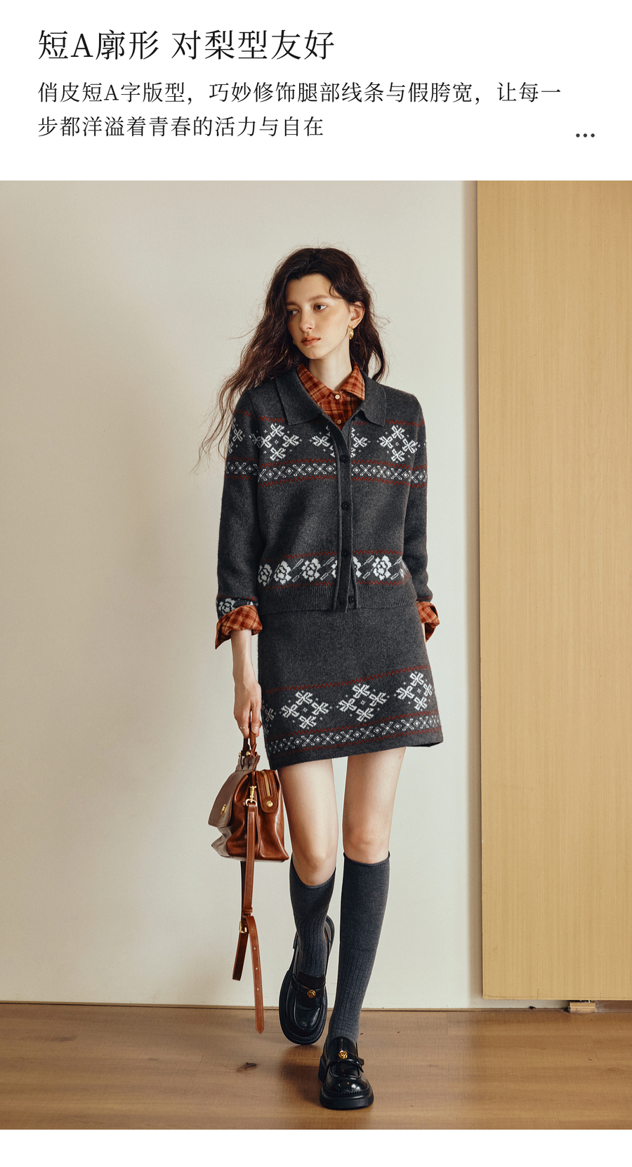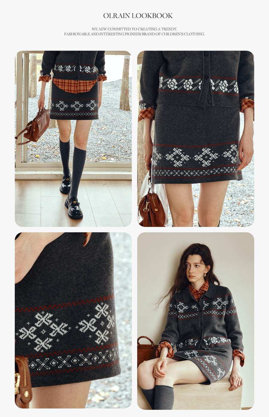 OLrain欧芮儿2025新款女秋季灰色费尔岛复古风毛织半身裙直筒短裙