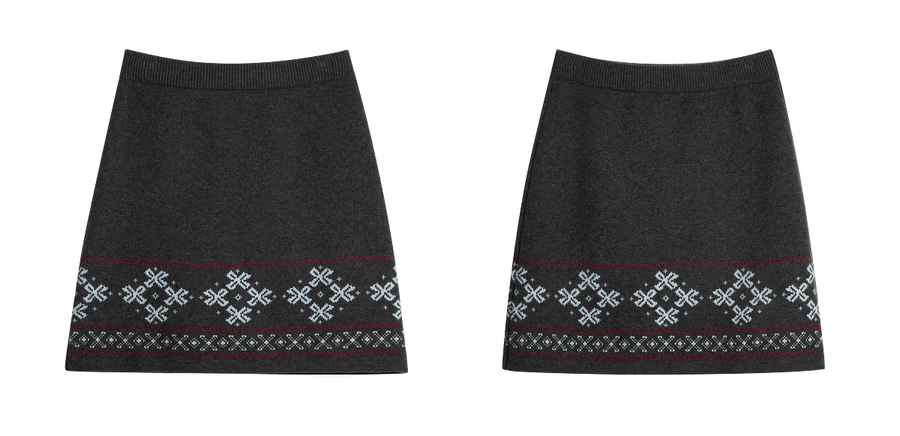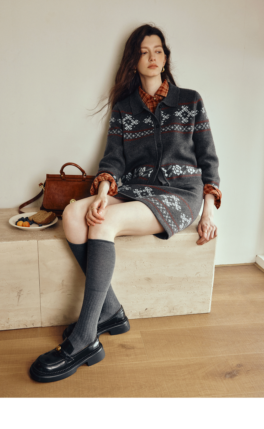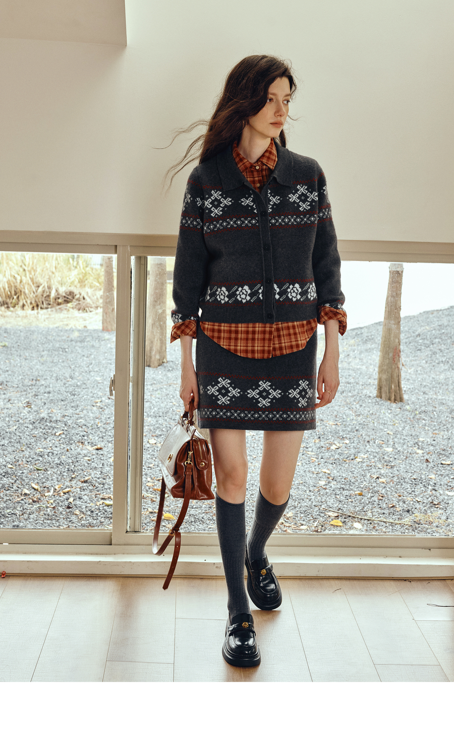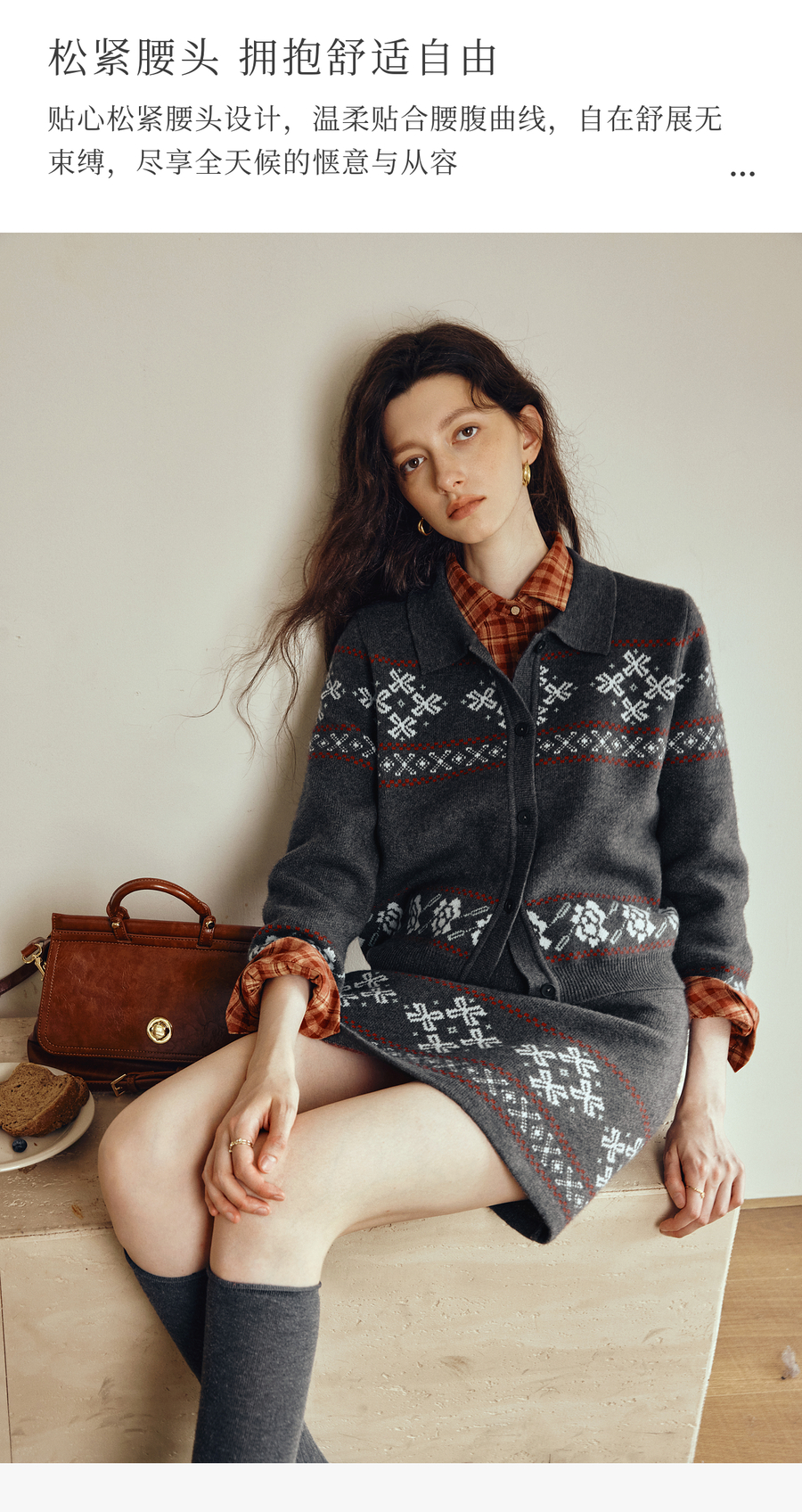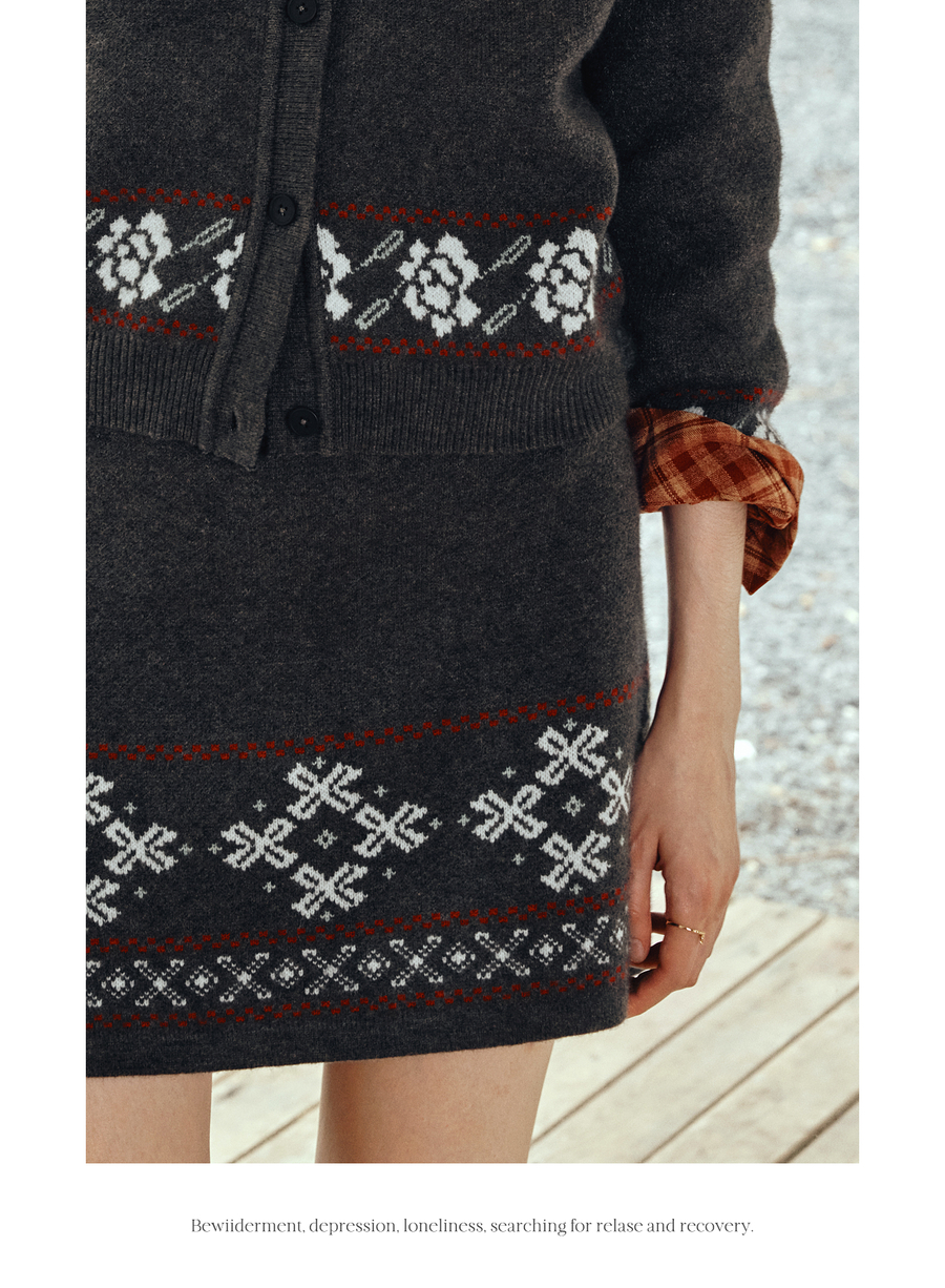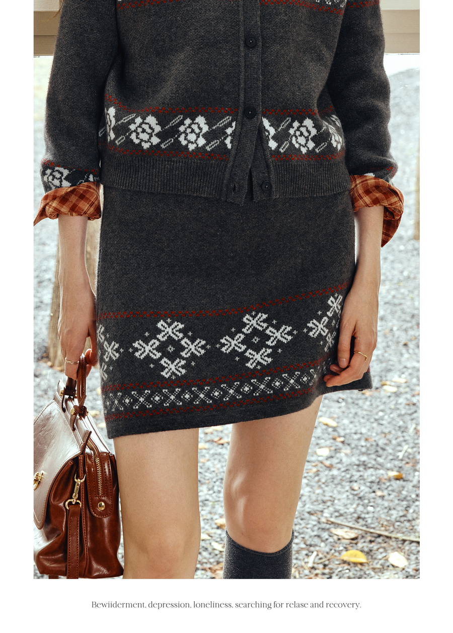 OLrain欧芮儿2025新款女秋季灰色费尔岛复古风毛织半身裙直筒短裙