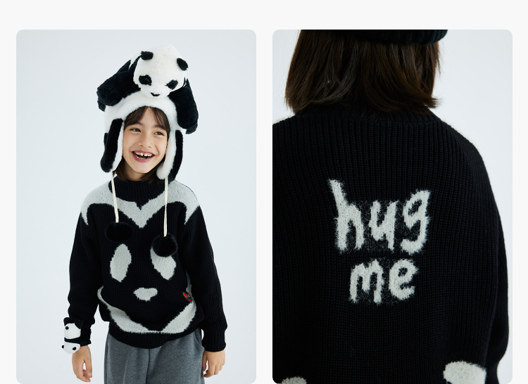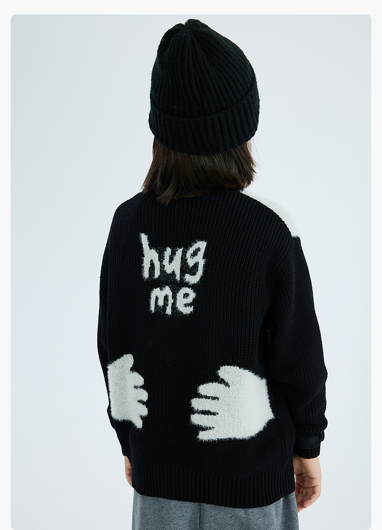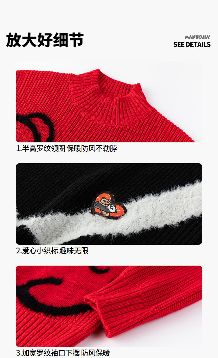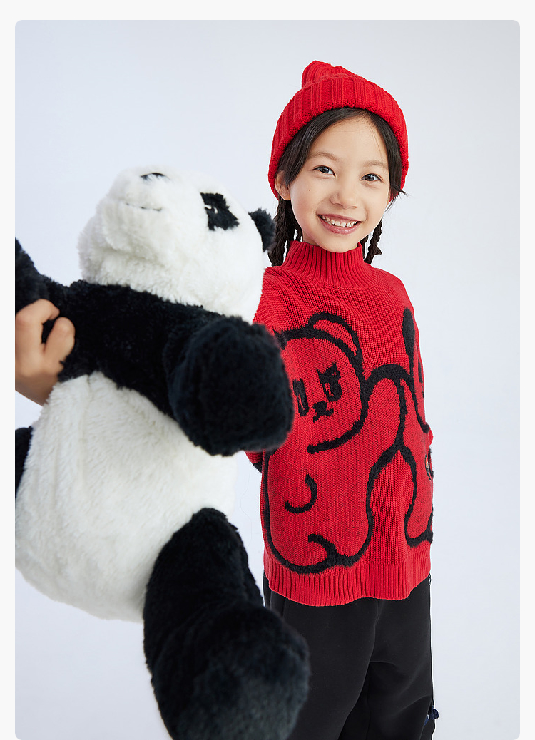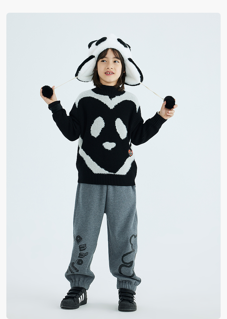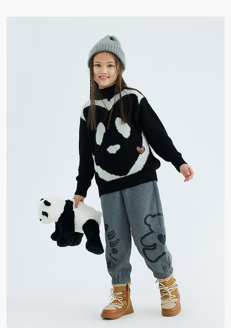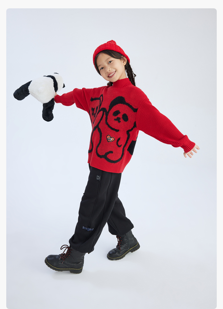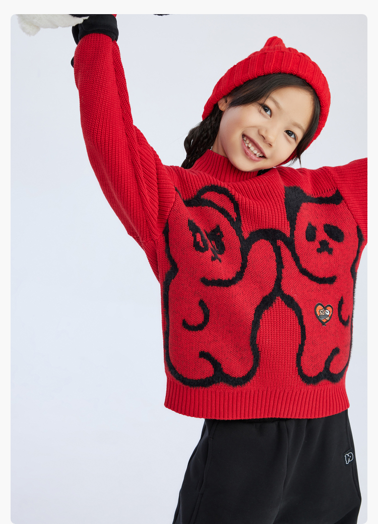 漫画家潮童装冬季卡通提花圆领套头毛衣儿童宽松弹力上衣羊毛混纺
