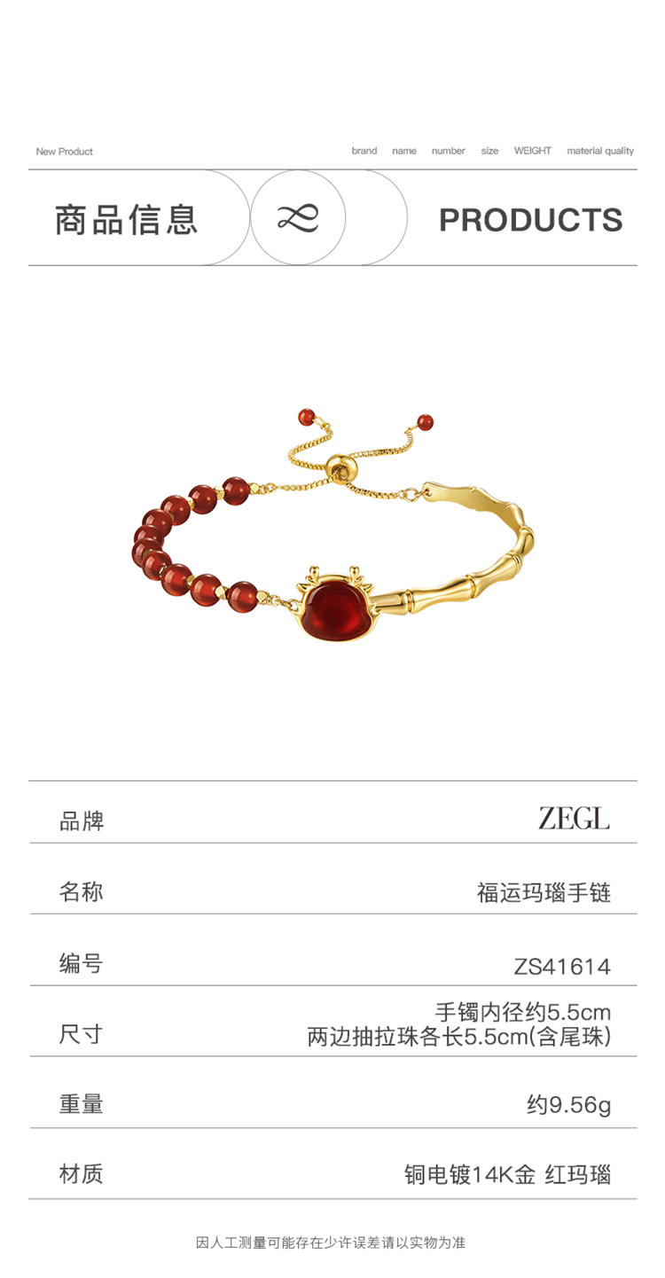 ZEGL设计师本命年龙系列红玛瑙竹节手链女生小众节节高升新年手饰