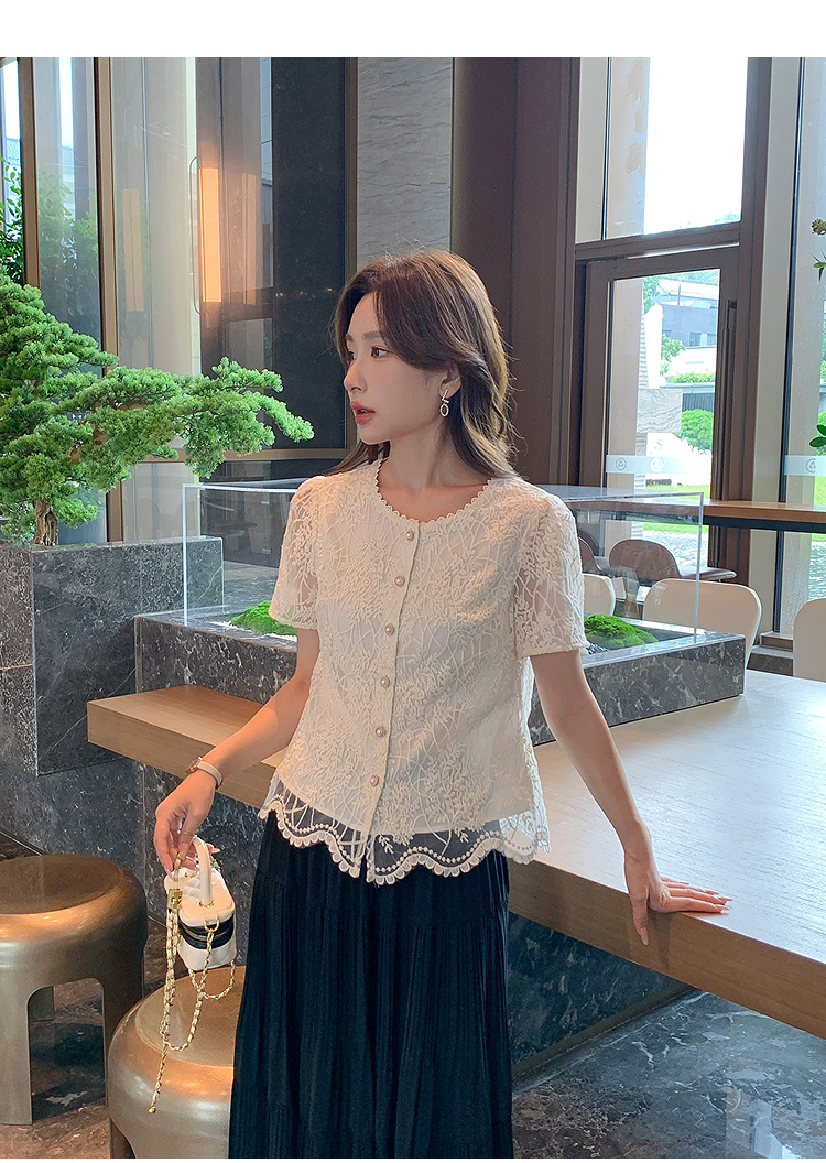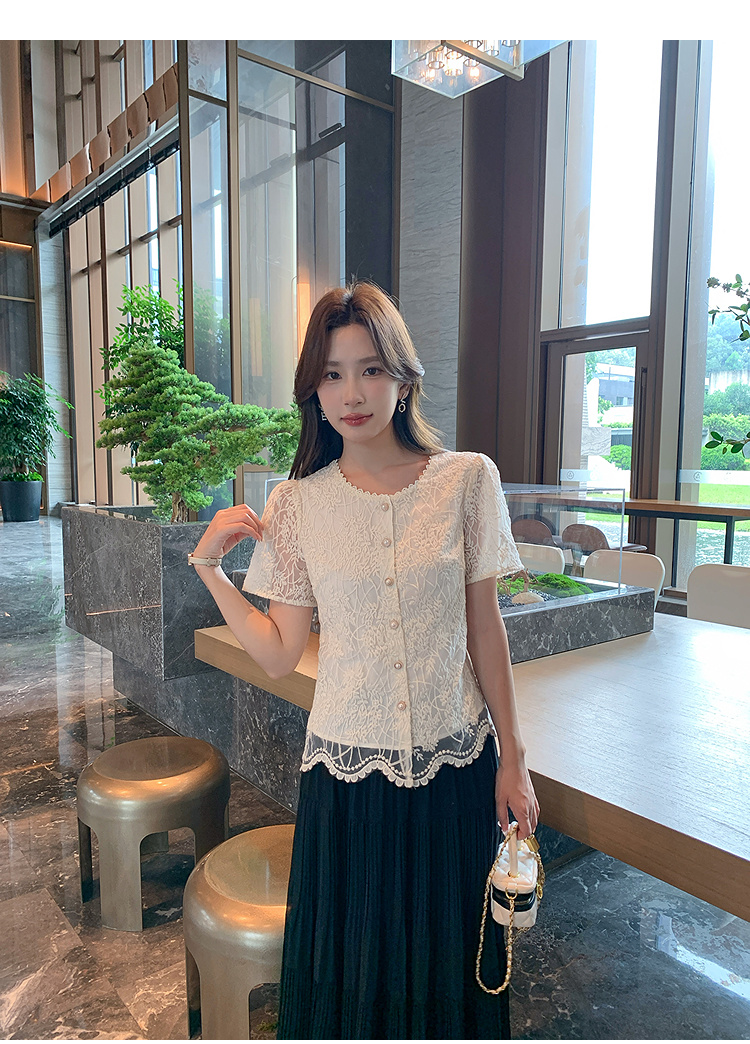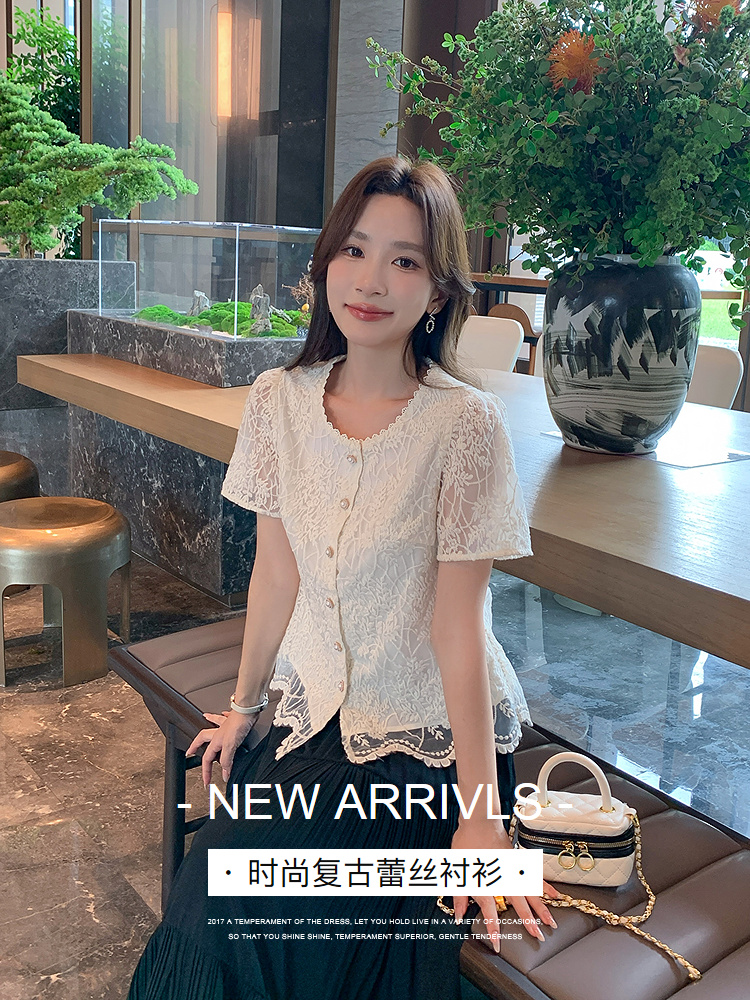 奢姿大码女装2025夏季复古蕾丝洋气百搭衬衫胖妹妹花边时尚上衣9952258193