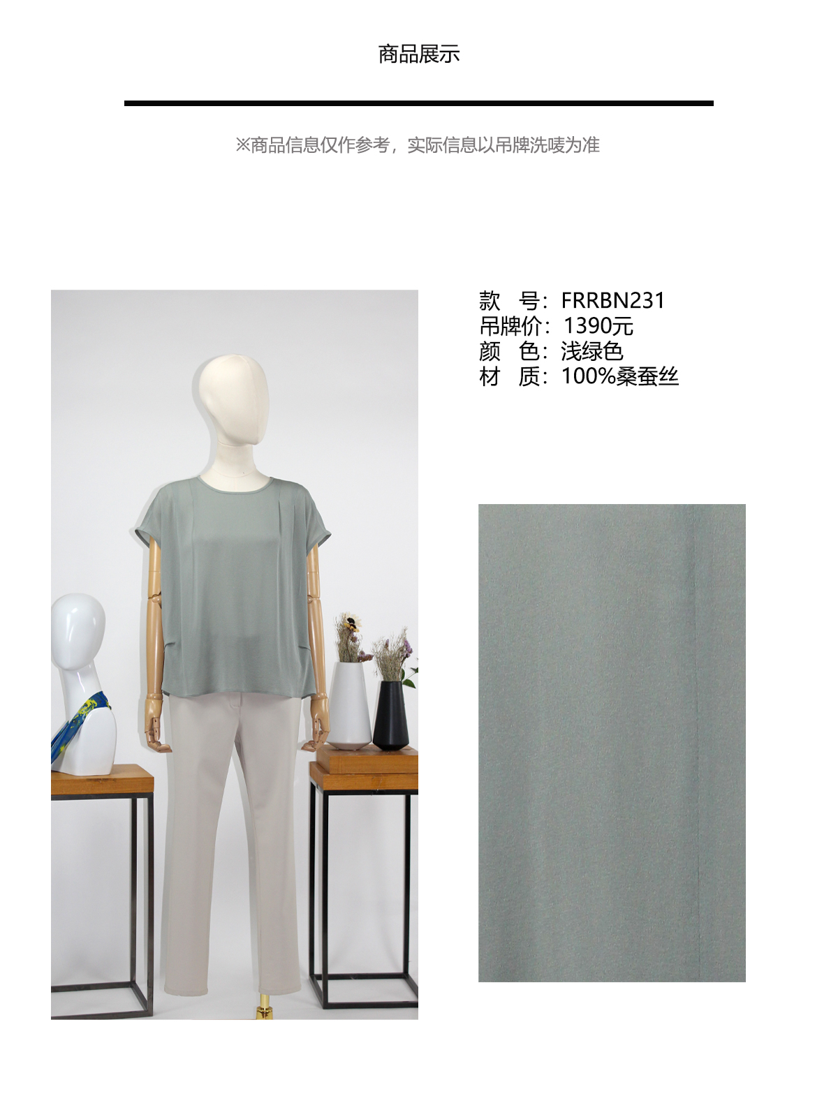FOCALS女装夏季新款桑蚕丝圆领包袖纯色套头衬衫上衣FRRBN231G2