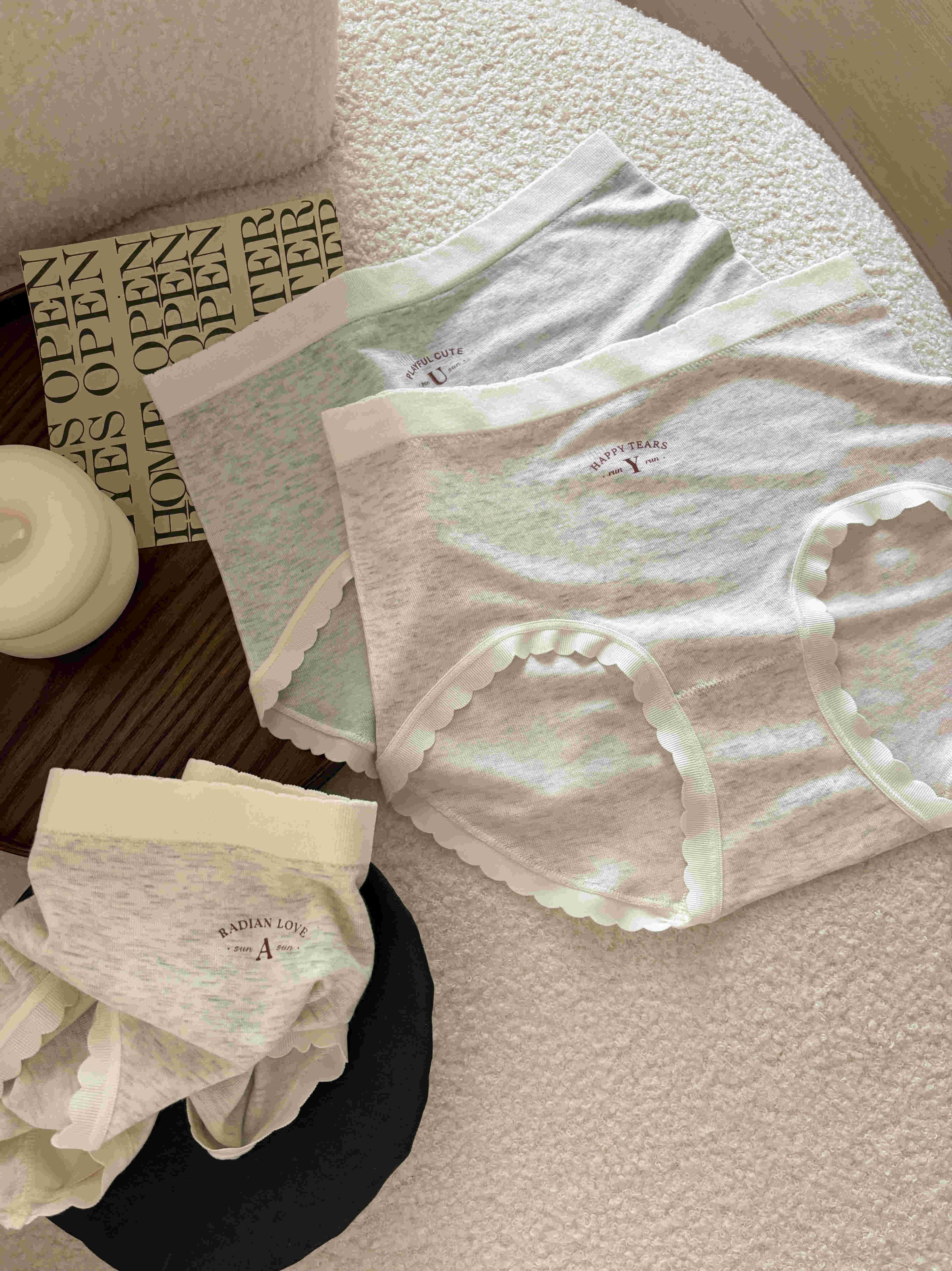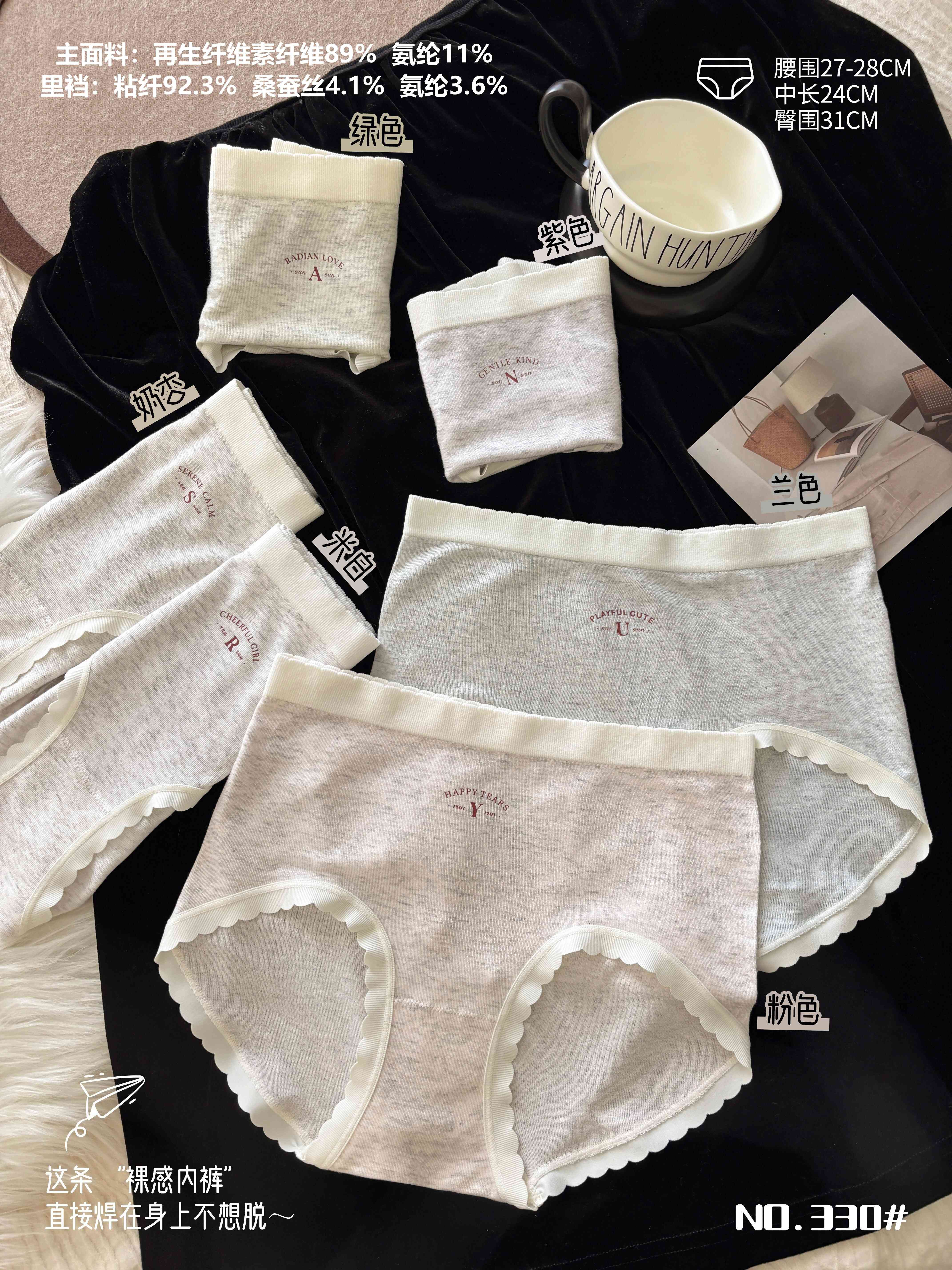 0330女士裸氨舒适透气高弹力无缝内裤三角裤彩纱撞色浅色