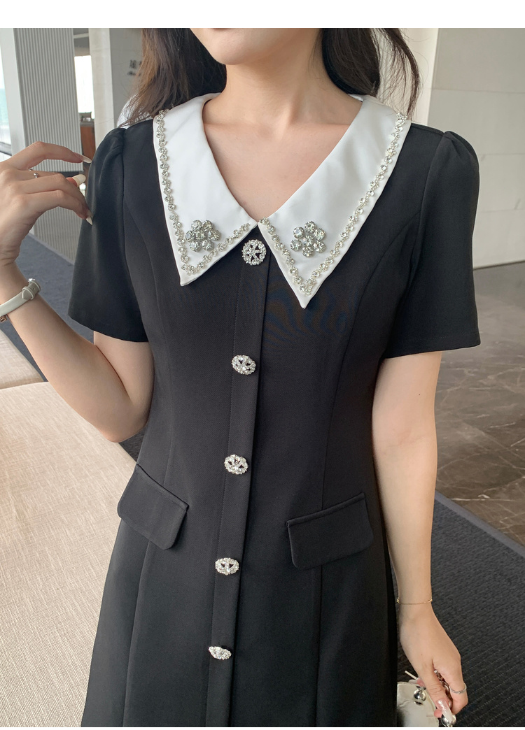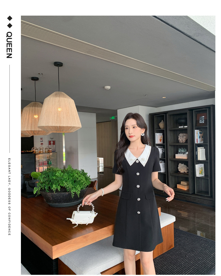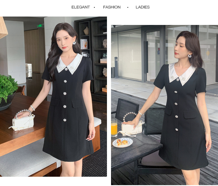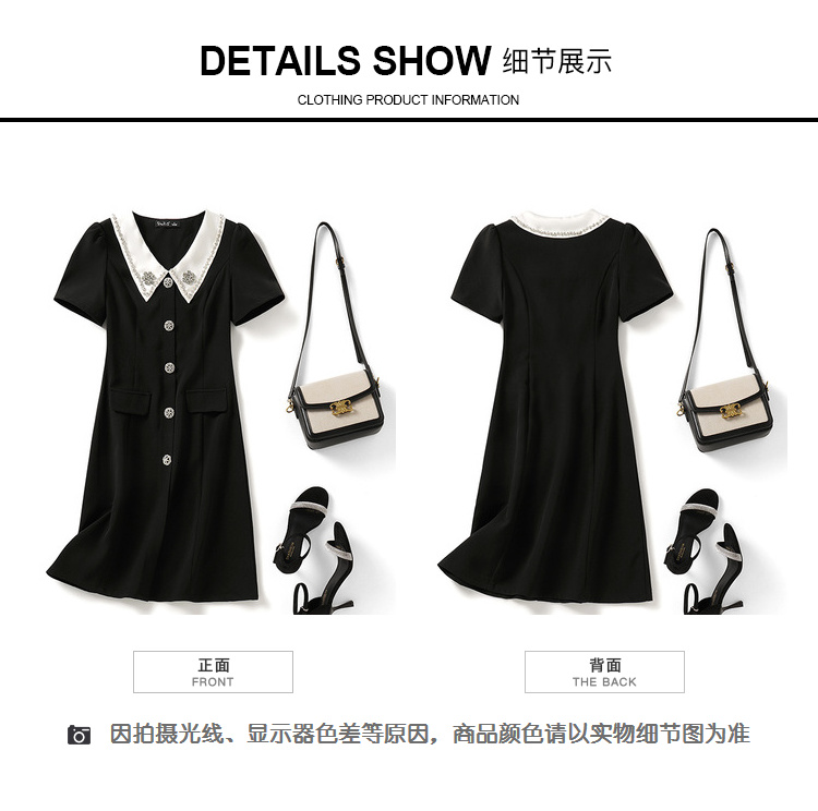 [奢姿轻奢系列]撞色链条连衣裙大码女装夏季新款胖妹妹翻领裙子8942826387
