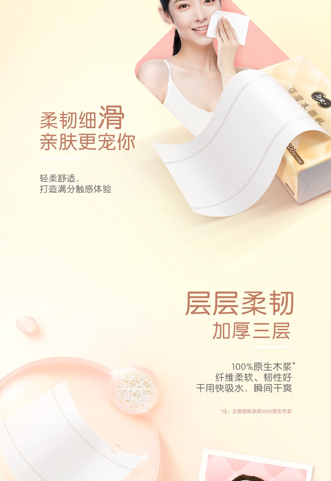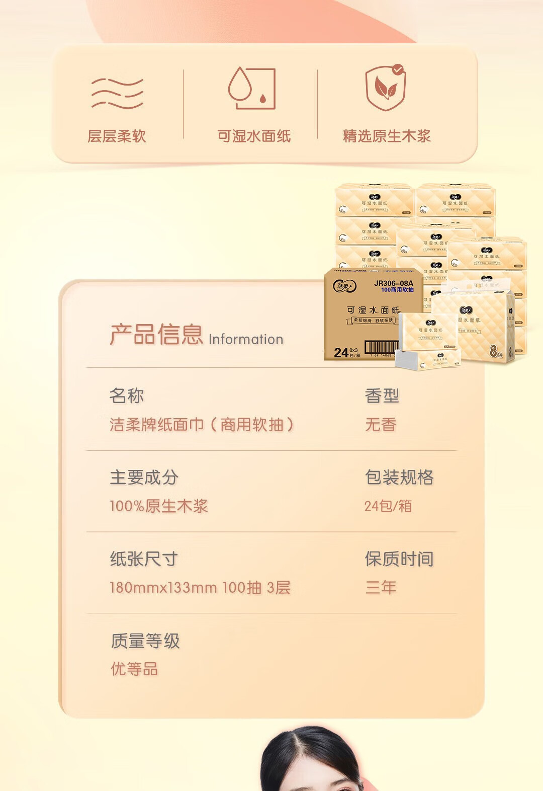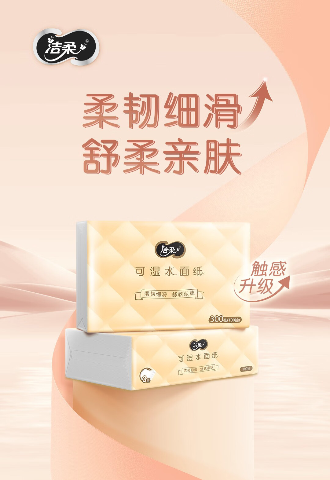 【分仓直发包邮】洁柔抽纸柔韧3层100抽可湿水面巾纸24包整箱JR306-08A
