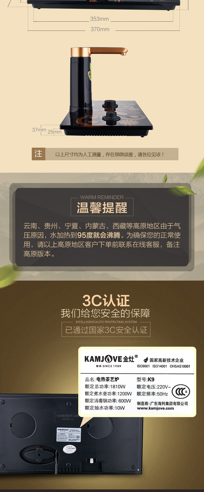 金灶智能玻璃电茶壶K9(仅供济南市区)
