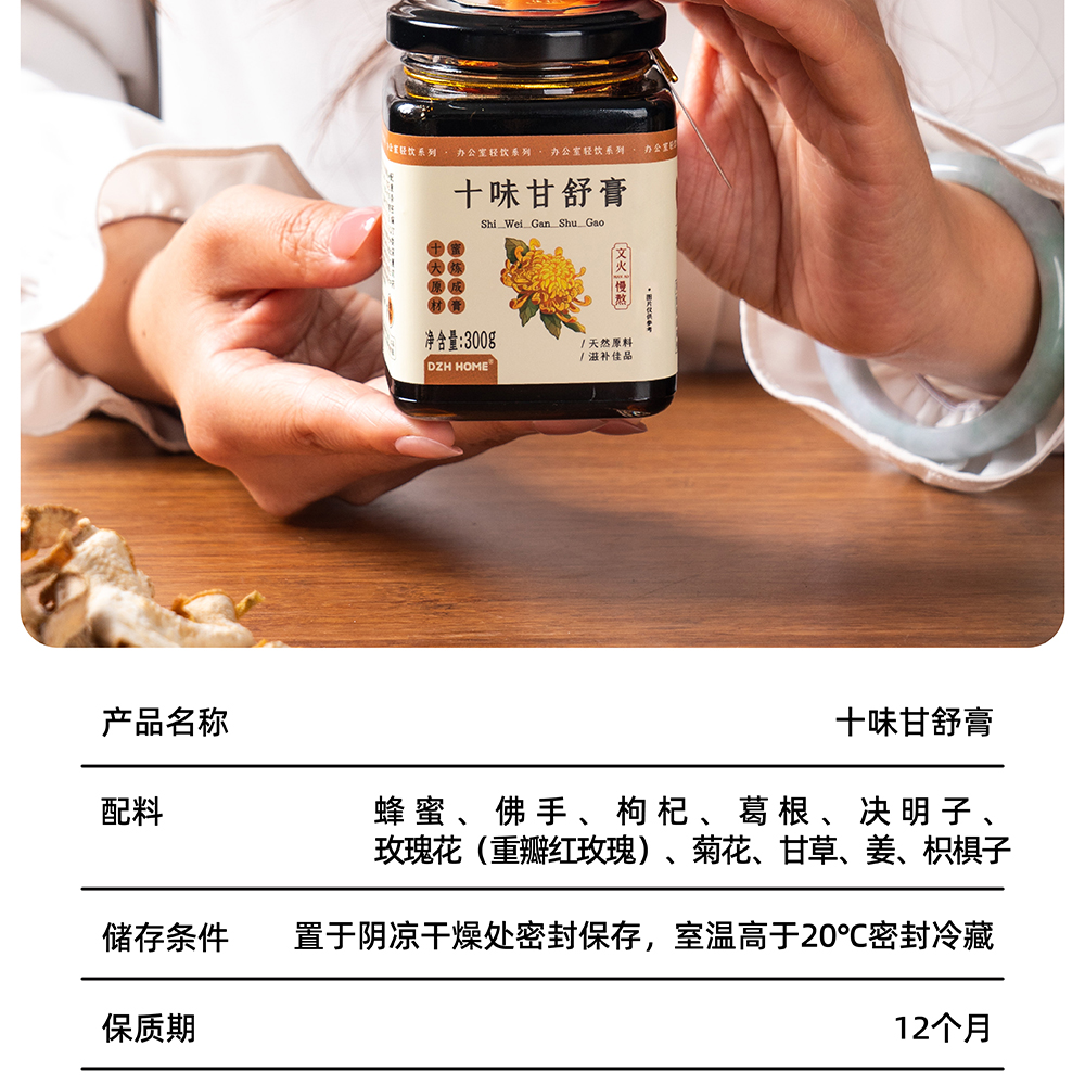 十味甘舒膏 | 甄选食材古法熬制 菊花枸杞葛根佛手玫瑰花酱料