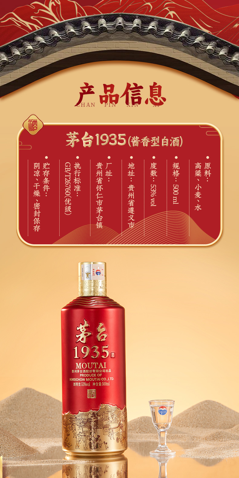 茅台1935 53度 500mL 单瓶装 酱香型白酒