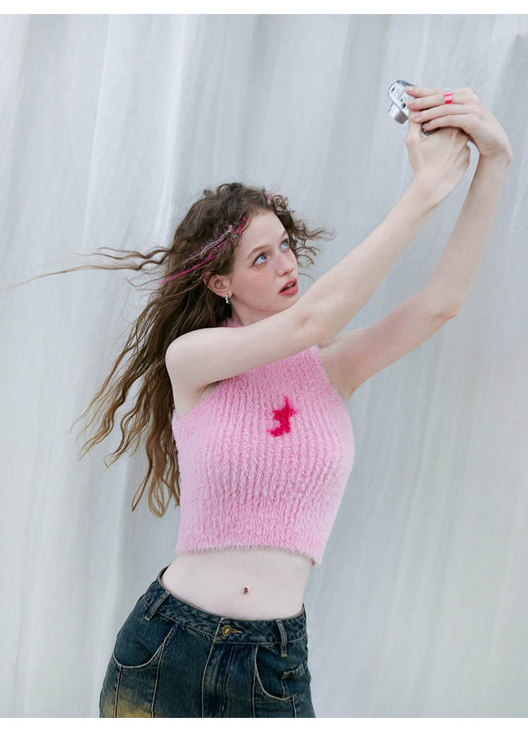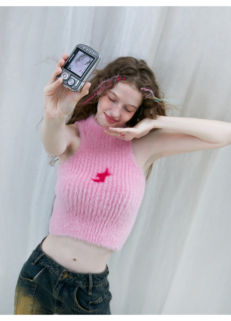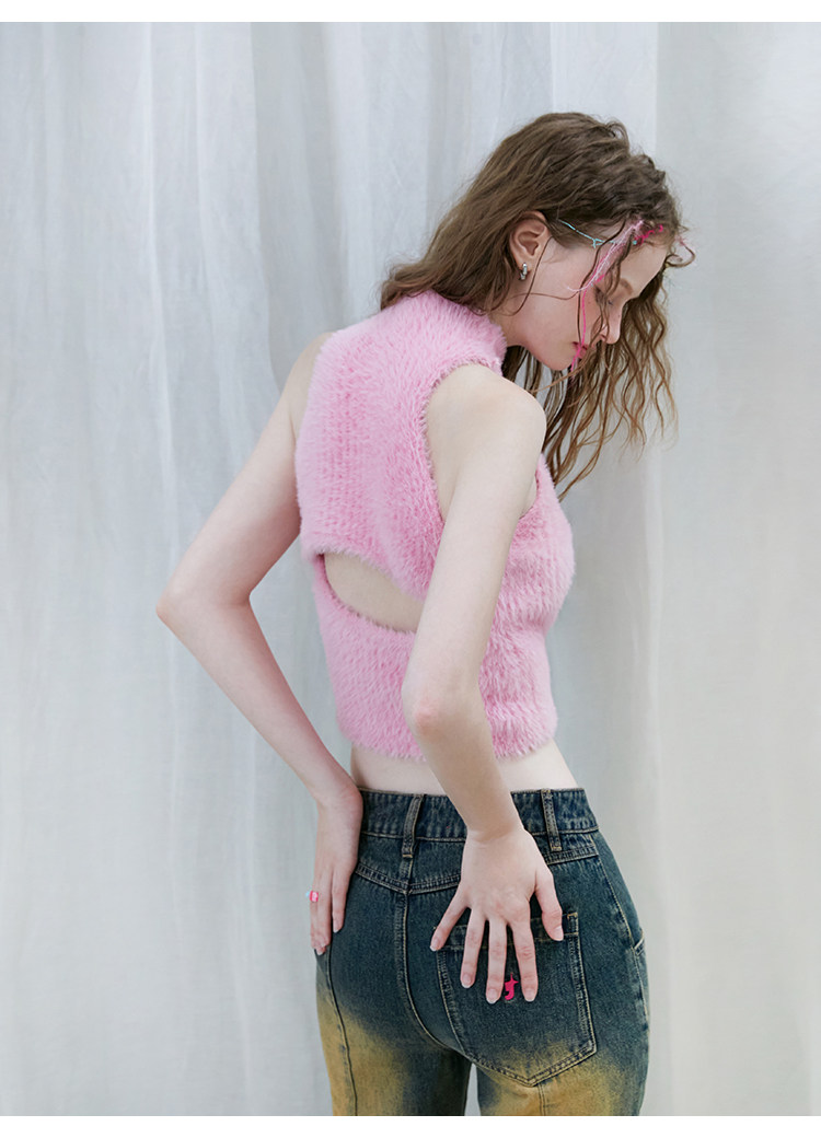 FTT FlyTheTruth『布达佩斯小姐』 粉色针织毛衣背心女冬内搭上衣
