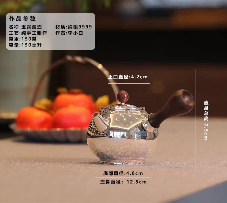 李小白银壶 纯银9999泡茶银壶 纯银泡茶壶 泡茶银壶 烧水银壶 玉露泡壶