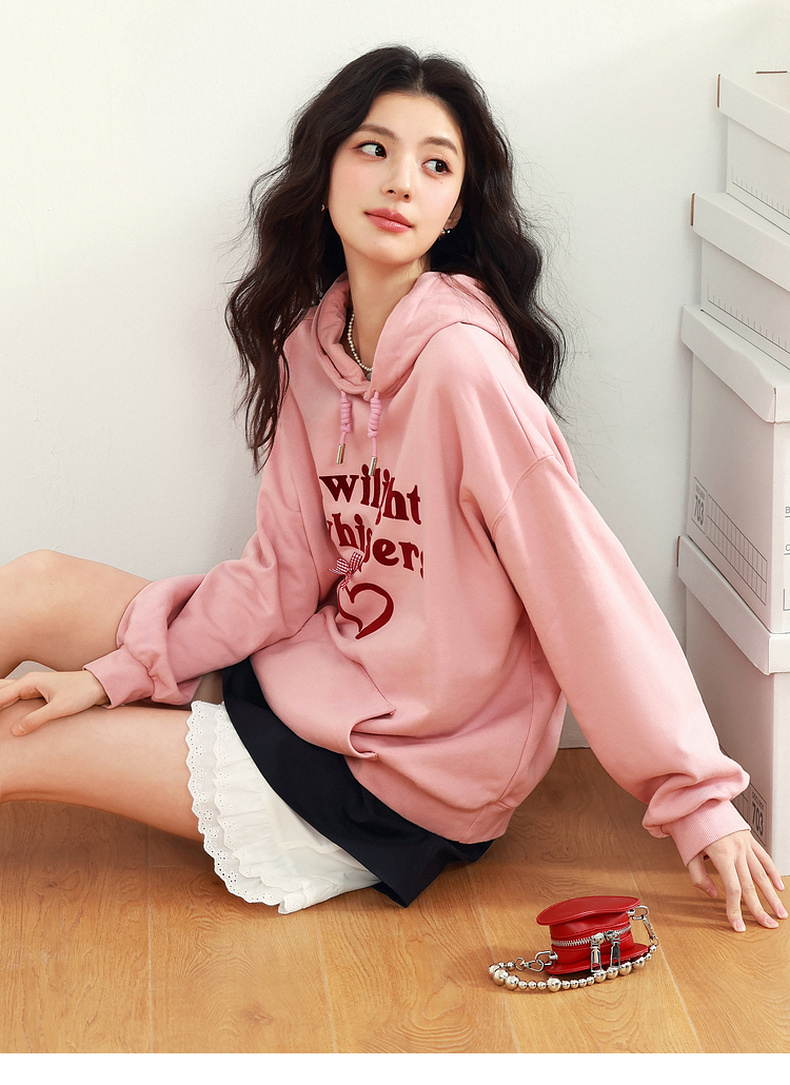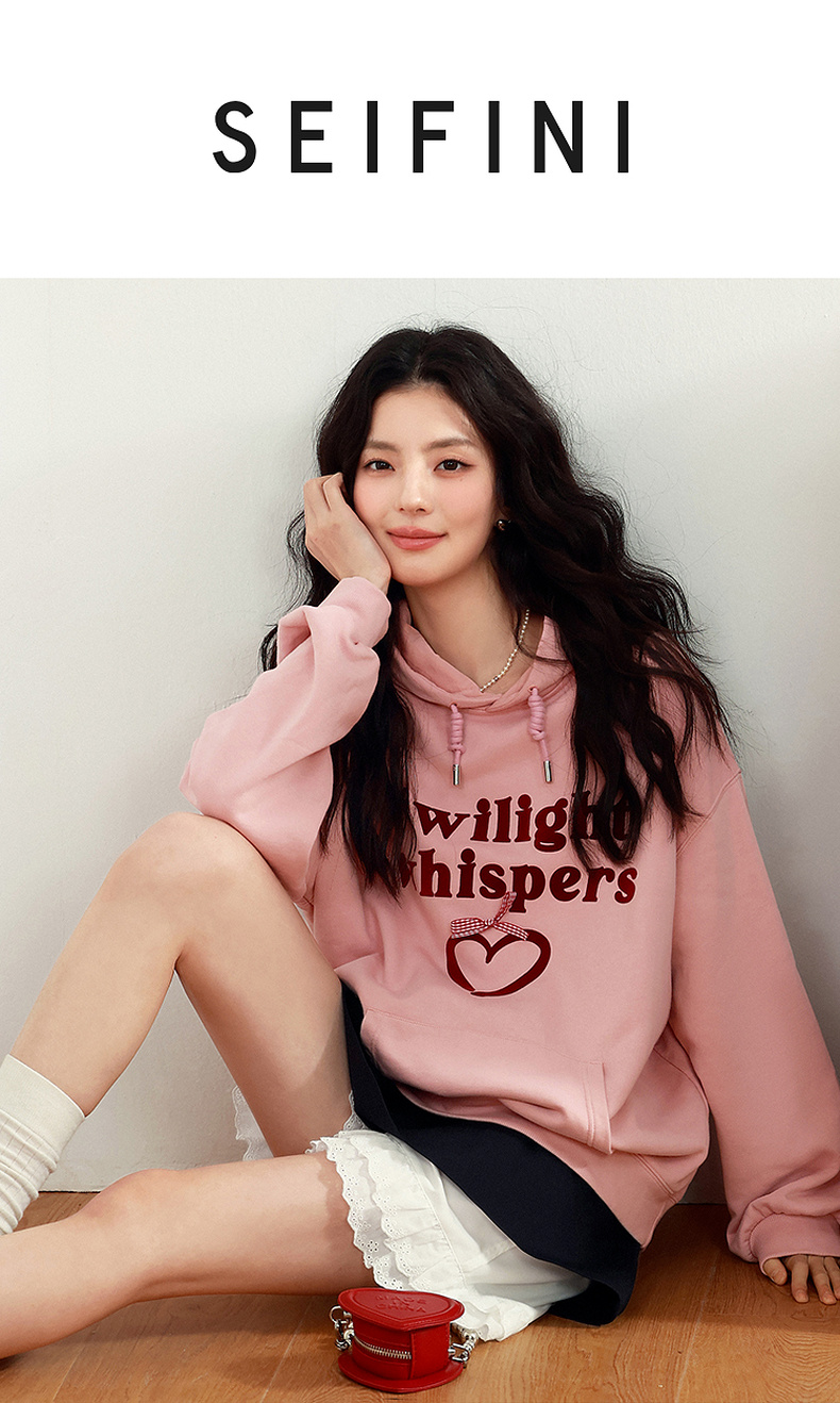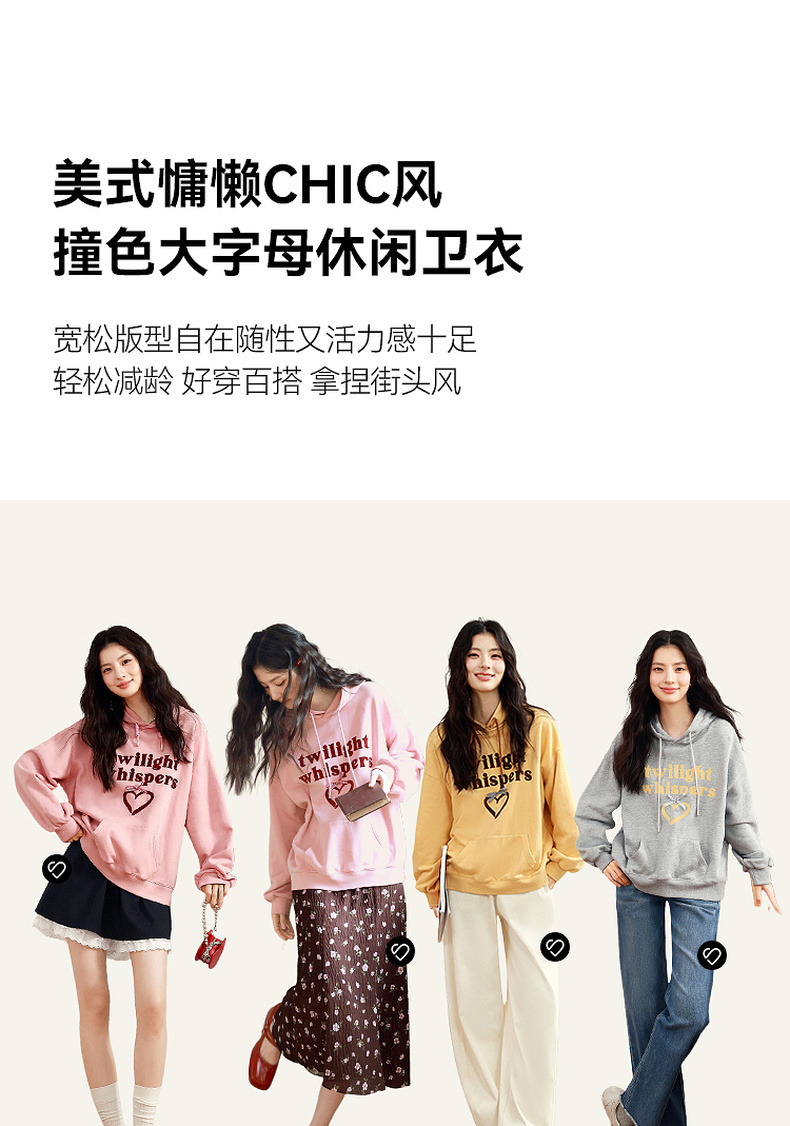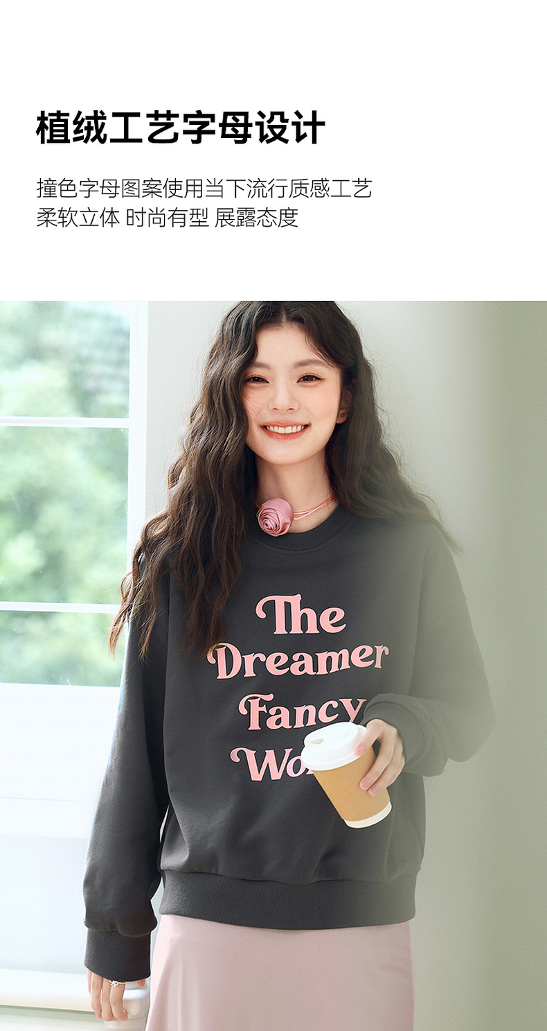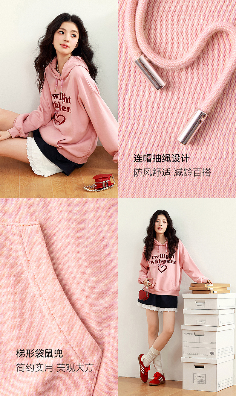 【严选】诗凡黎植绒撞色字母圆领卫衣25春新品运动休闲宽松连帽上衣外套女7G1100601