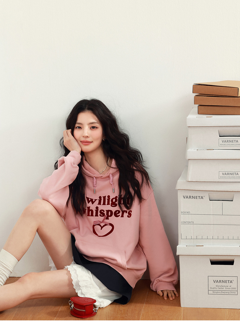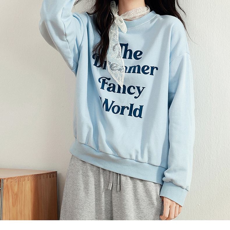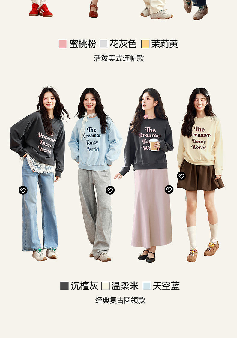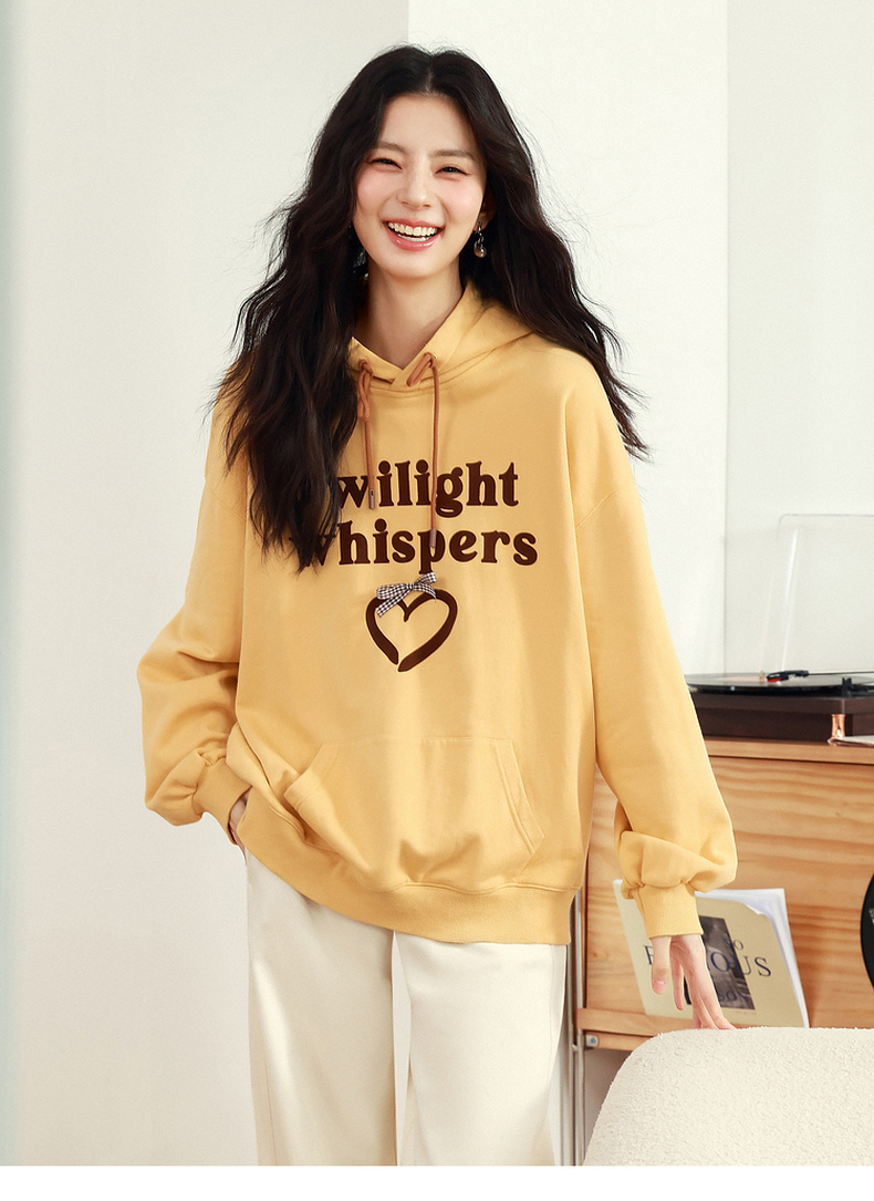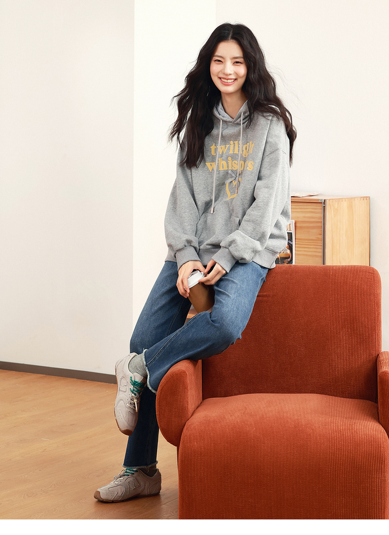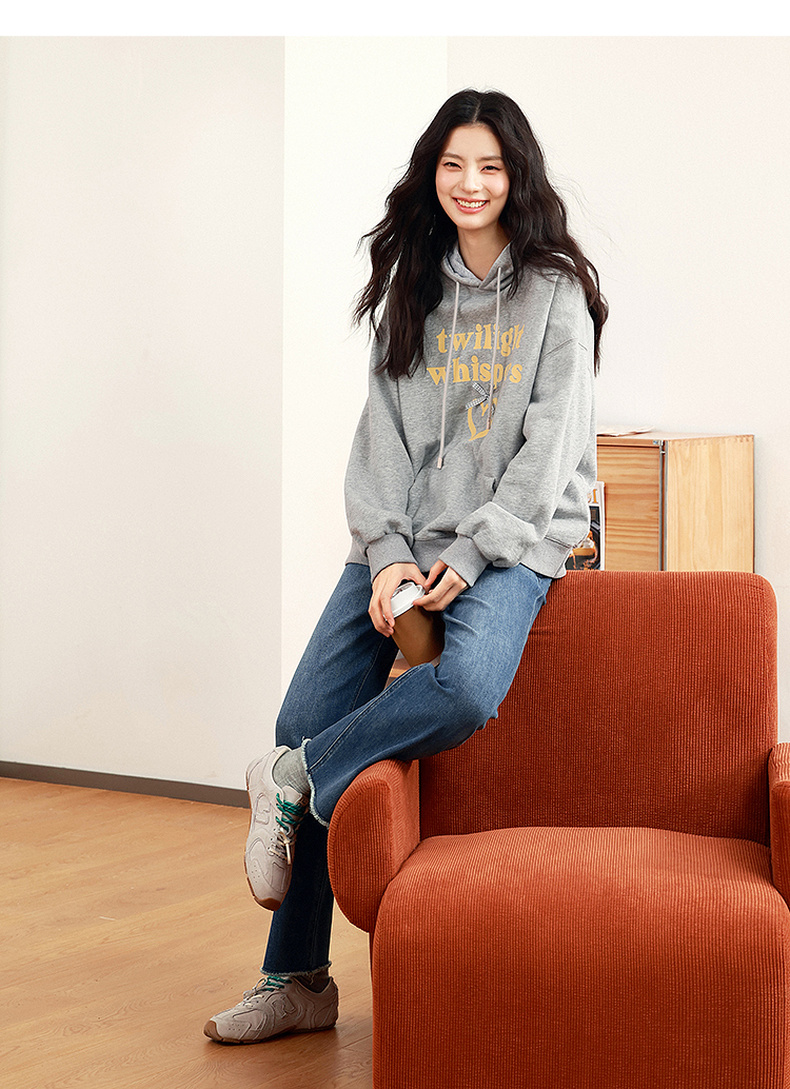 【严选】诗凡黎植绒撞色字母圆领卫衣25春新品运动休闲宽松连帽上衣外套女7G1100601