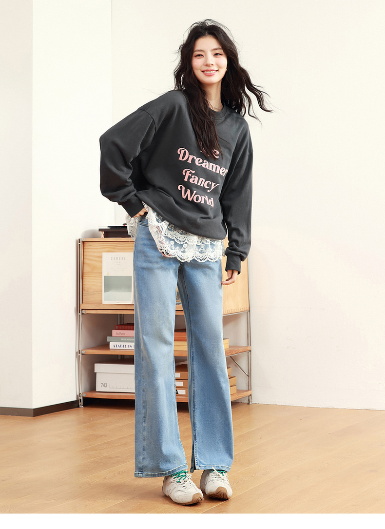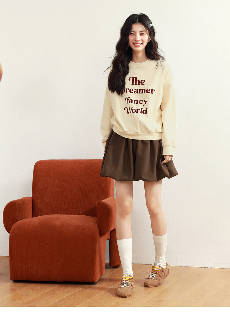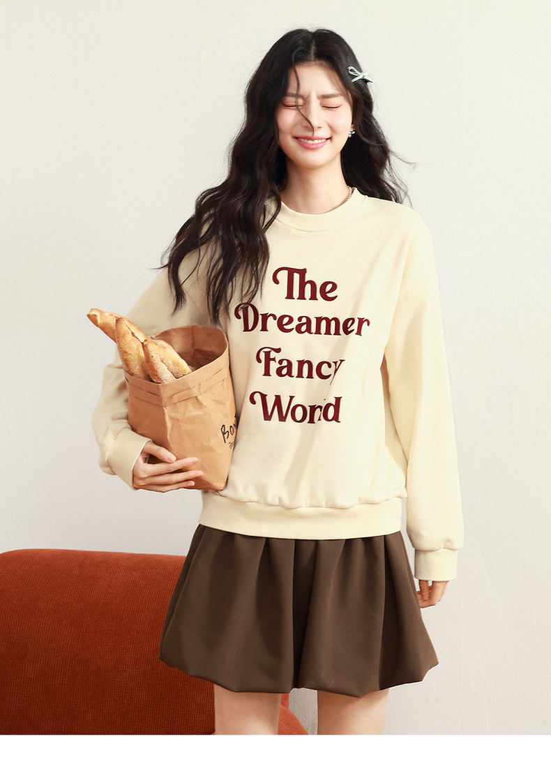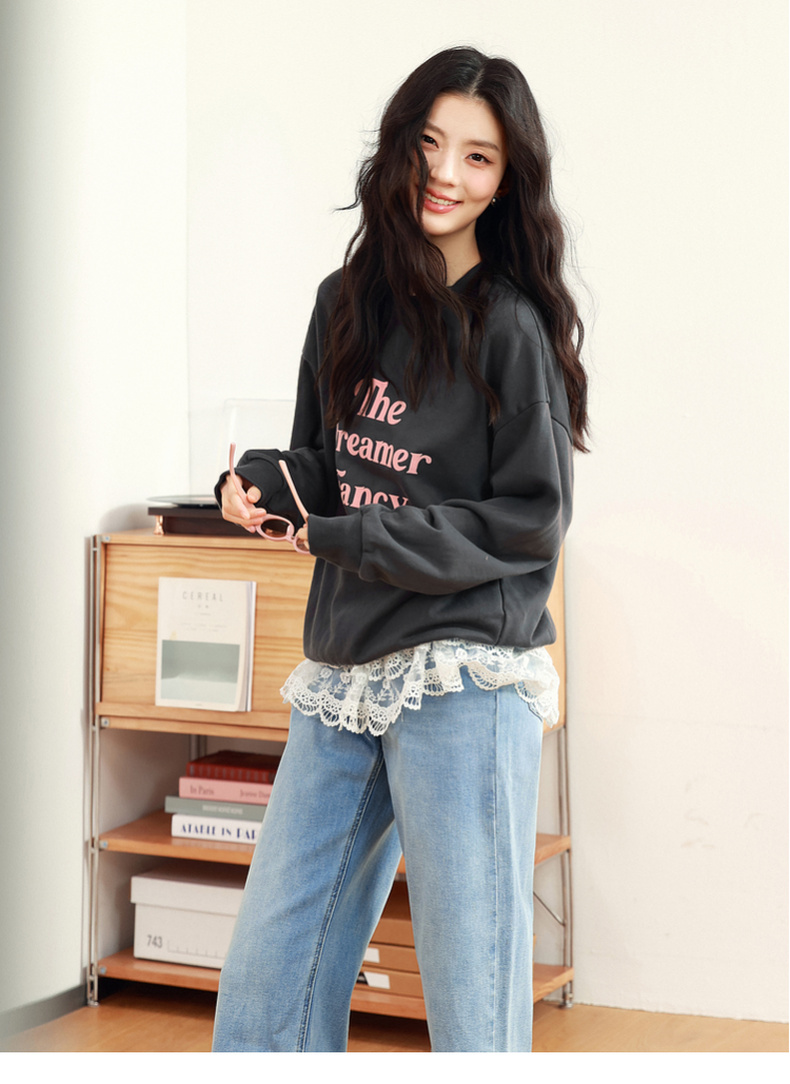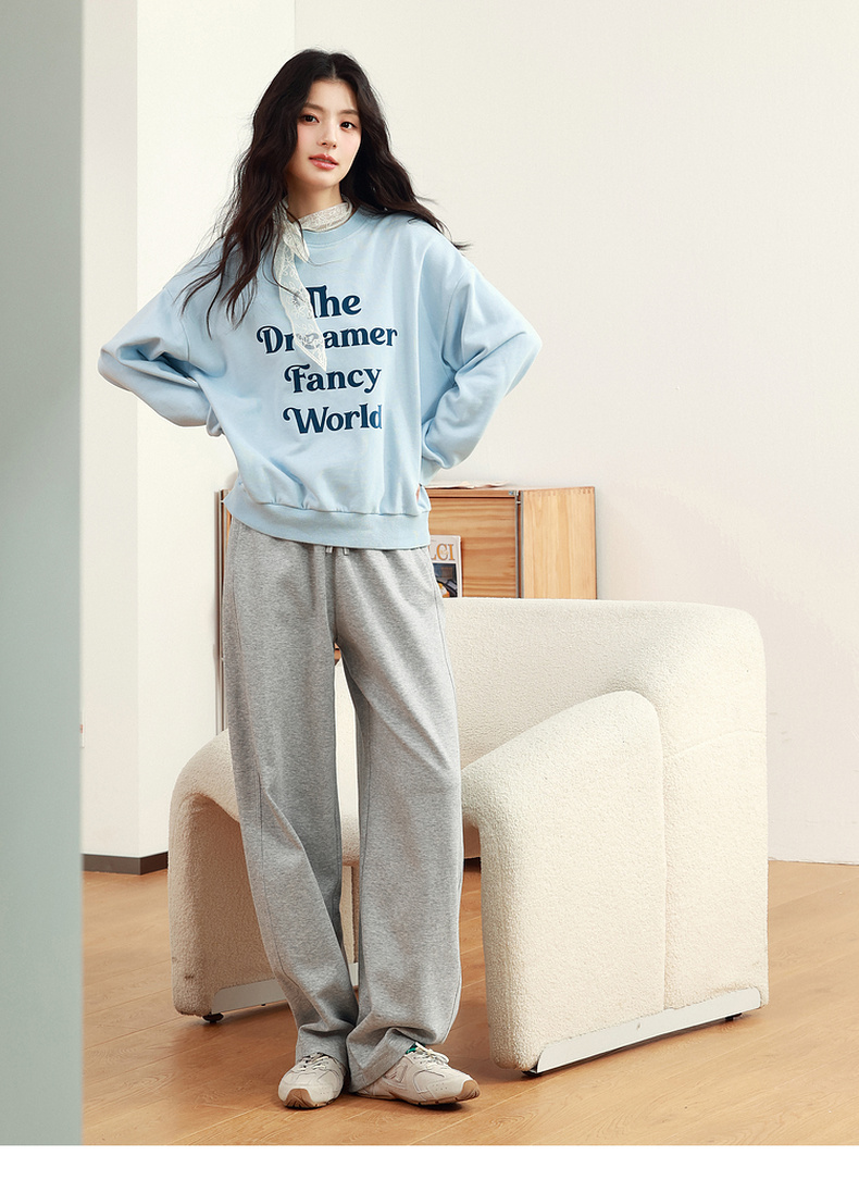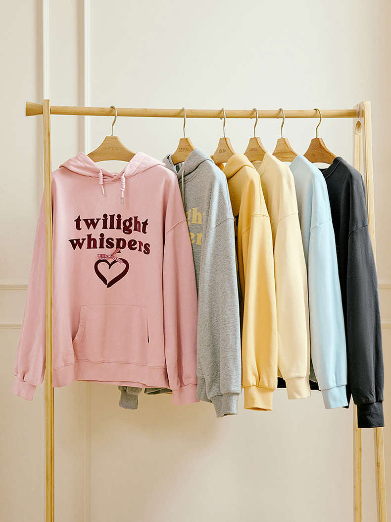 【严选】诗凡黎植绒撞色字母圆领卫衣25春新品运动休闲宽松连帽上衣外套女7G1100601