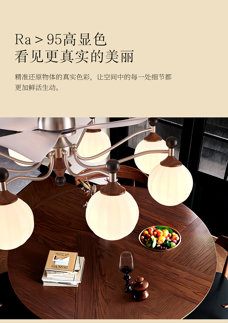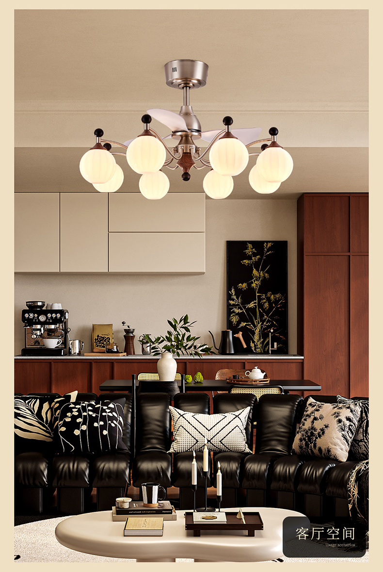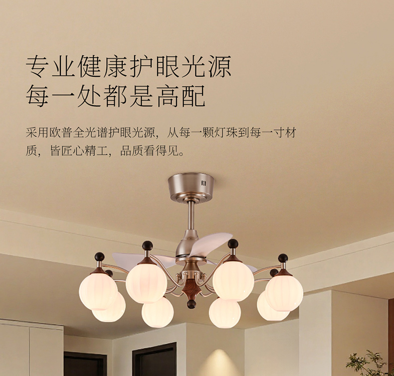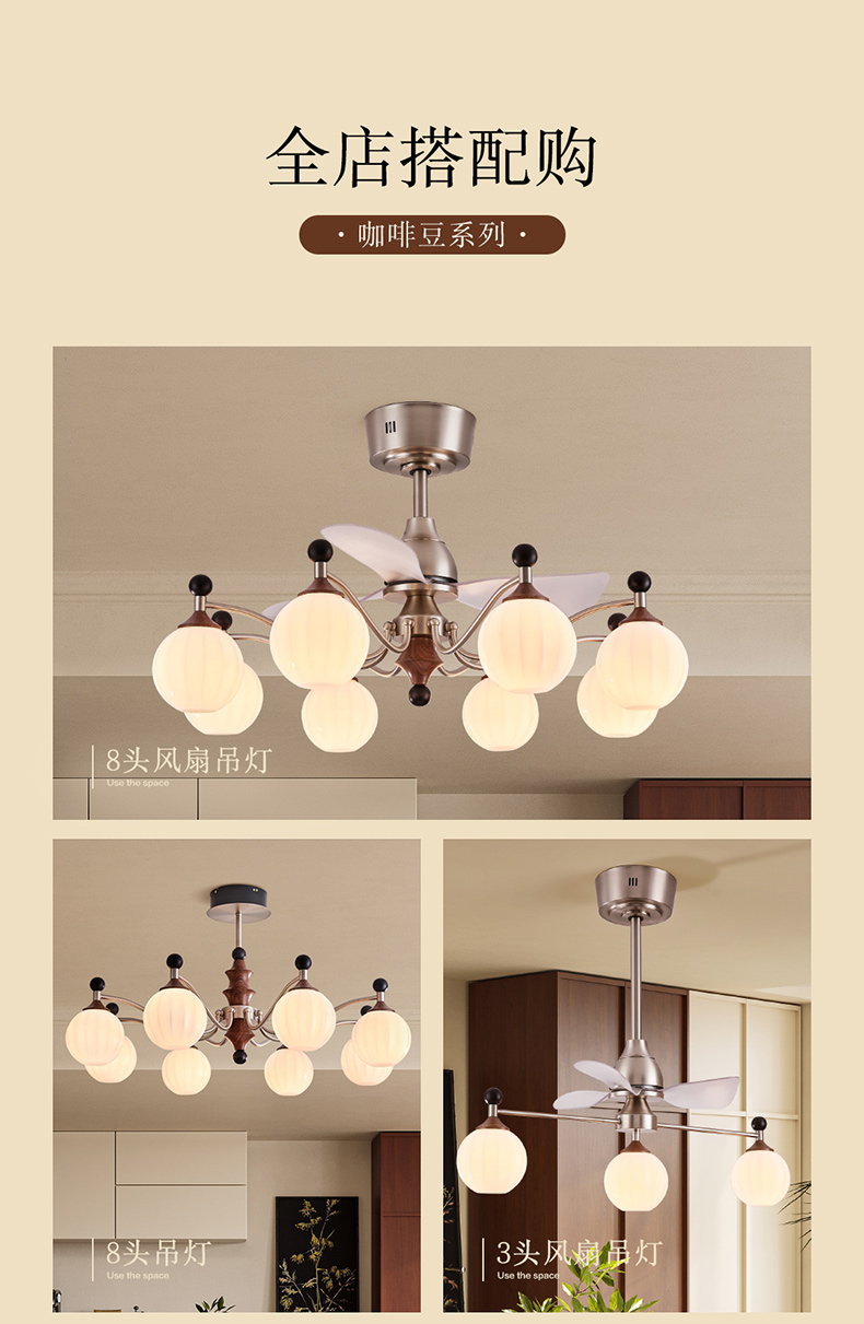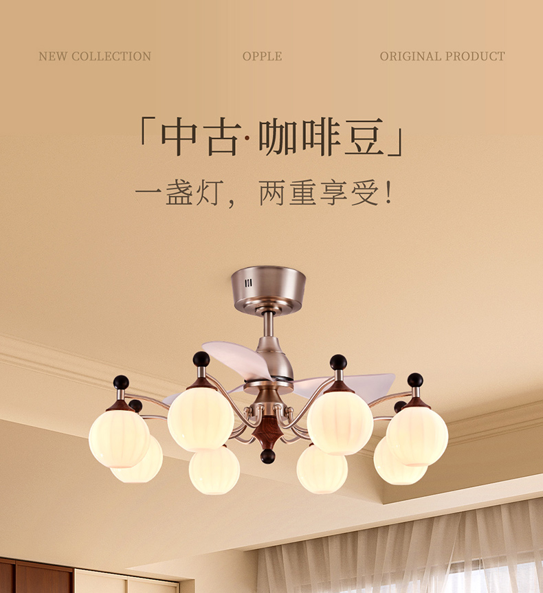 新品双倍积分🔥OPPLE欧普照明咖啡豆26款风扇灯中古风胡桃木色复古客厅餐厅装饰灯