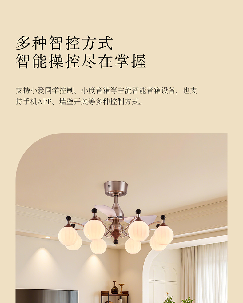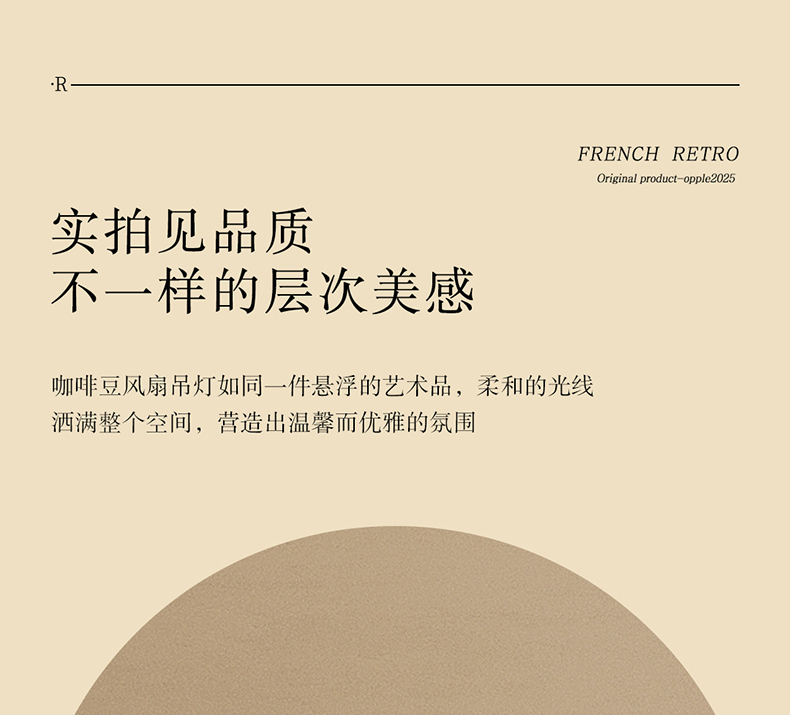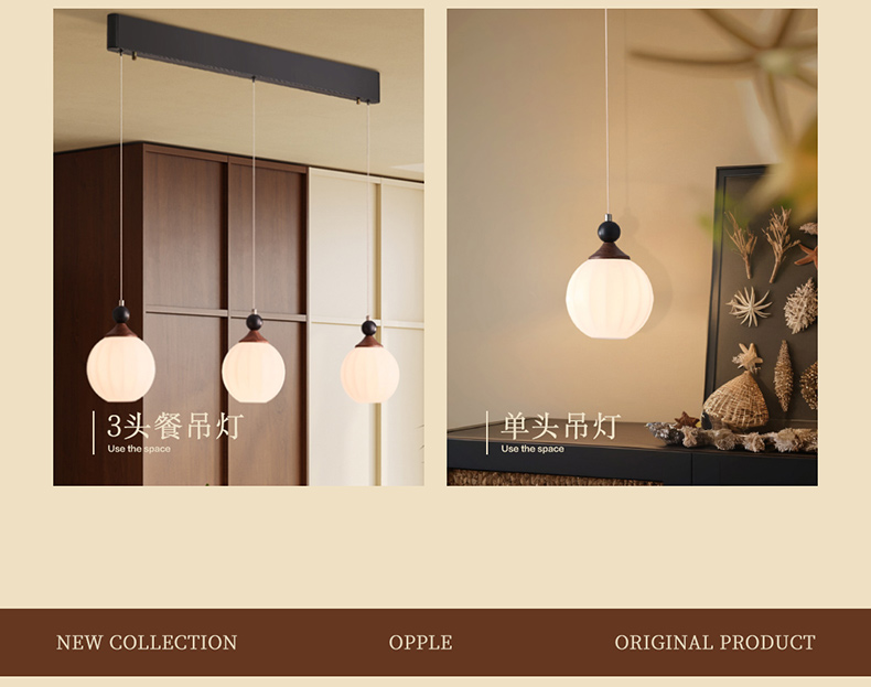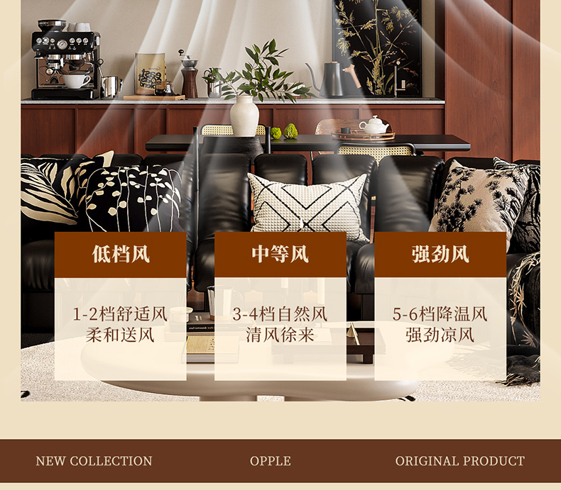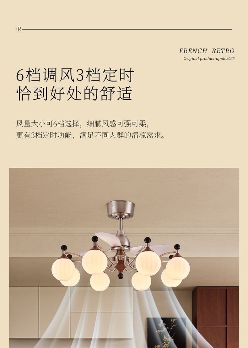 新品双倍积分🔥OPPLE欧普照明咖啡豆26款风扇灯中古风胡桃木色复古客厅餐厅装饰灯