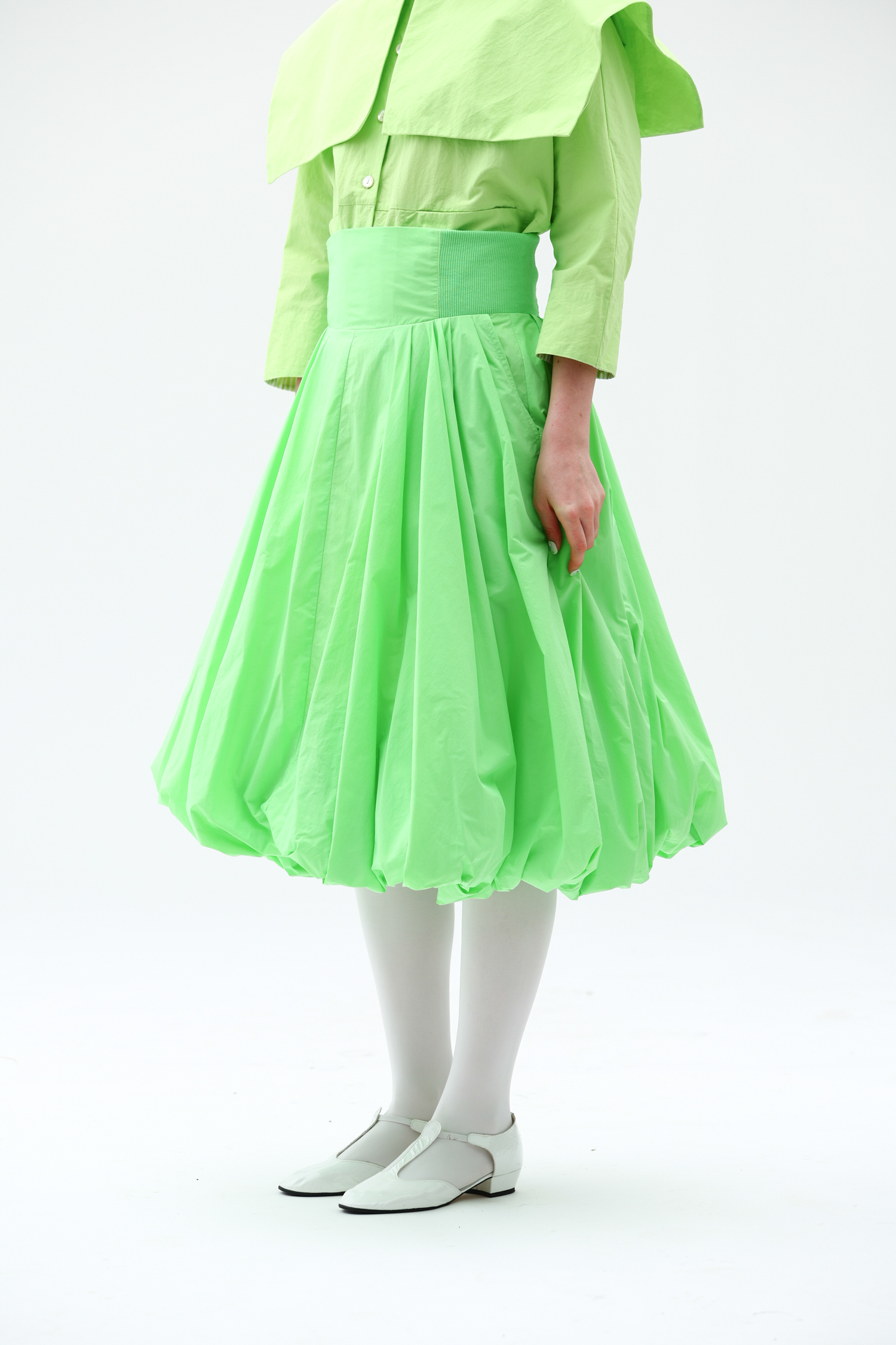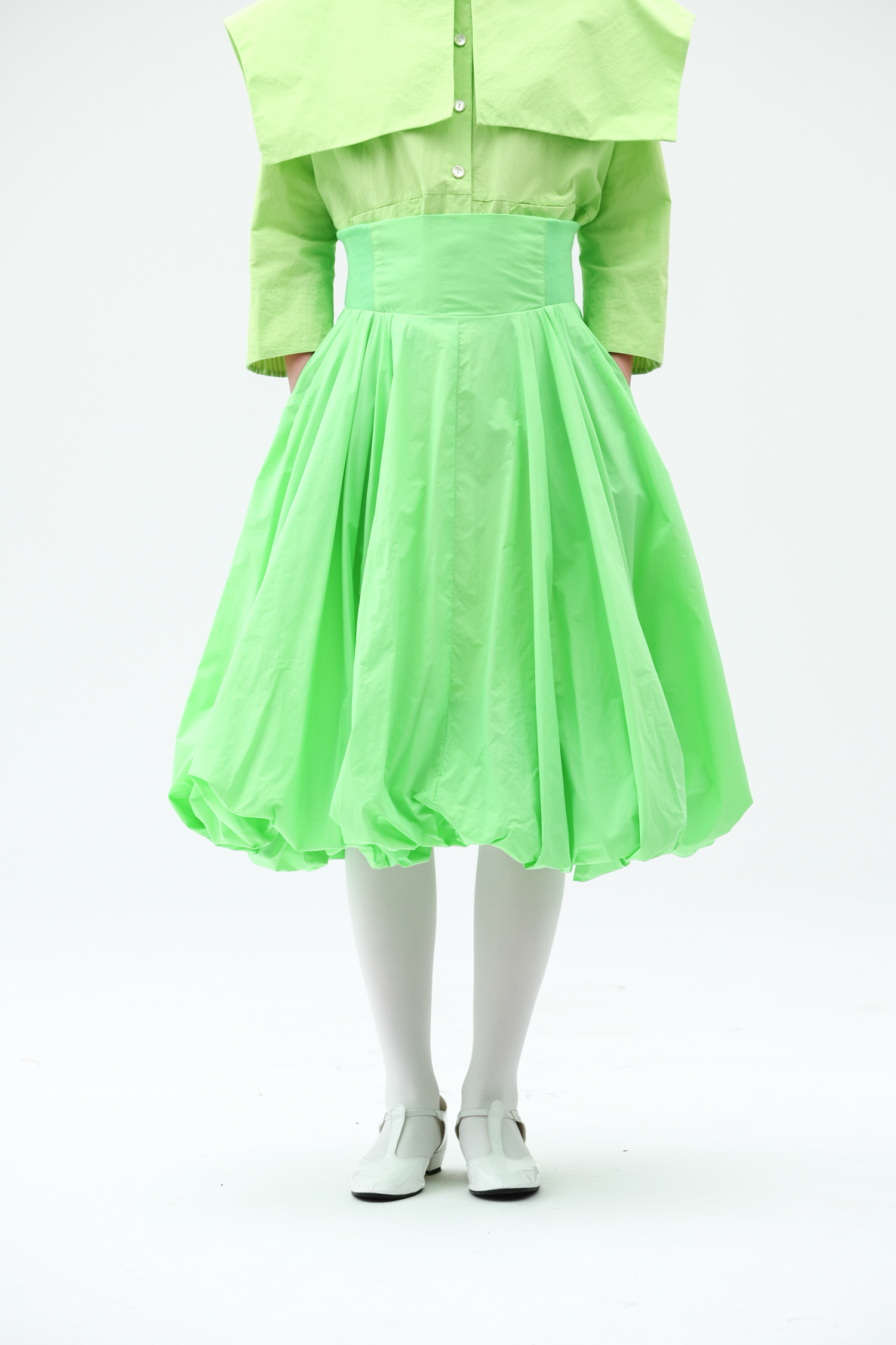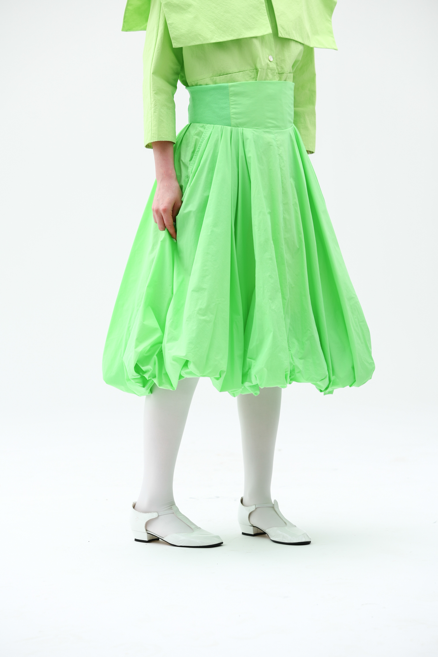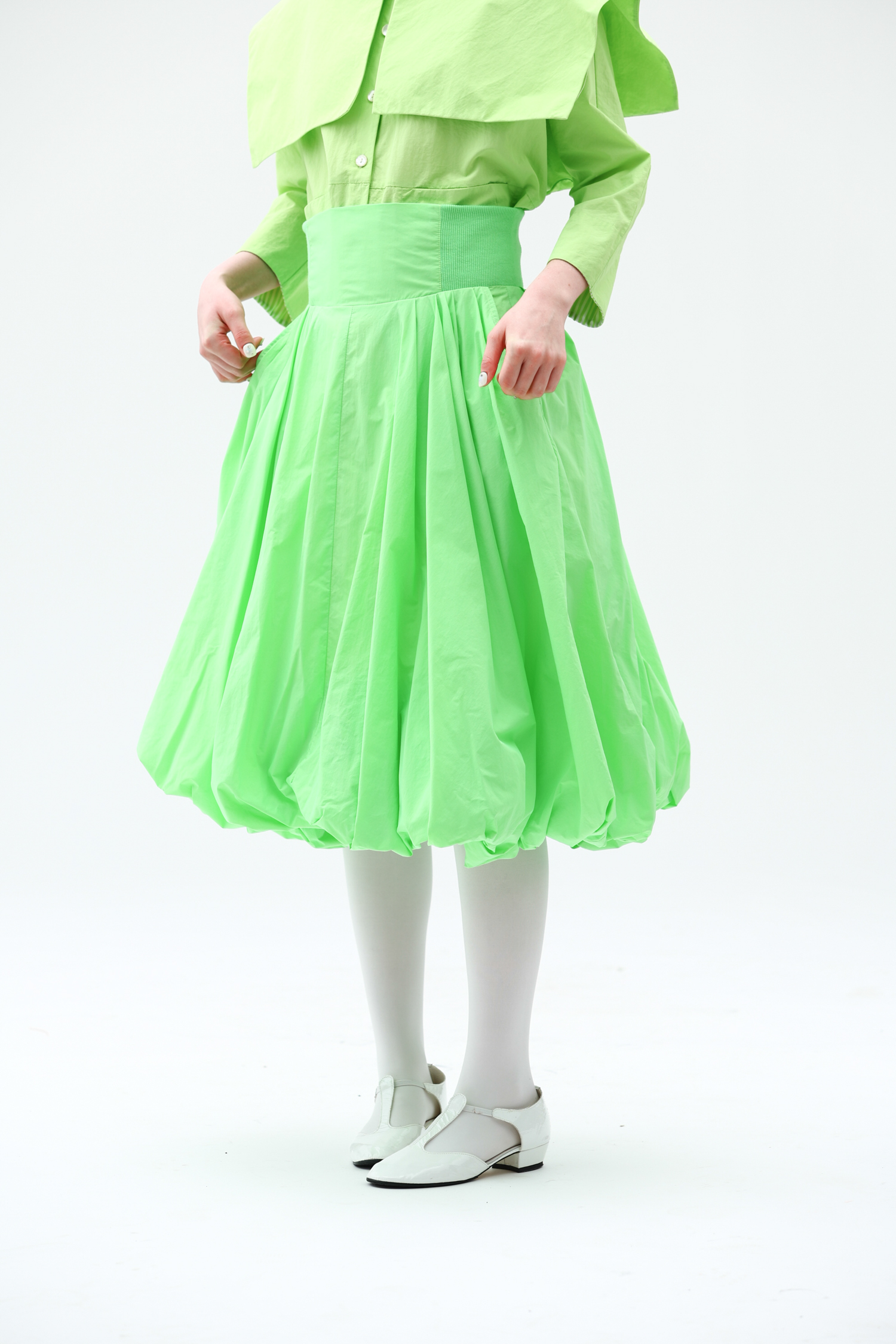 WOKERKER/Y0023/拼接罗纹花苞裙超高腰显瘦半身裙