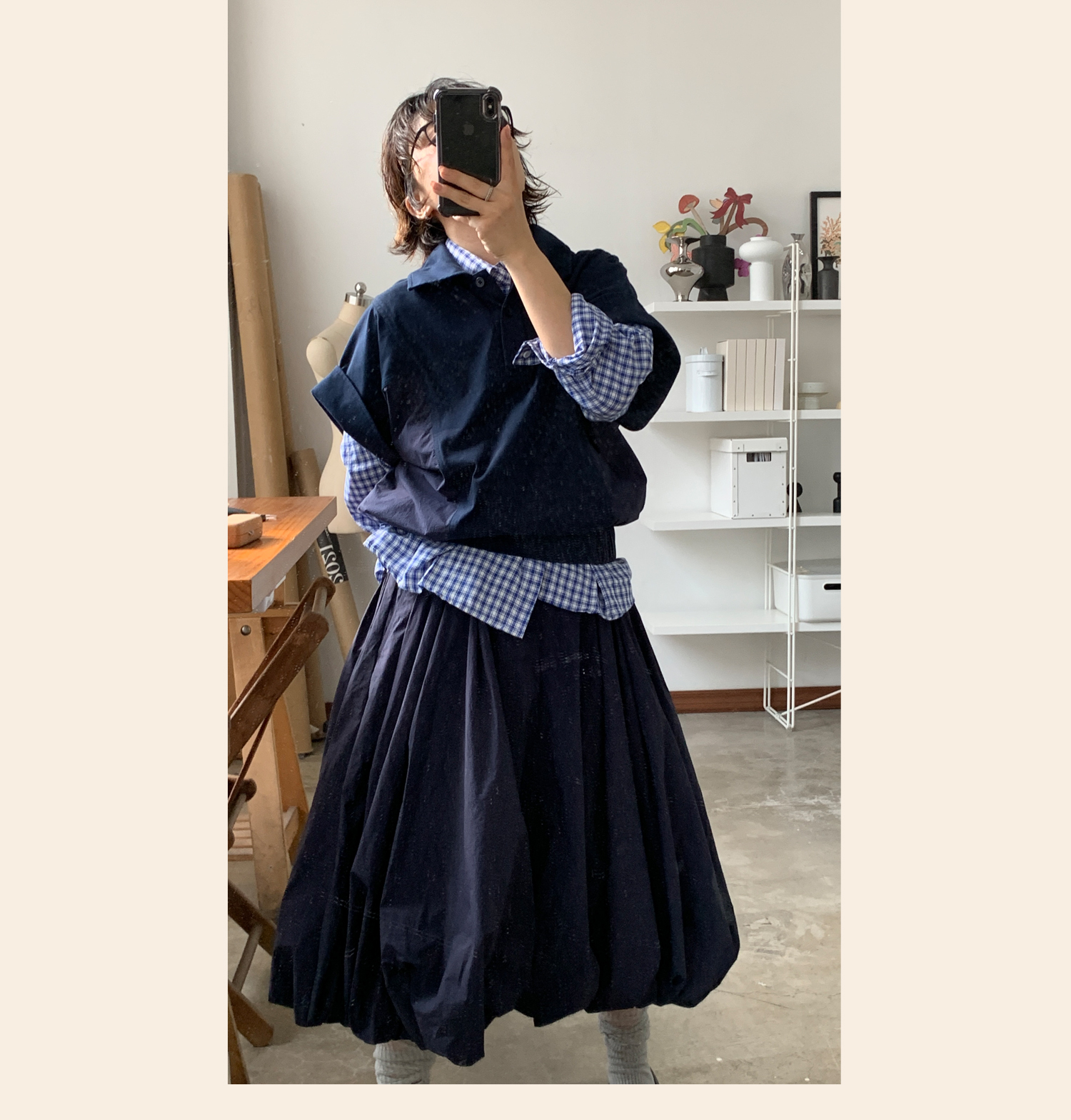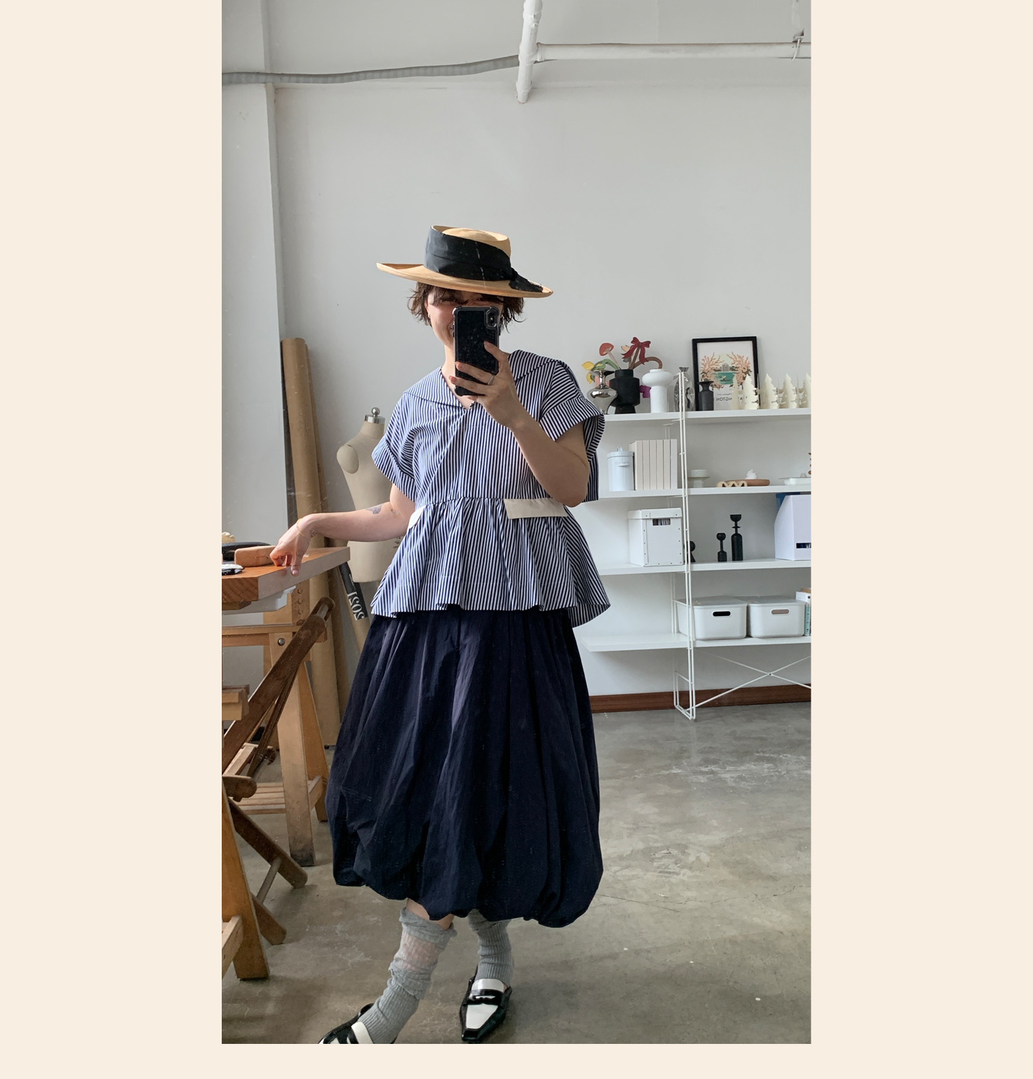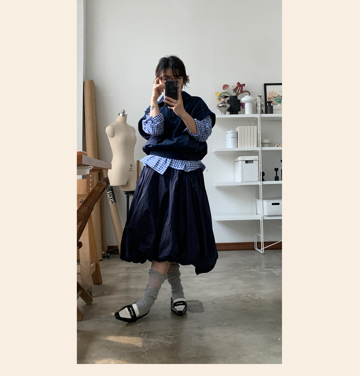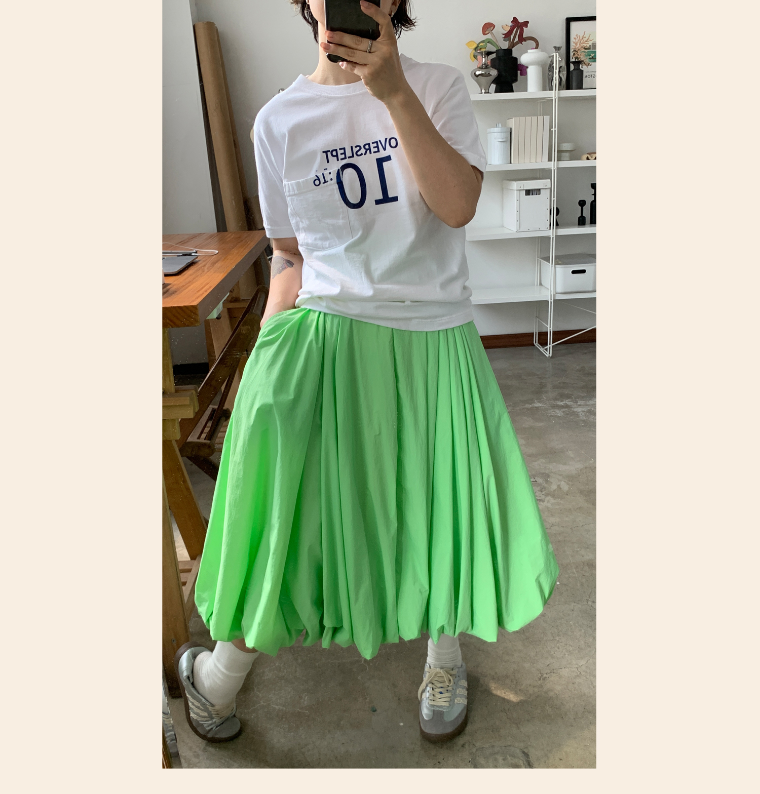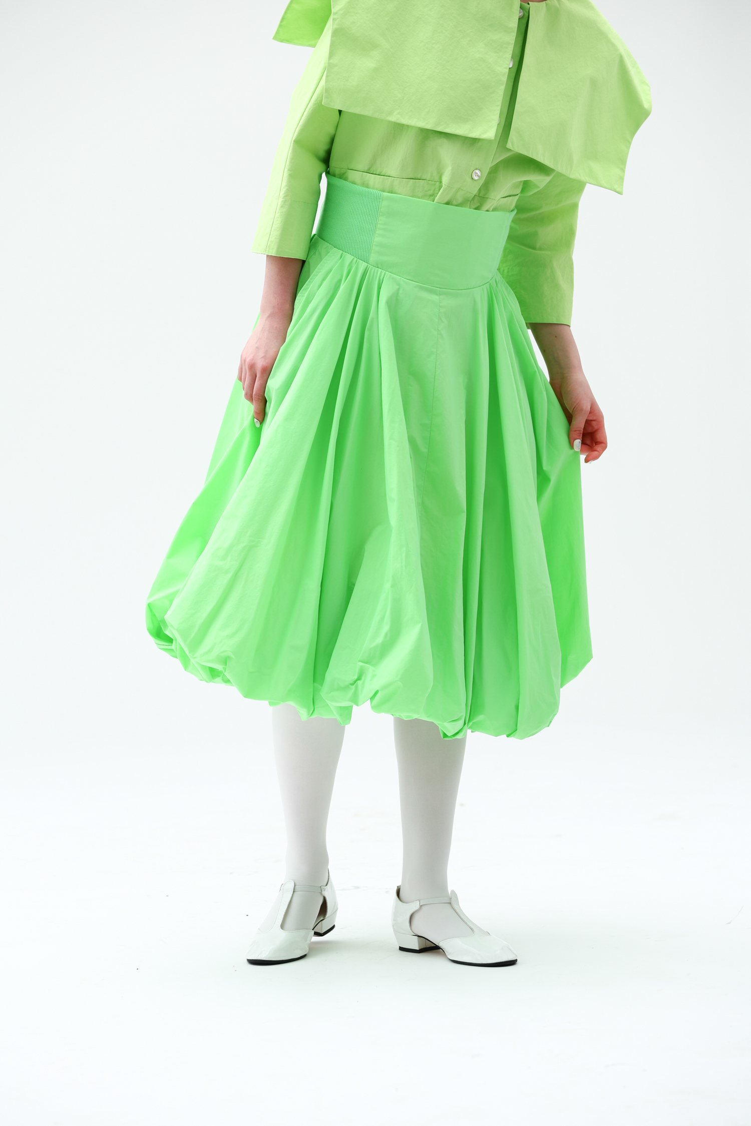 WOKERKER/Y0023/拼接罗纹花苞裙超高腰显瘦半身裙