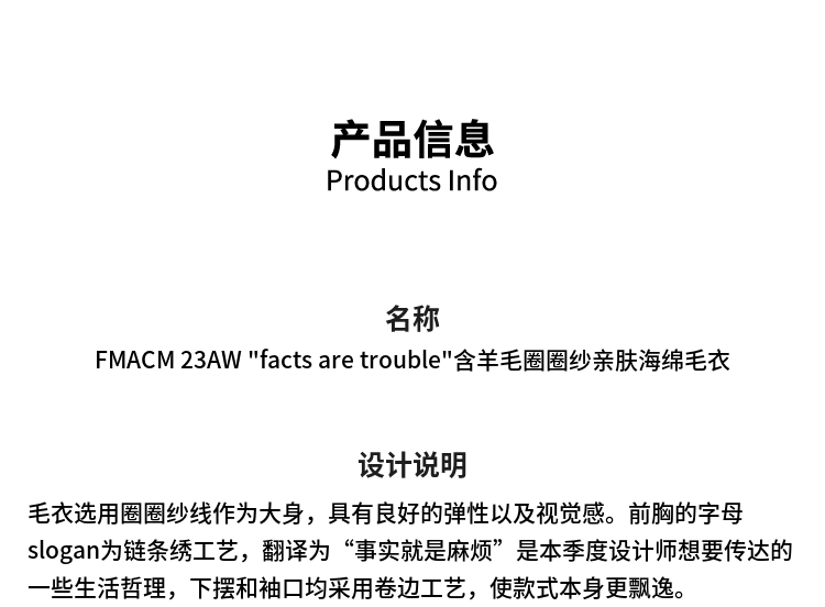 FMACM/ZZS2329/"facts are trouble"含羊毛圈圈纱毛衣