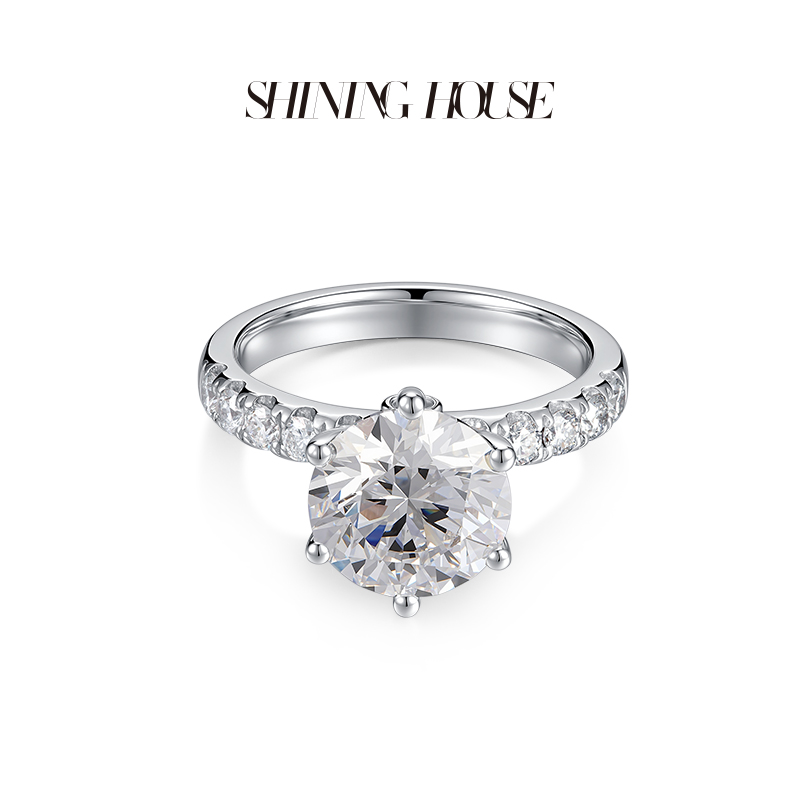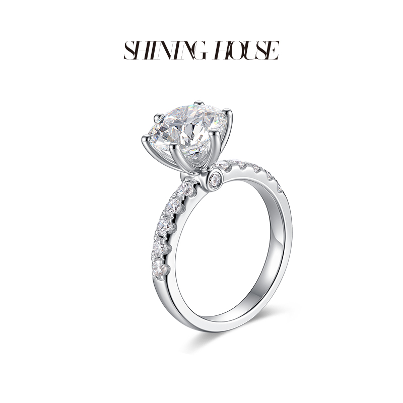 【预售】ShiningHouse[培育] 18k金钻石戒指 圆钻形3克拉钻人工真钻人造钻石K金戒指时尚六爪钻石戒指悦己送礼臻选【此商品不支持7天无理由退货退款】预计3日发货