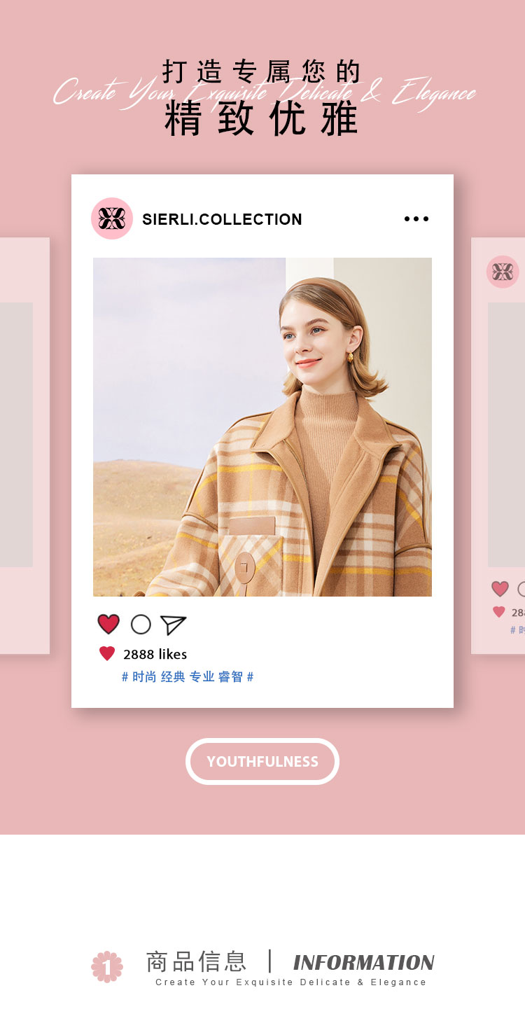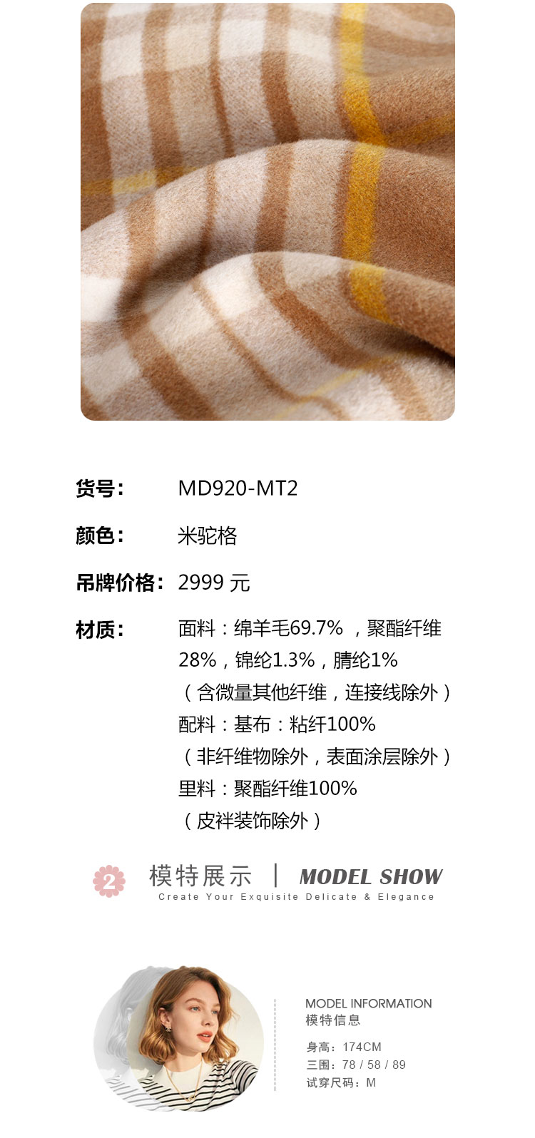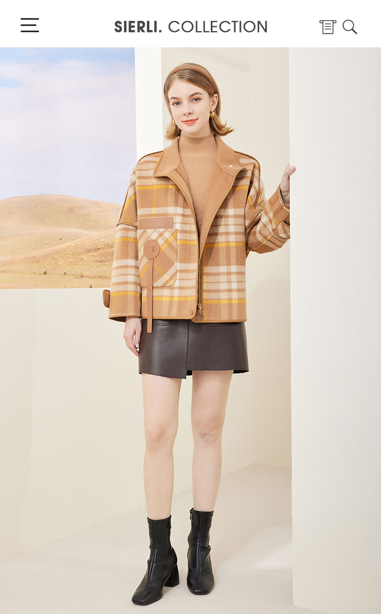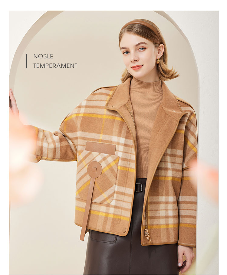 MD920斯尔丽瑟俪2022年冬季新品格子配色拼皮边外套夹克大衣