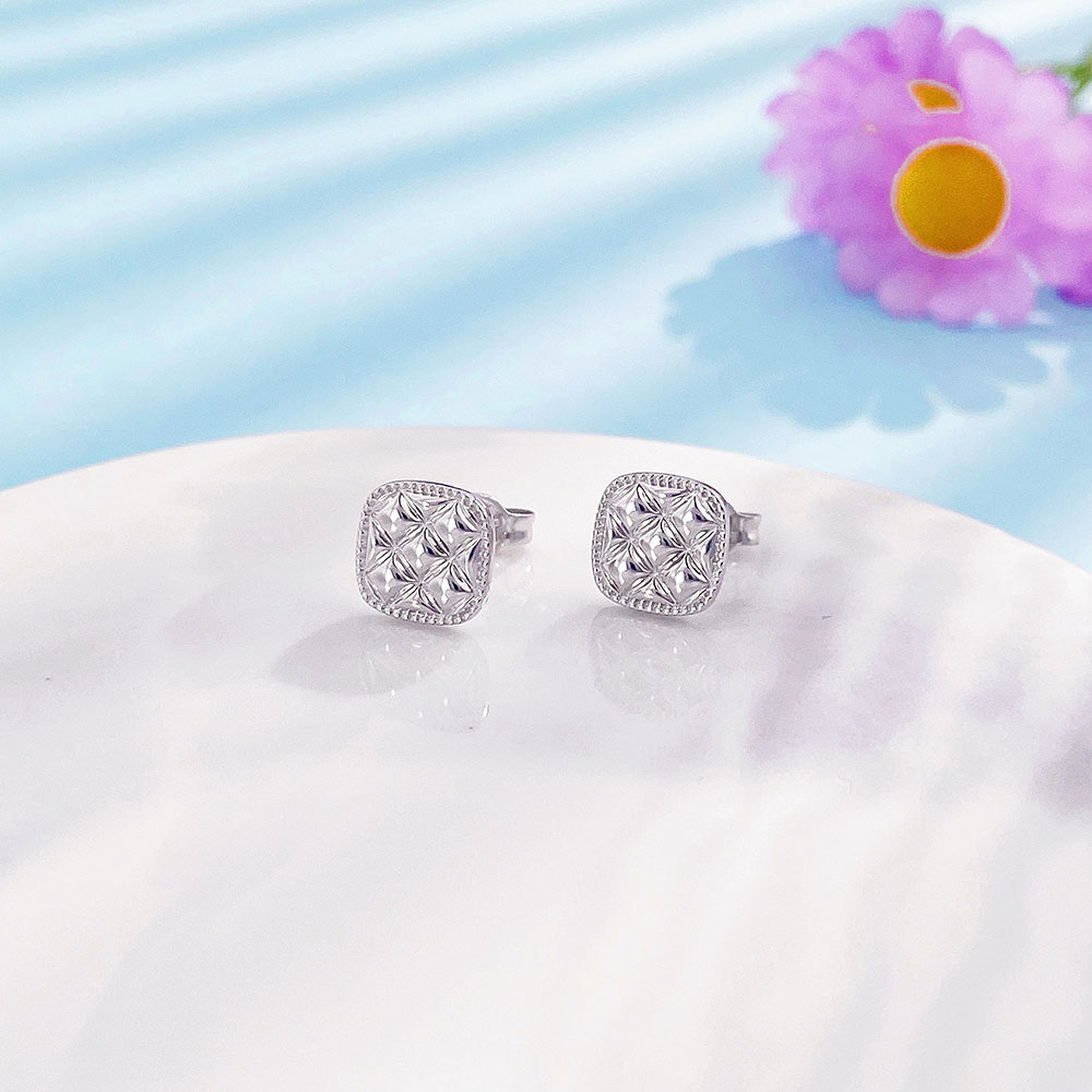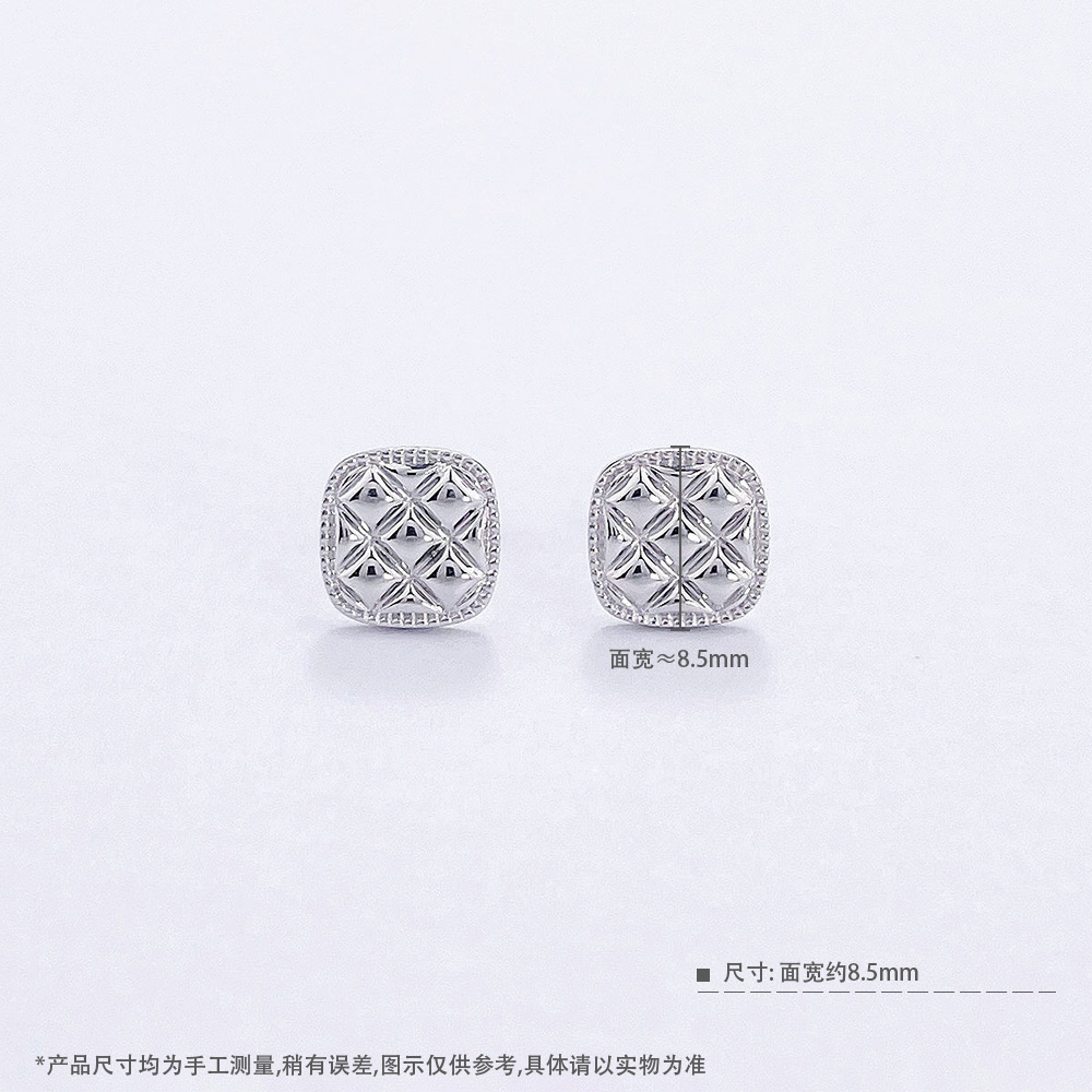 【限时8.8折】【线上铂金馆】PT950 #小方糖 #清新 【国际铂金协会】铂金实心极简几何菱格纹方牌耳饰甜蜜方糖耳钉(直针配铂金耳迫)(BES00204)预售产品下单后不退款不退货不换货不补差价)