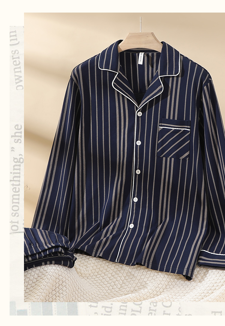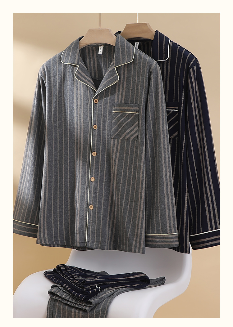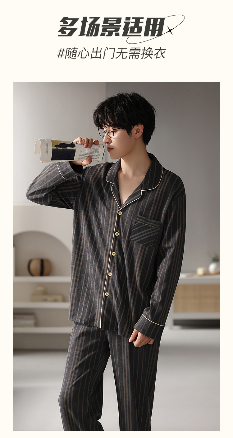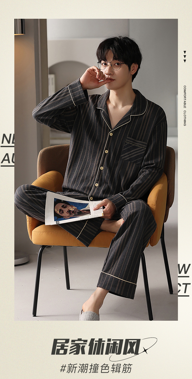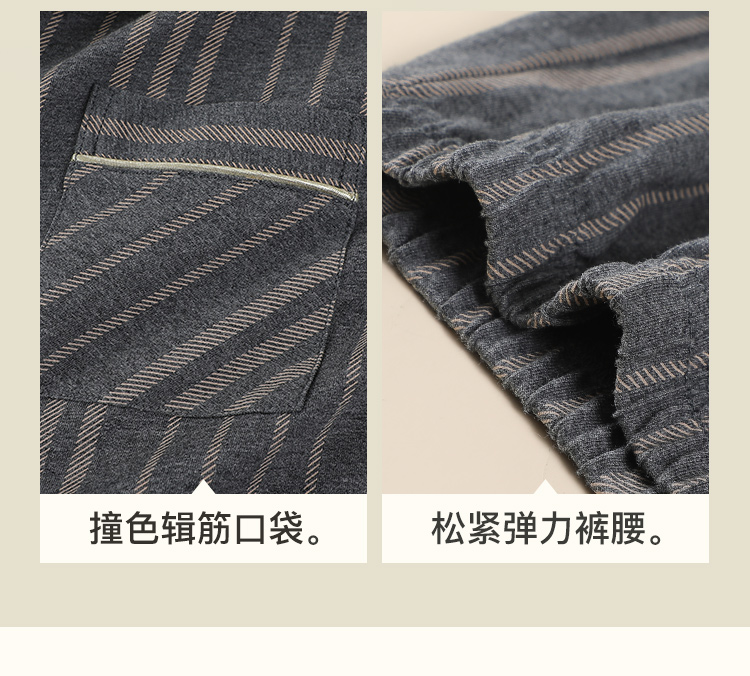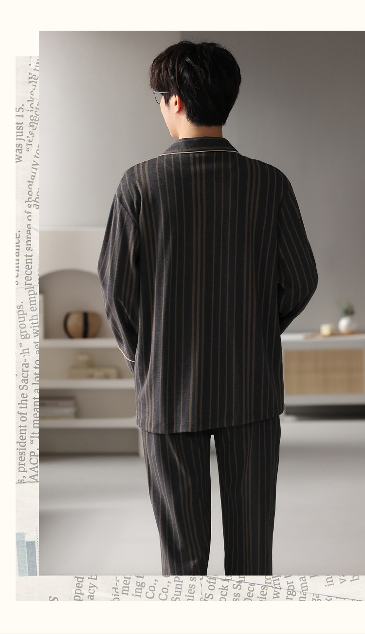 【100%棉】【猫人】【L-3XL】经典条纹开衫男士家居服套装