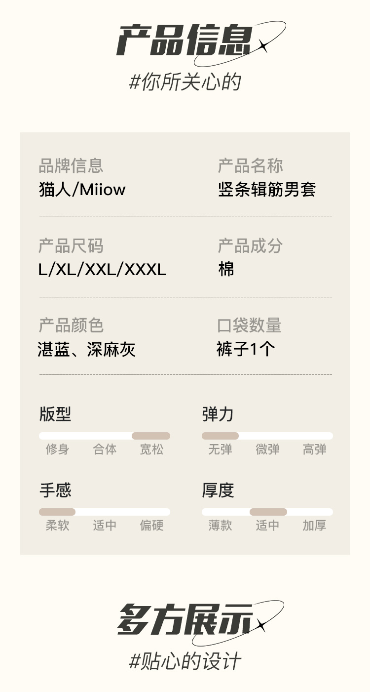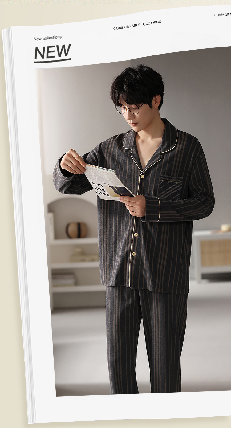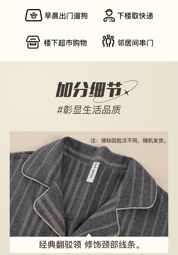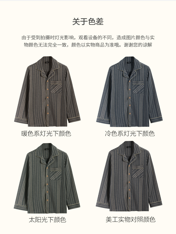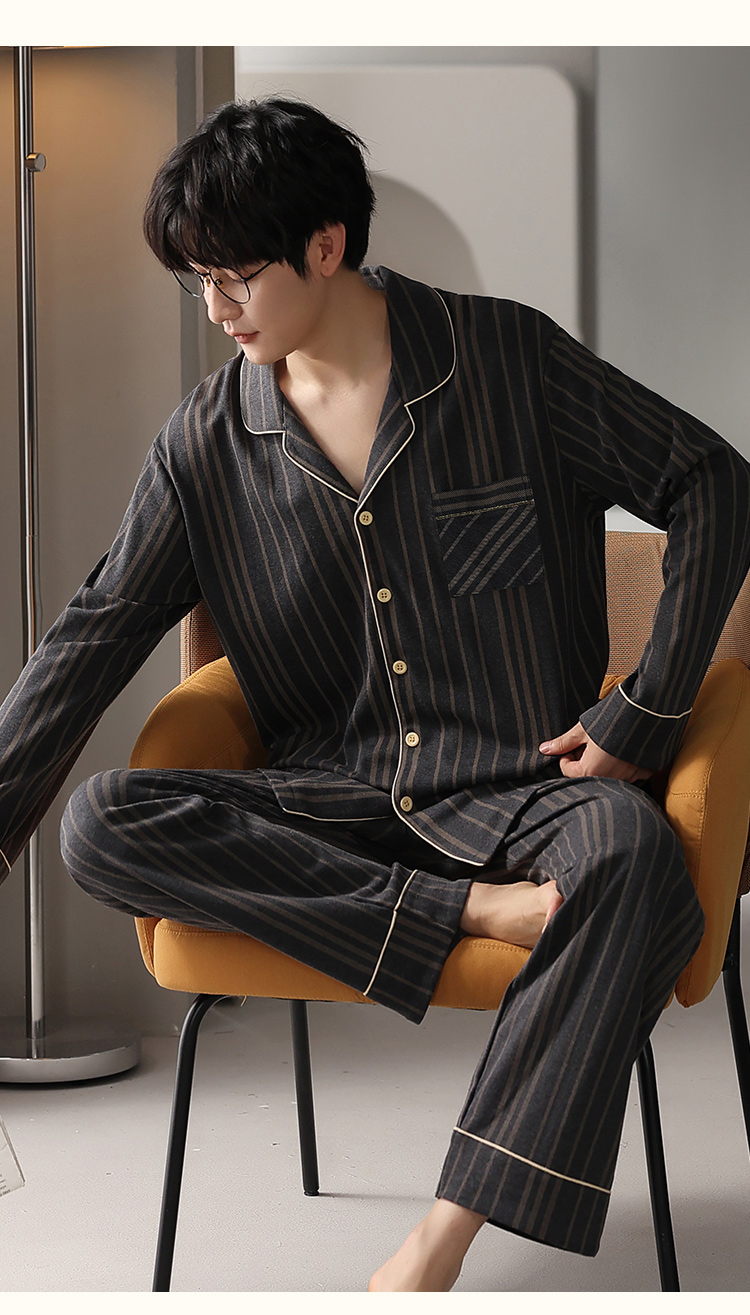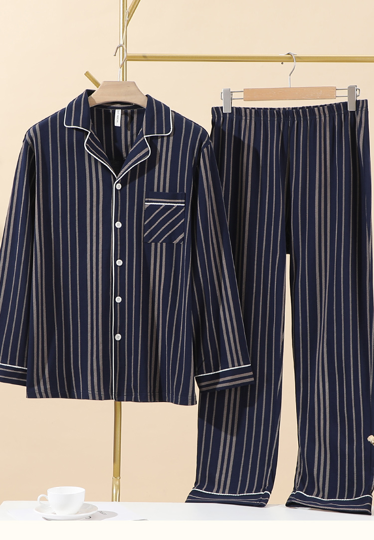 【100%棉】【猫人】【L-3XL】经典条纹开衫男士家居服套装