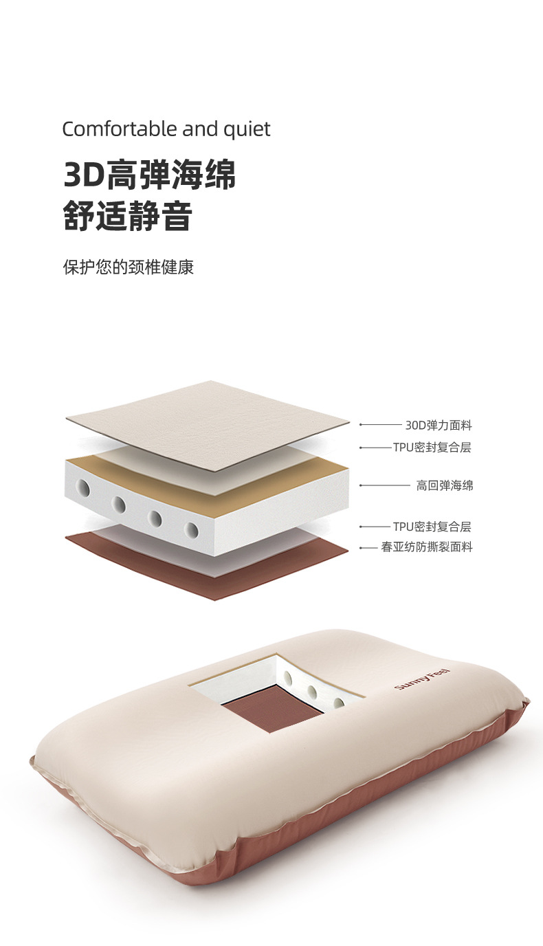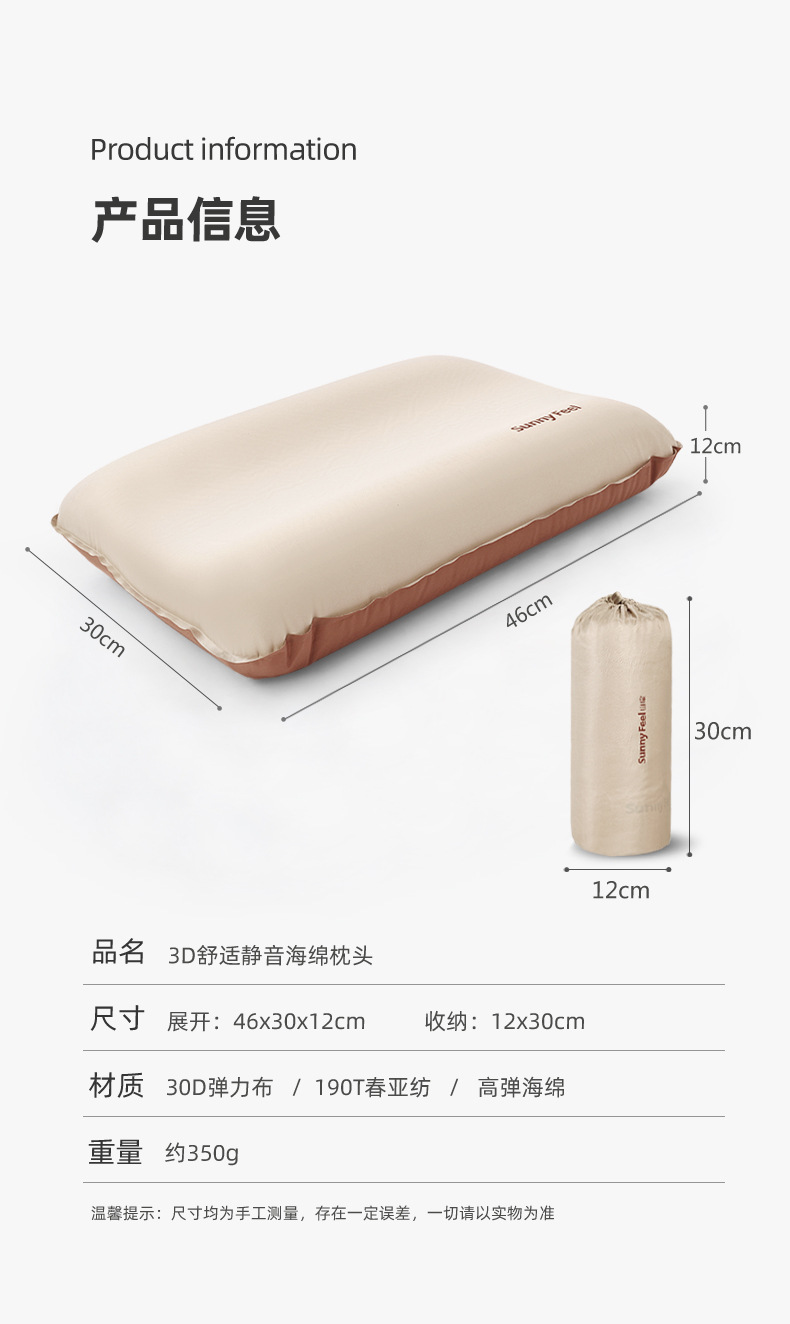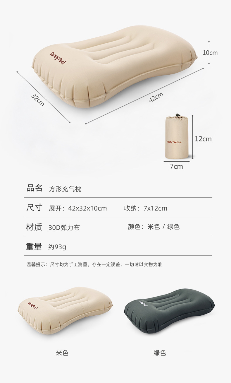 SunnyFeel山扉户外露营充气枕野营海绵充气枕头野外营地睡枕抱枕