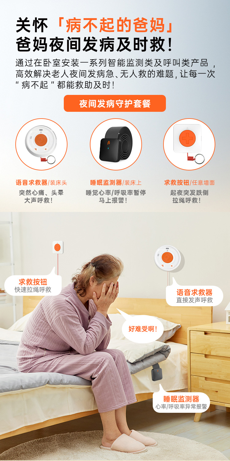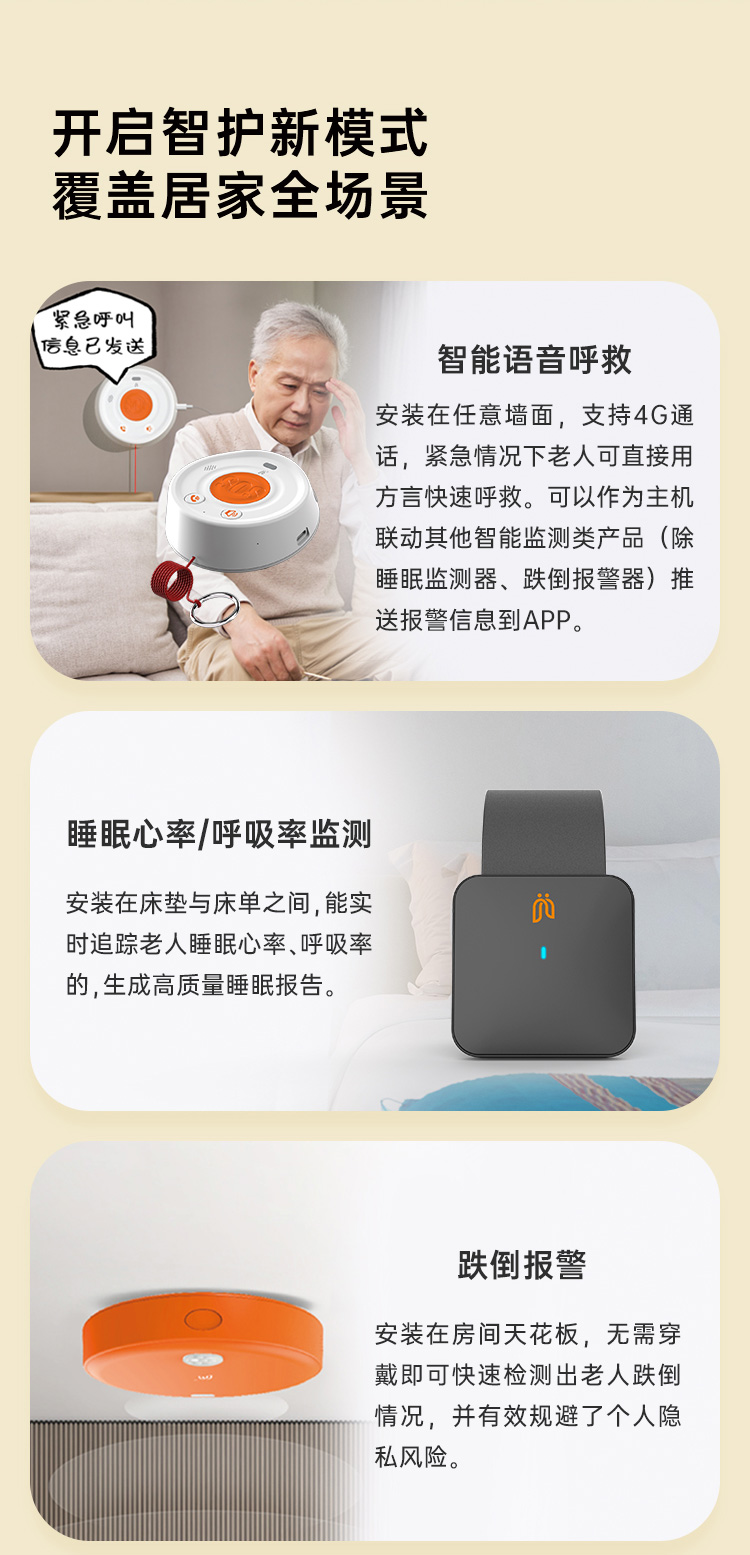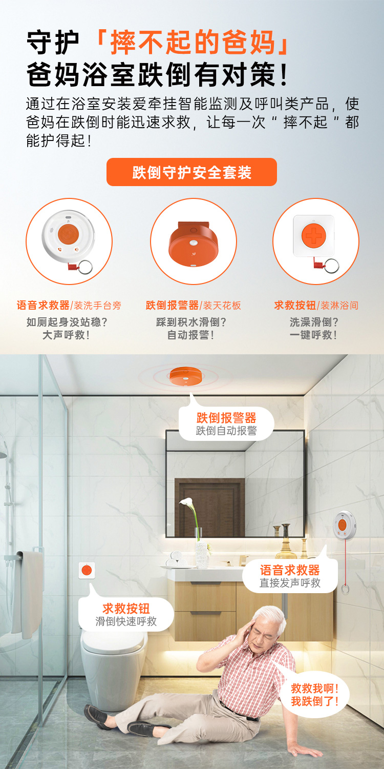 爱牵挂老人居家安全守护套装跌倒识别报警远程语音通话电话报警跌倒求救随时呼叫卧室卫生间安装