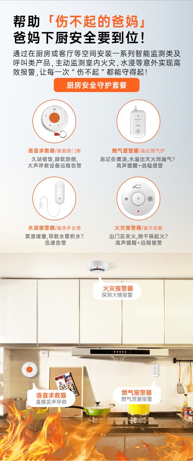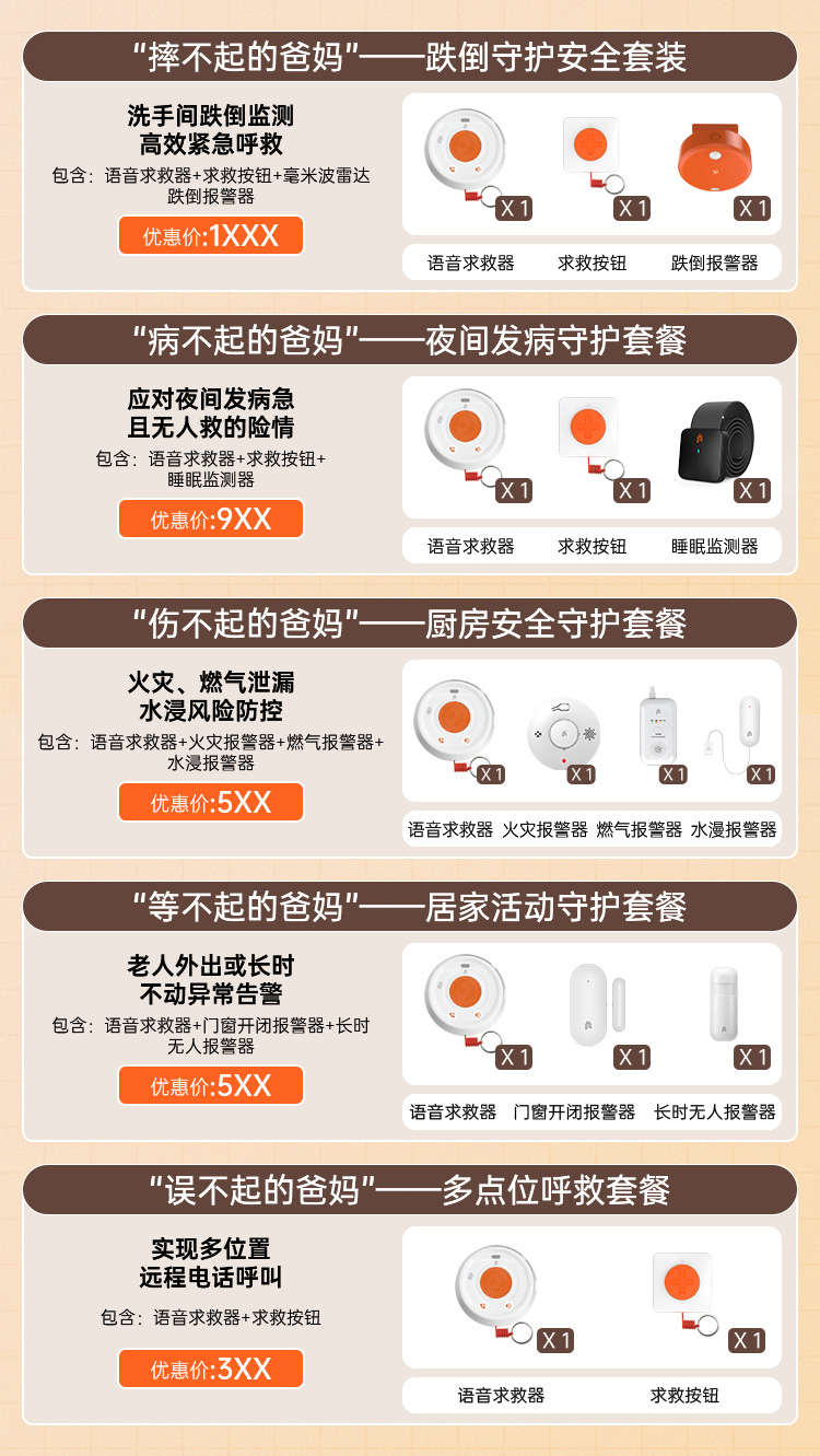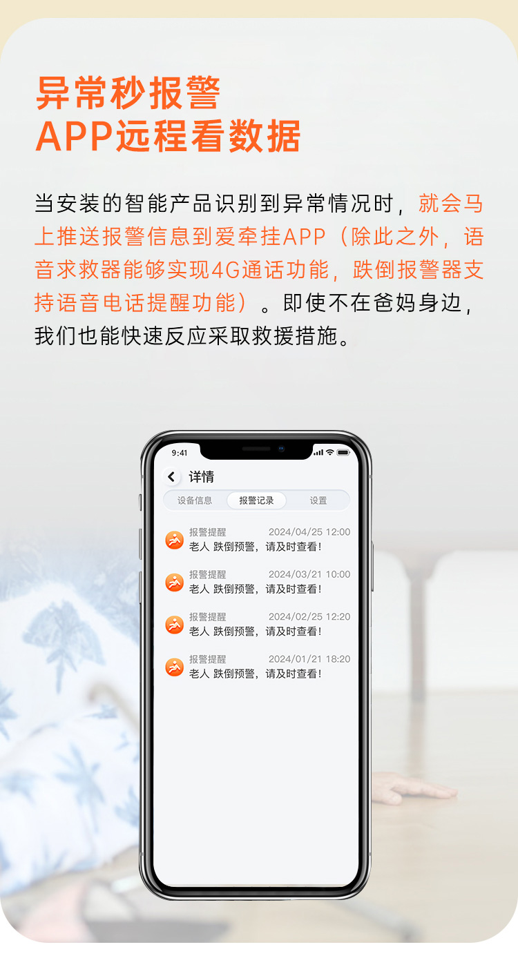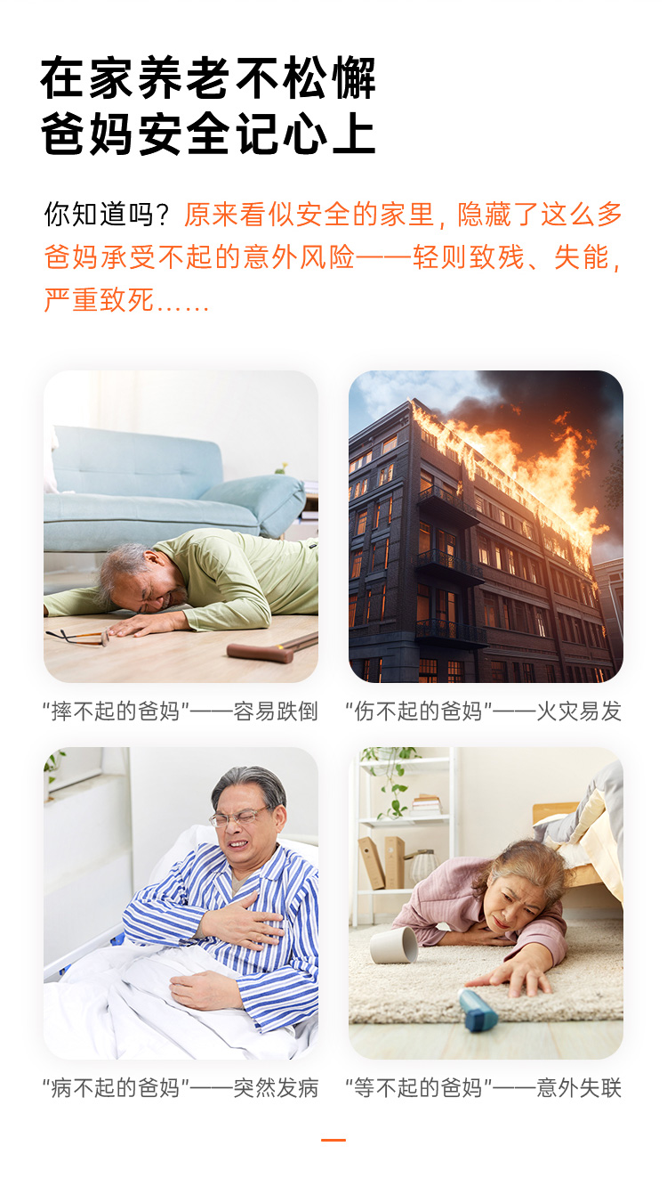 爱牵挂老人居家安全守护套装跌倒识别报警远程语音通话电话报警跌倒求救随时呼叫卧室卫生间安装