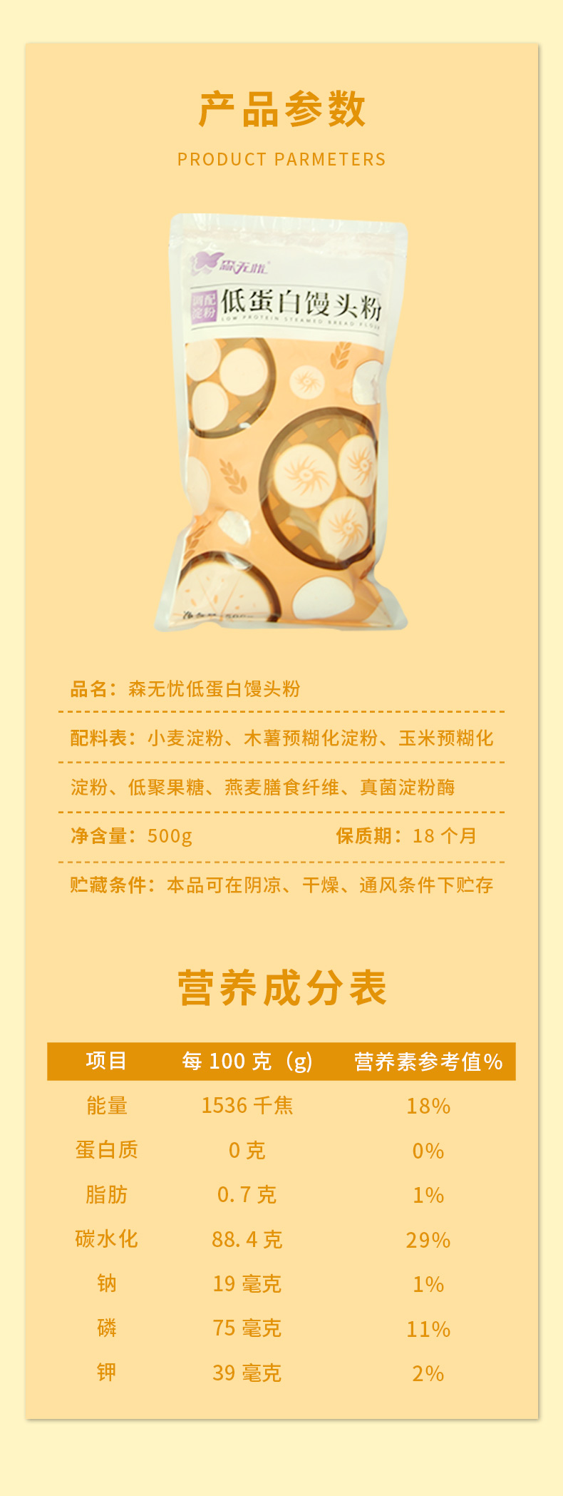 森无忧低蛋白馒头粉 500g/袋 低磷低钾 适合馒头、包子、花卷、松糕等发面类制作