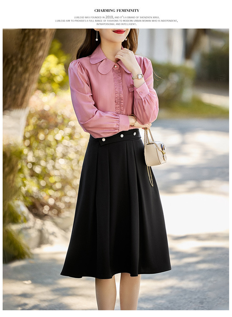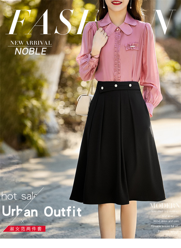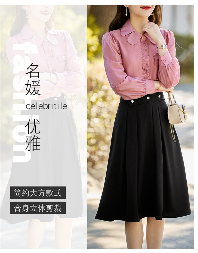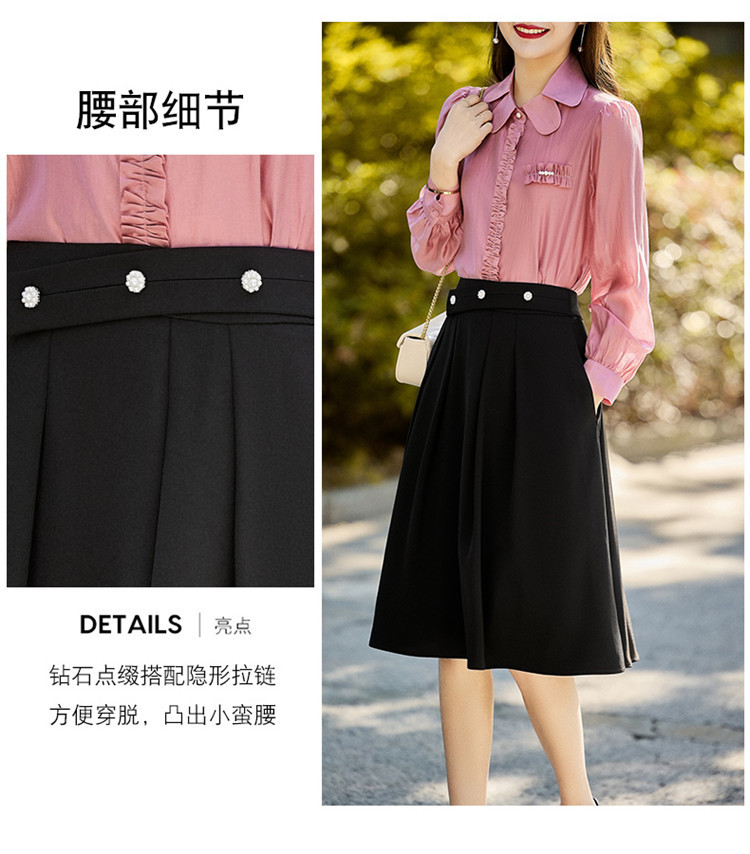 春新款褶皱拼接钉珠点缀名媛气质休闲时尚修身显瘦两件套HR-MLJL8020