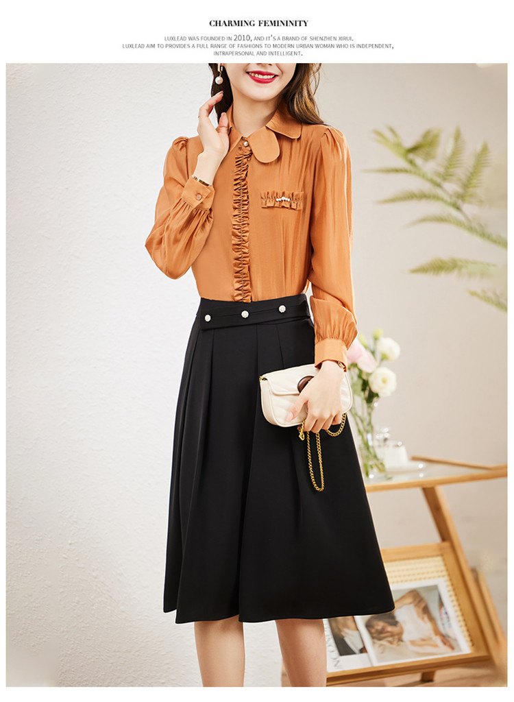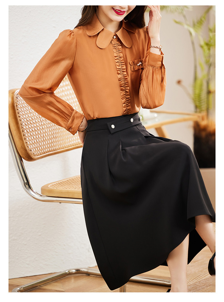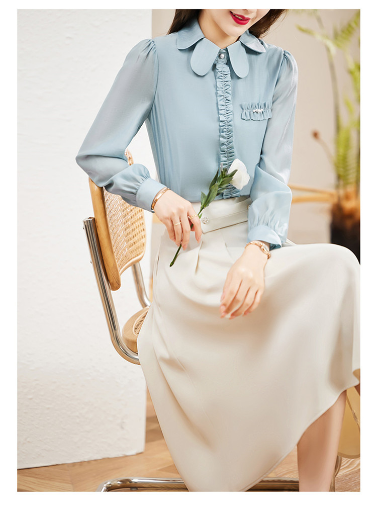 气质设计感重磅缎面仿真丝衬衫上衣KQL-369H1639