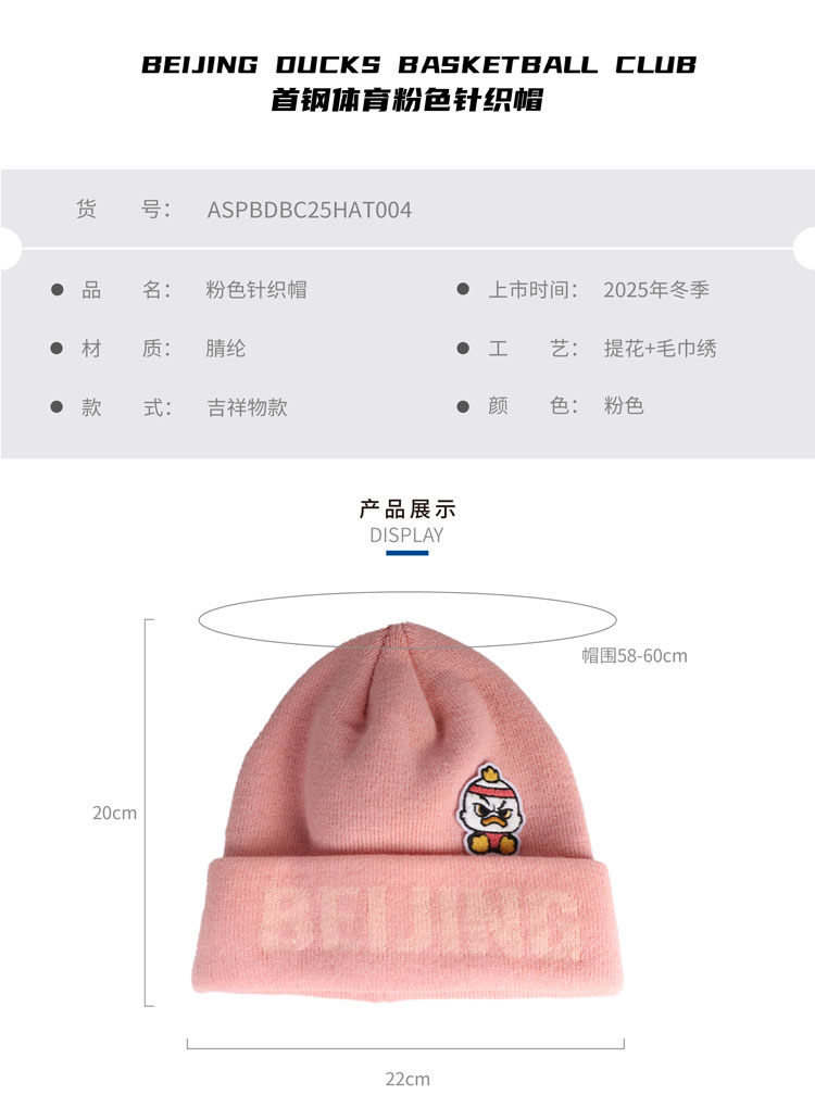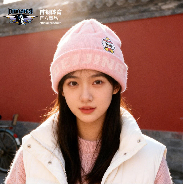 【官方正版】北京首钢 | 粉色针织帽秋冬保暖帽时尚百搭