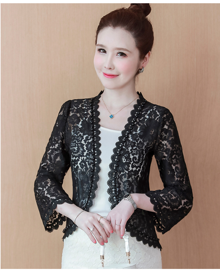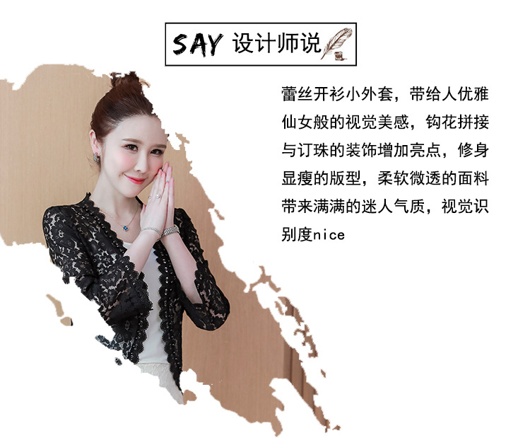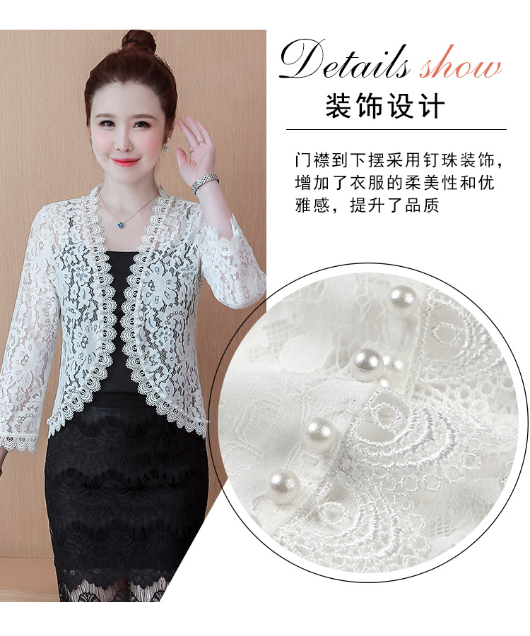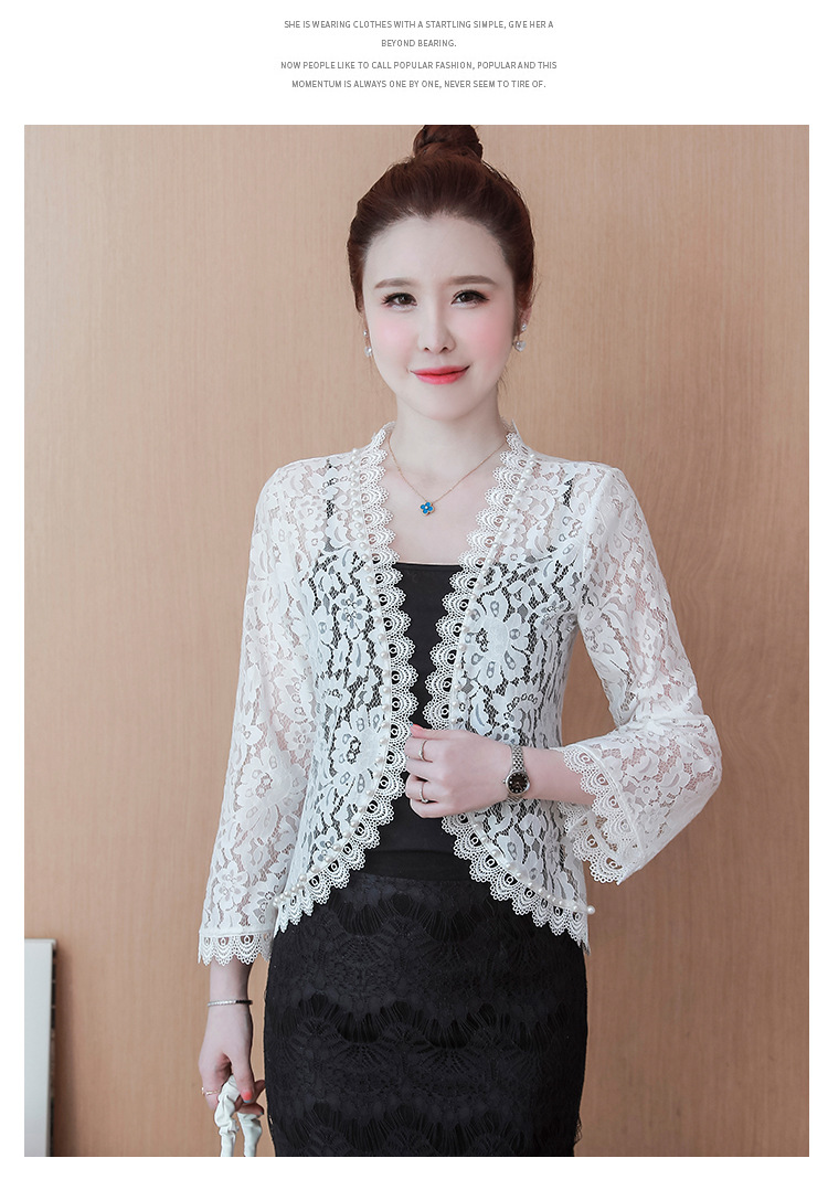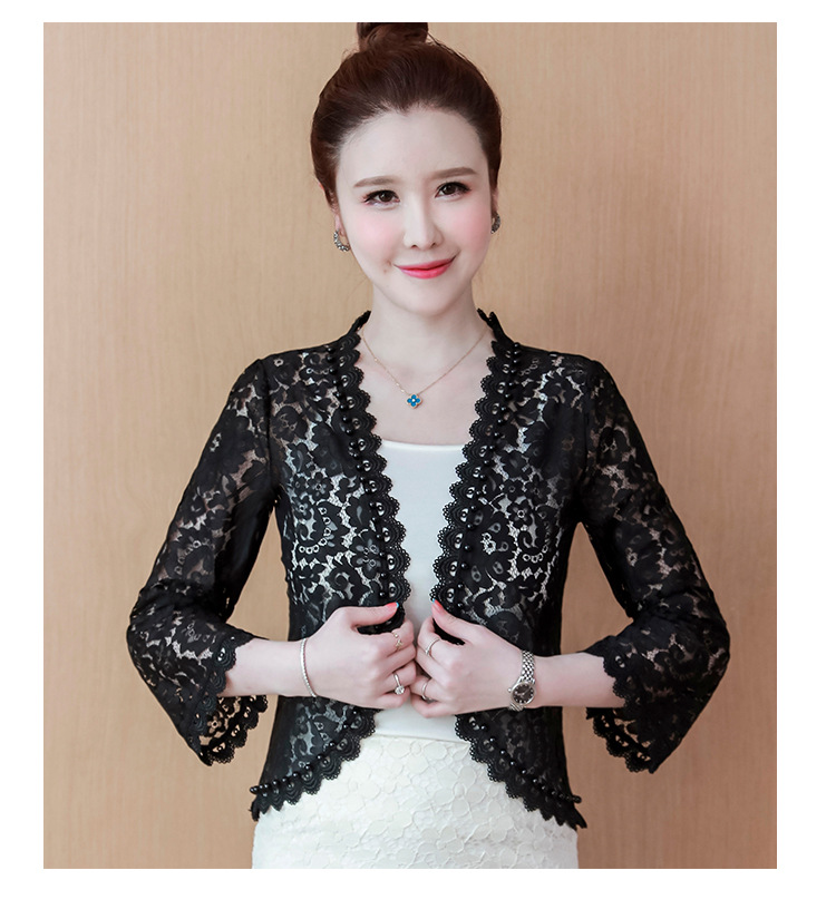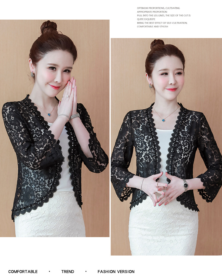 时尚百搭,蕾丝衫外套旗袍伴侣重工钉珠镂空罩衫KQL-3575