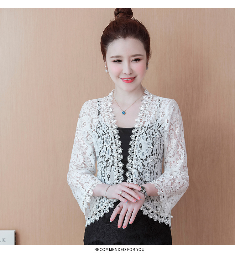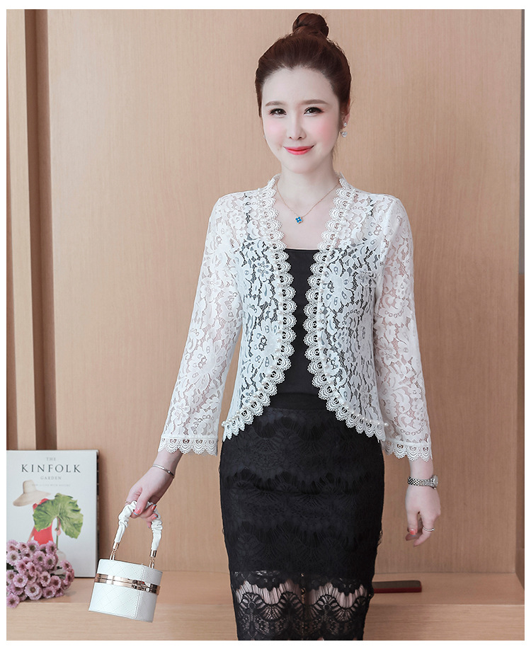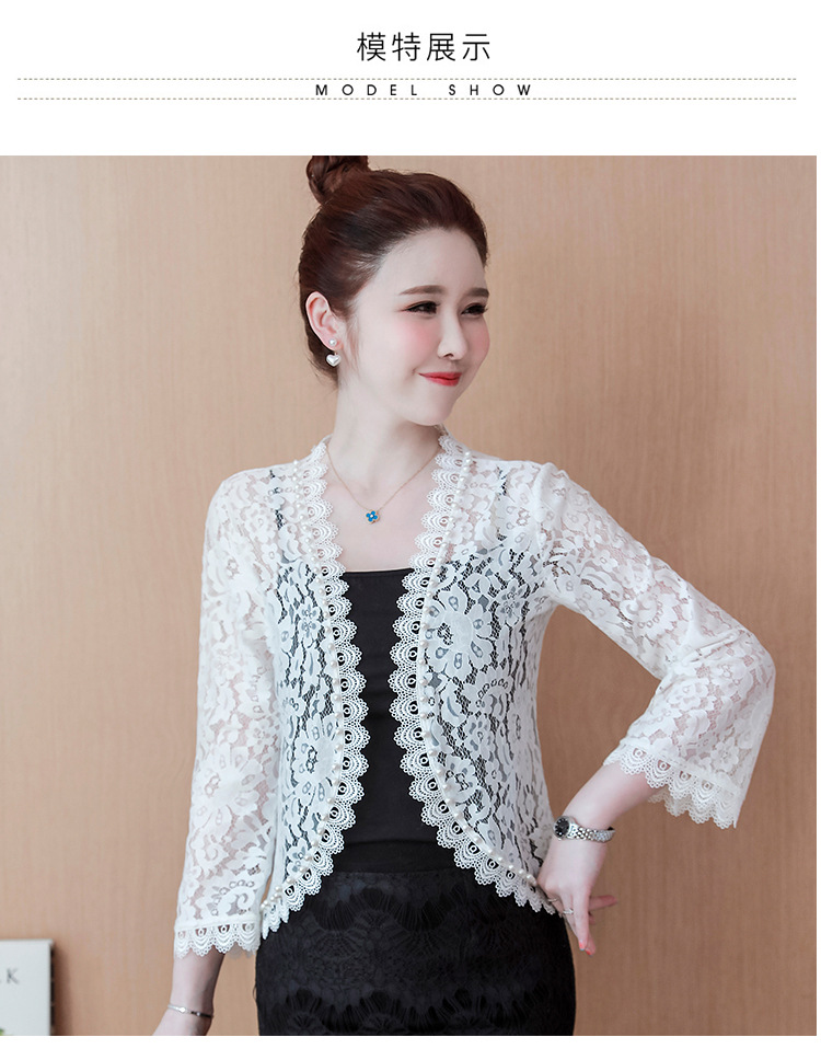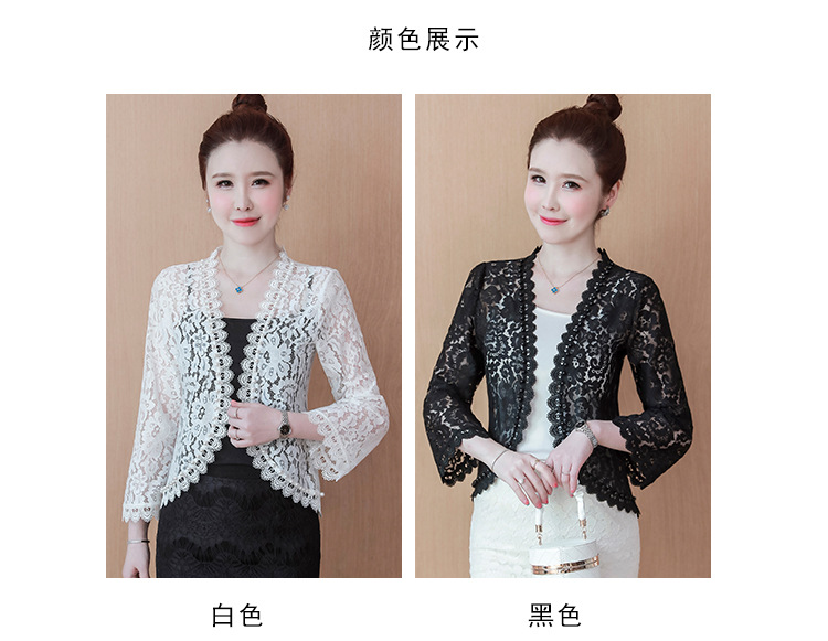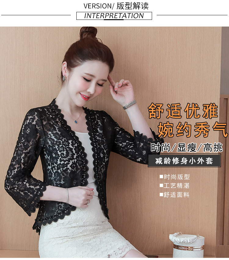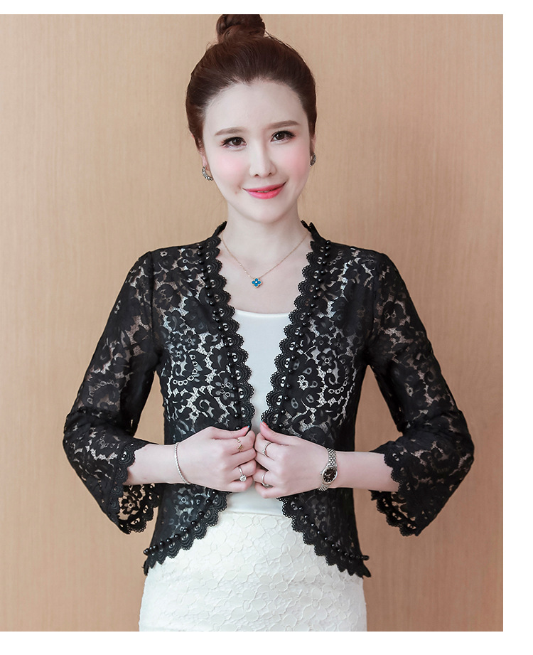 时尚百搭,蕾丝衫外套旗袍伴侣重工钉珠镂空罩衫KQL-3575