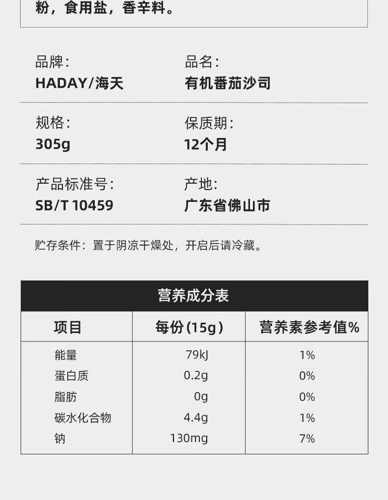 海天有机番茄沙司 305g/袋