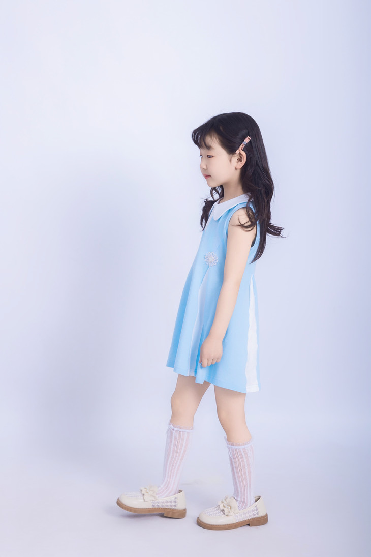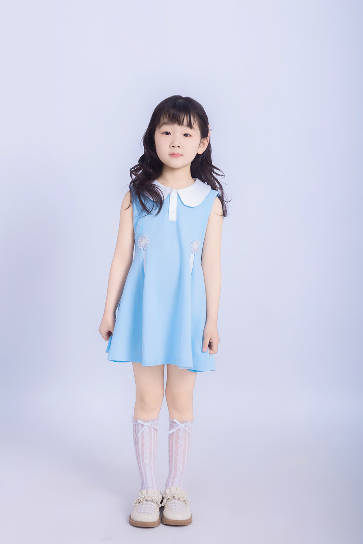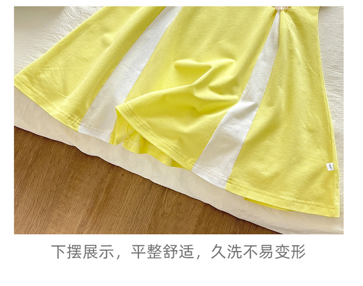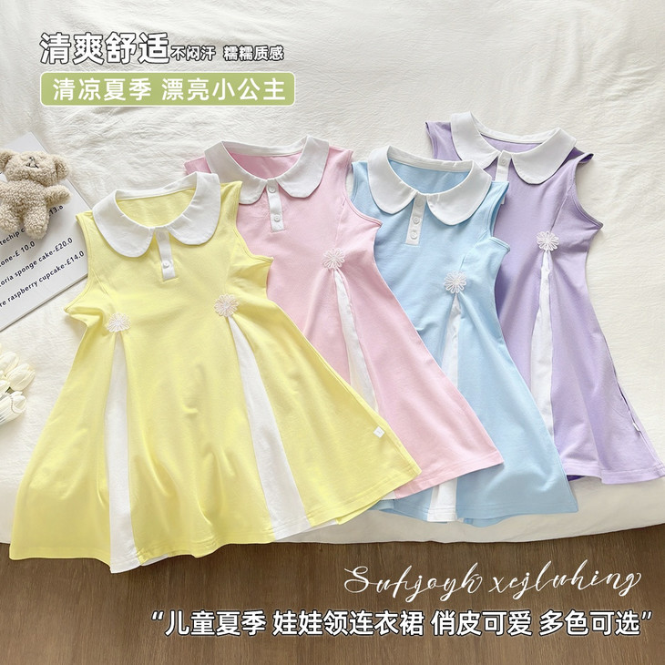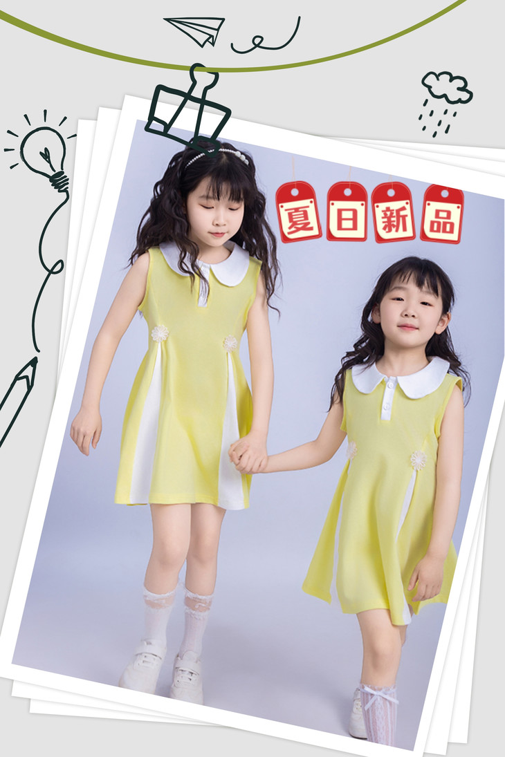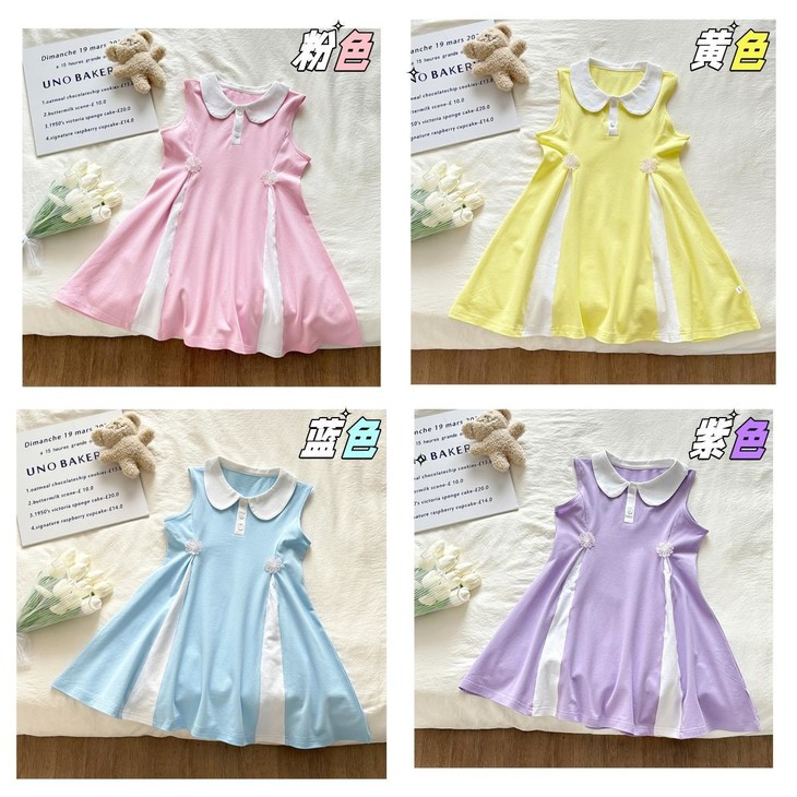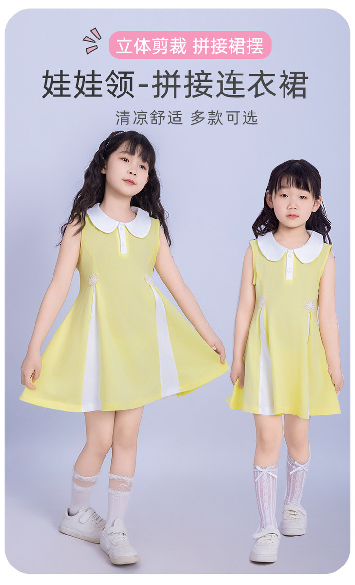 这款娃娃领拼接连衣裙🥰,简直是小女孩夏日的梦幻标配! 立体剪裁设计✨,巧妙勾勒出宝贝的可爱身形,每一个转身都灵动俏皮,像个小精灵在跳舞💃~ 拼接裙摆独具匠心,配色清新亮眼,像夏日里的一抹阳光🌞,活力满满又不失甜美。 娃娃领增添了几分纯真与萌趣,谁看了不得夸一句小公主呀👑! 面料清凉舒适,即便是炎炎夏日,宝贝也能自在玩耍,告别闷热🥳~