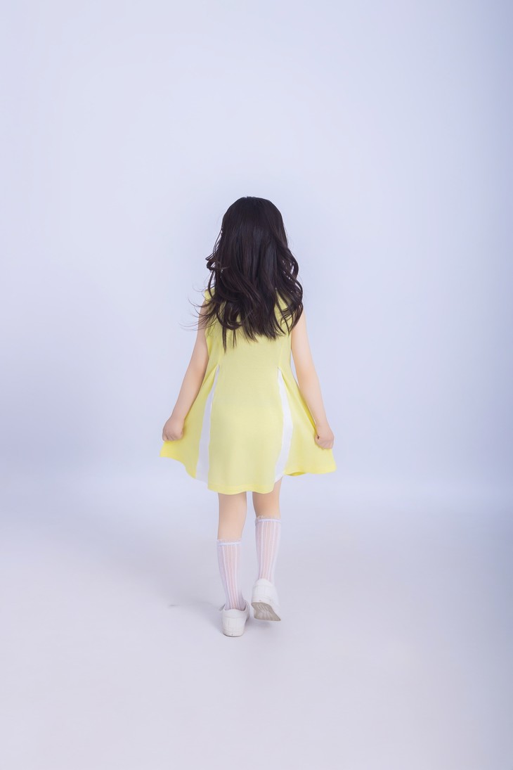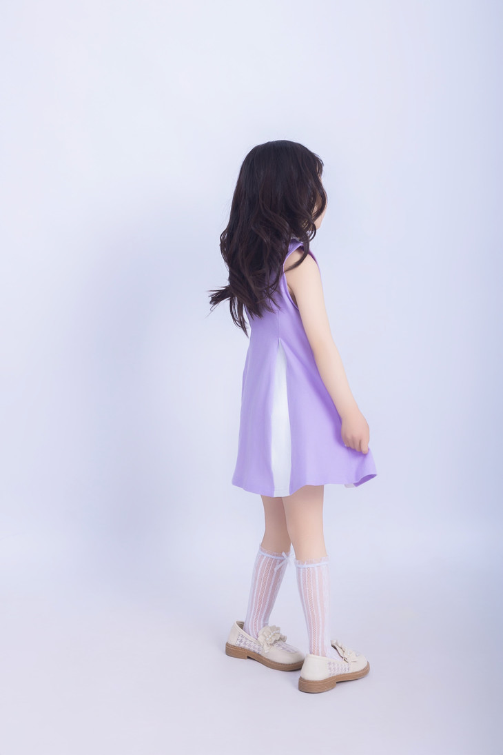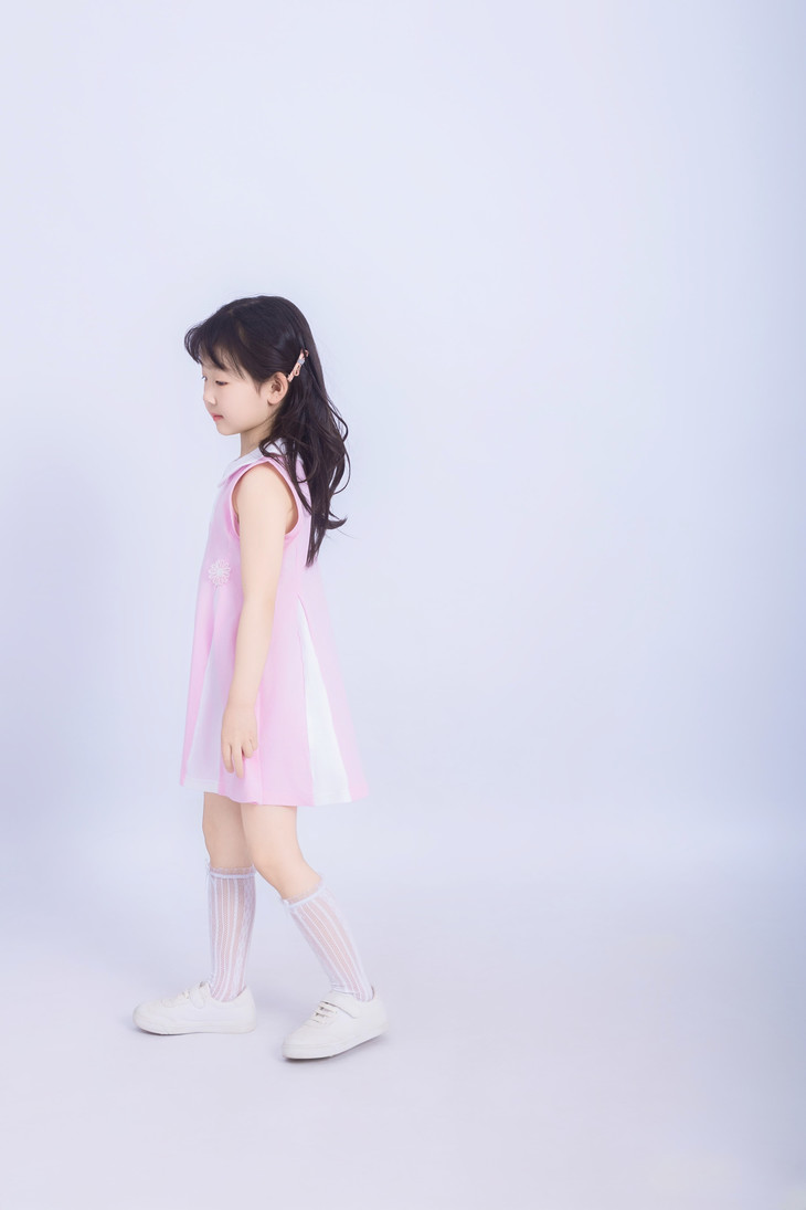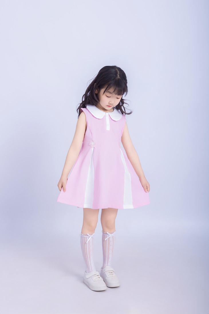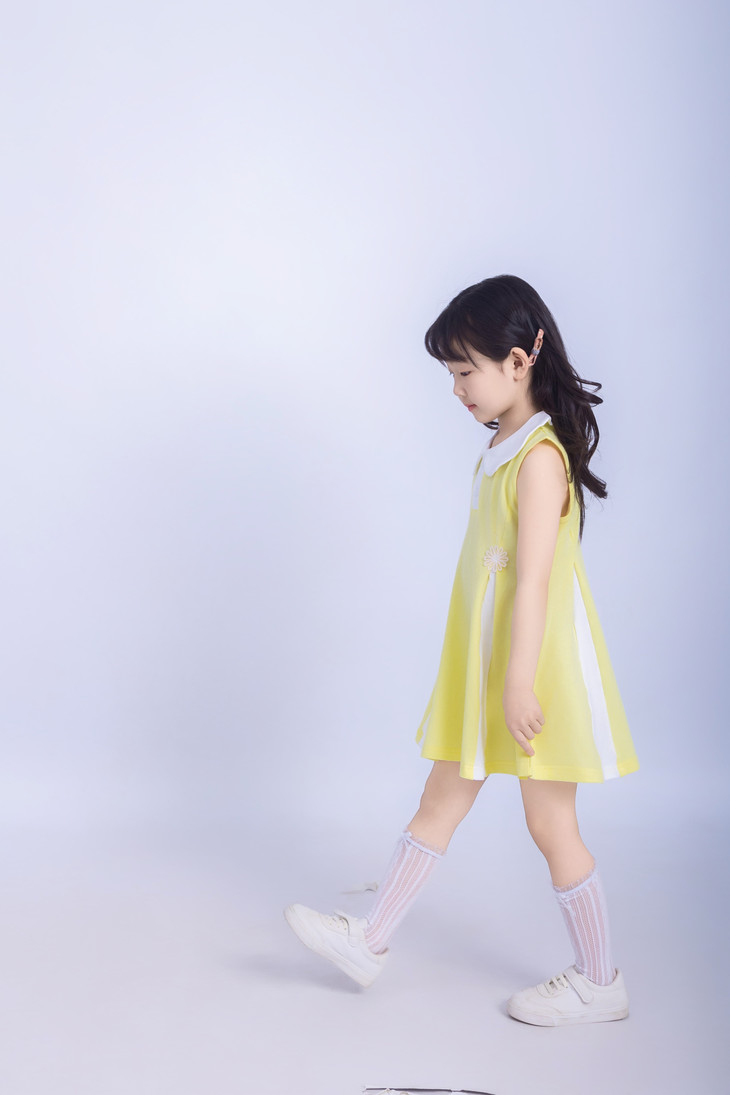 这款娃娃领拼接连衣裙🥰,简直是小女孩夏日的梦幻标配! 立体剪裁设计✨,巧妙勾勒出宝贝的可爱身形,每一个转身都灵动俏皮,像个小精灵在跳舞💃~ 拼接裙摆独具匠心,配色清新亮眼,像夏日里的一抹阳光🌞,活力满满又不失甜美。 娃娃领增添了几分纯真与萌趣,谁看了不得夸一句小公主呀👑! 面料清凉舒适,即便是炎炎夏日,宝贝也能自在玩耍,告别闷热🥳~