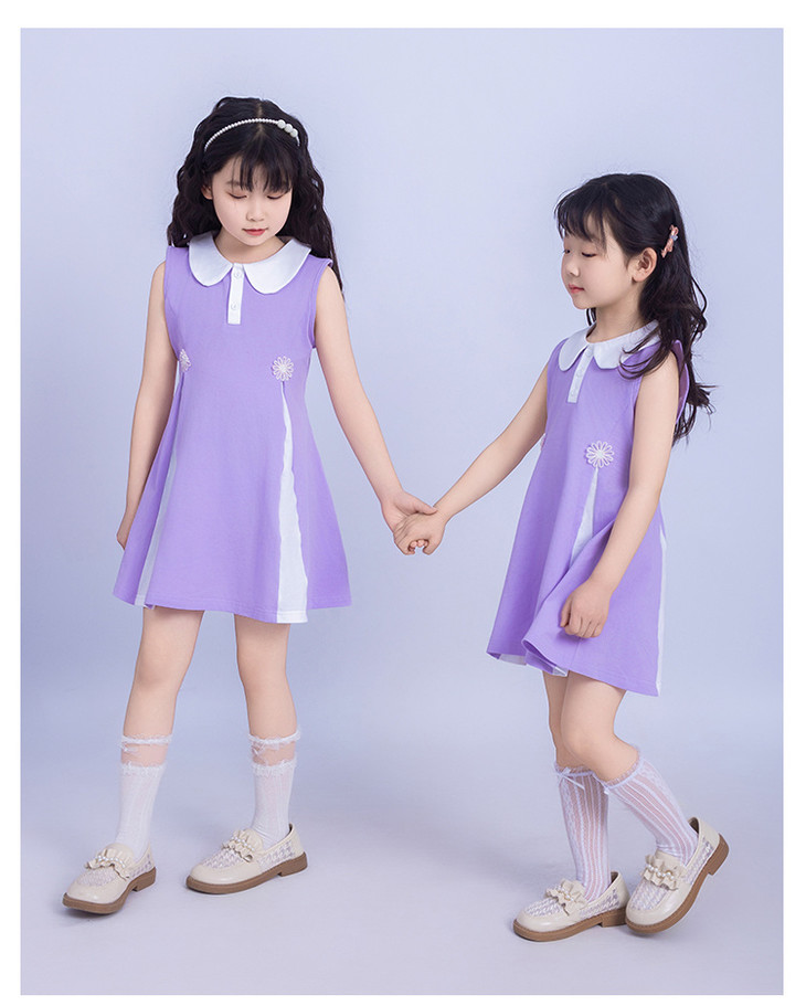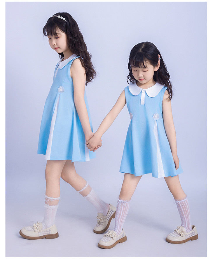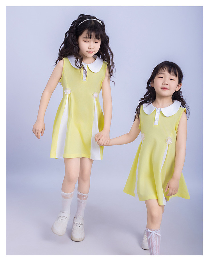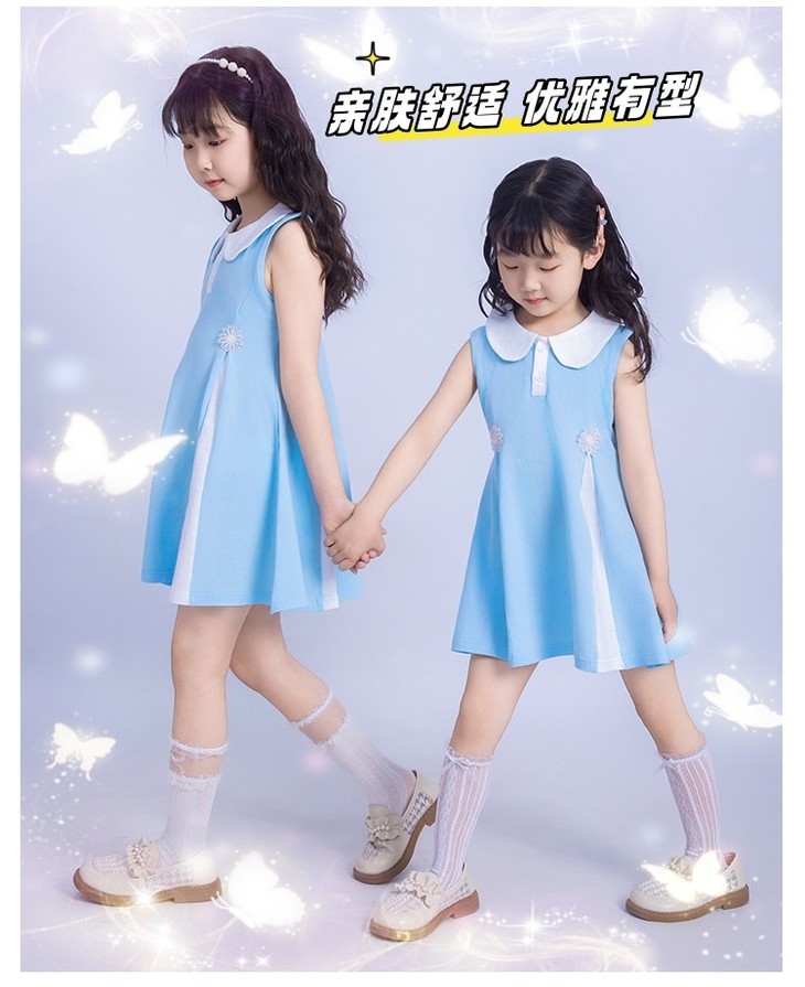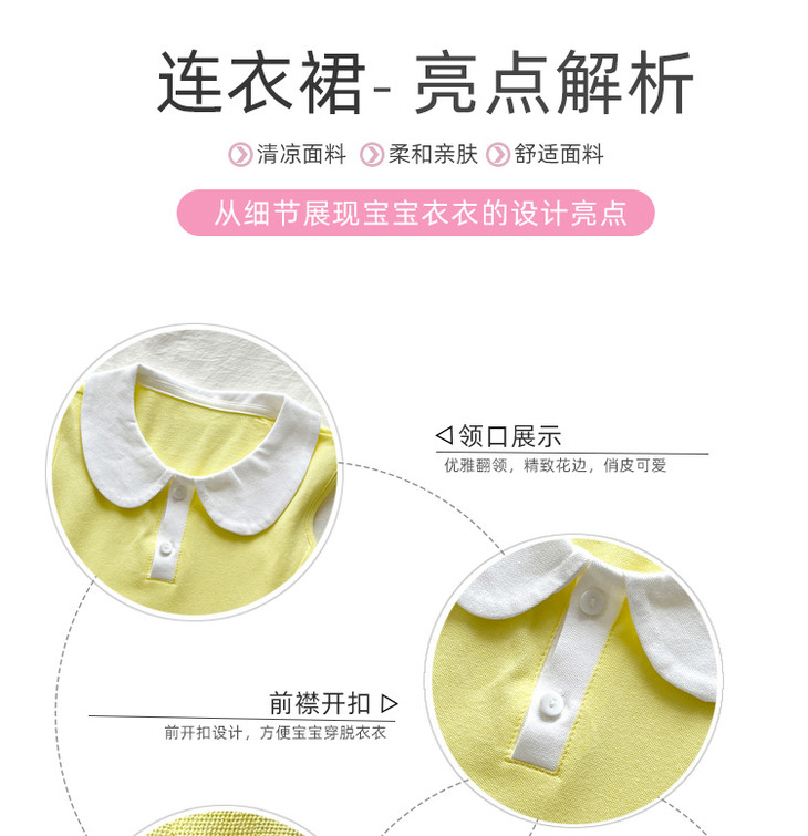 👗连衣裙的设计小心机,萌娃魅力加倍!细节满满超迷人! 🎀领口:优雅翻领配精致花边,宝贝瞬间变身俏皮小公主,拍照美炸,出片率💯! 👚前襟开扣:前开扣设计,宝宝自己轻松穿脱,自理能力培养 so easy,解放宝妈双手👏! 🌸装饰:刺绣花朵点缀裙身,精致可爱,让宝贝成为人群中闪亮小明星✨! 👗下摆:平整下摆,双层走线,久洗不变形,怎么洗都好看,妈妈超省心🥰!