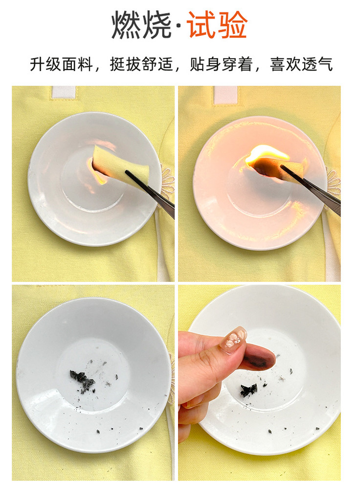 经过燃烧🔥试验验证,品质真的超让人放心~ 燃烧时,没有一丝刺鼻异味🙅,只有淡淡的气息,闻着就安心。 燃烧结束,盘子里留下的灰烬,轻轻一碰就碎成粉末✨,这可是纯正天然材质的有力证明!不含有害化学合成成分,给宝贝穿再合适不过啦。 不仅挺括舒适、贴身透气,更重要的是安全健康!🥰