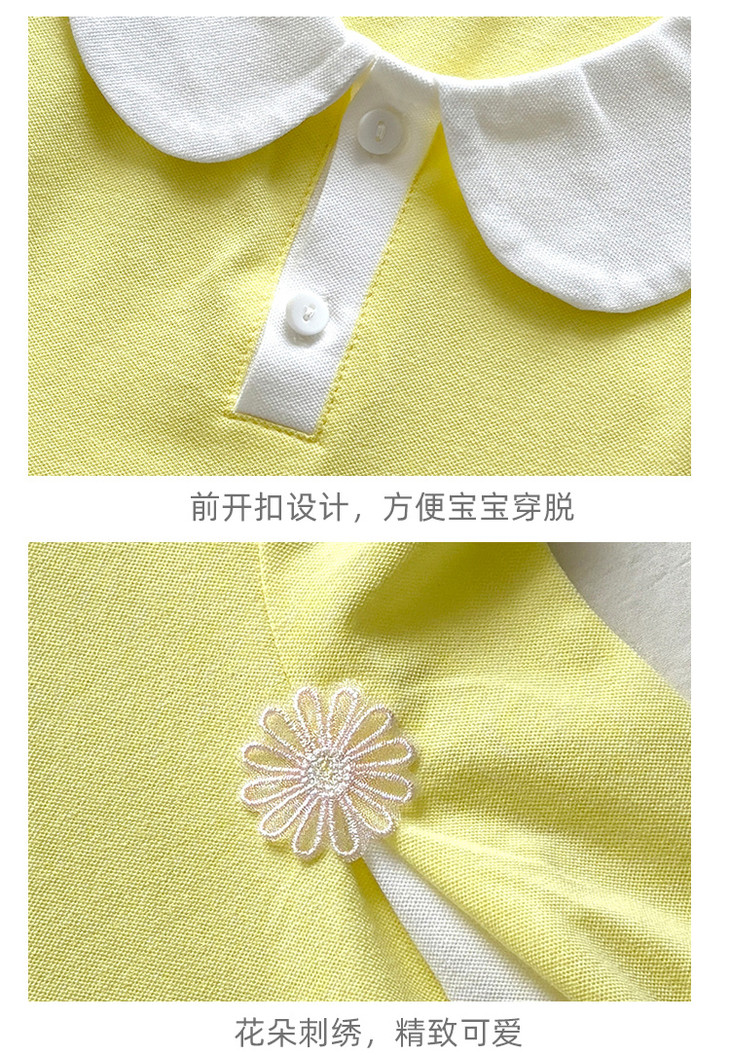 四款神仙颜色可选! 💗粉色娇俏、💛黄色活力、💙蓝色清新、💜紫色梦幻。 不管哪种颜色,配上精致娃娃领和可爱刺绣,都超迷人✨~宝妈们别纠结啦,赶紧给宝贝挑一挑呀🥰!