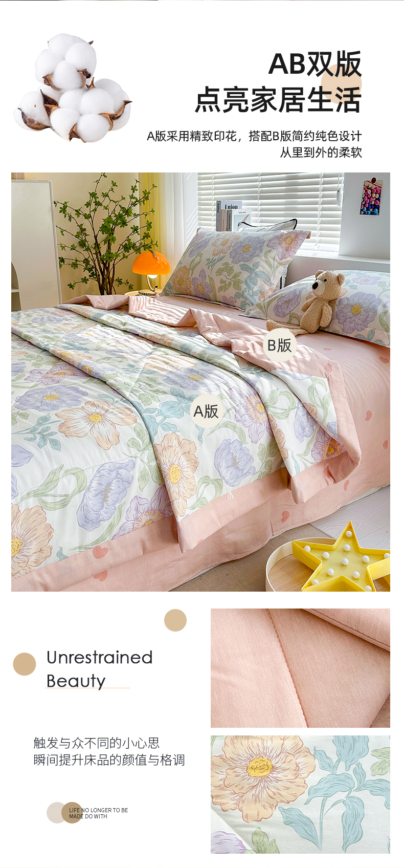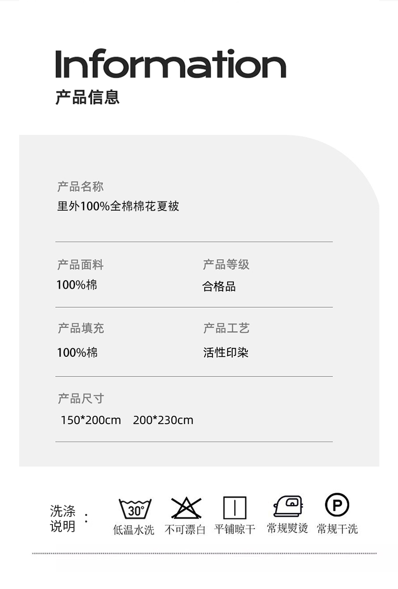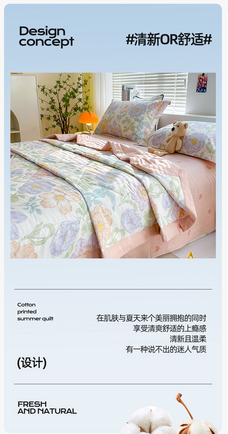 里外全棉印花夏被 可水洗新疆棉花夏凉被