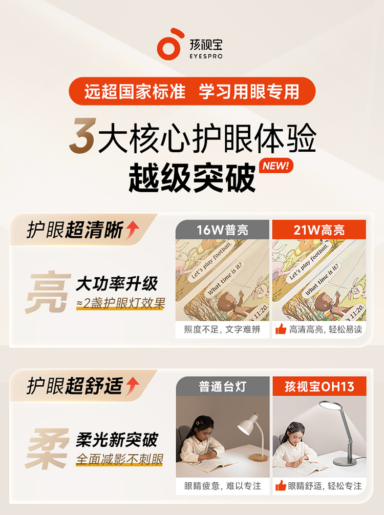 孩视宝护眼灯OH13 书桌全域学习灯新升级
