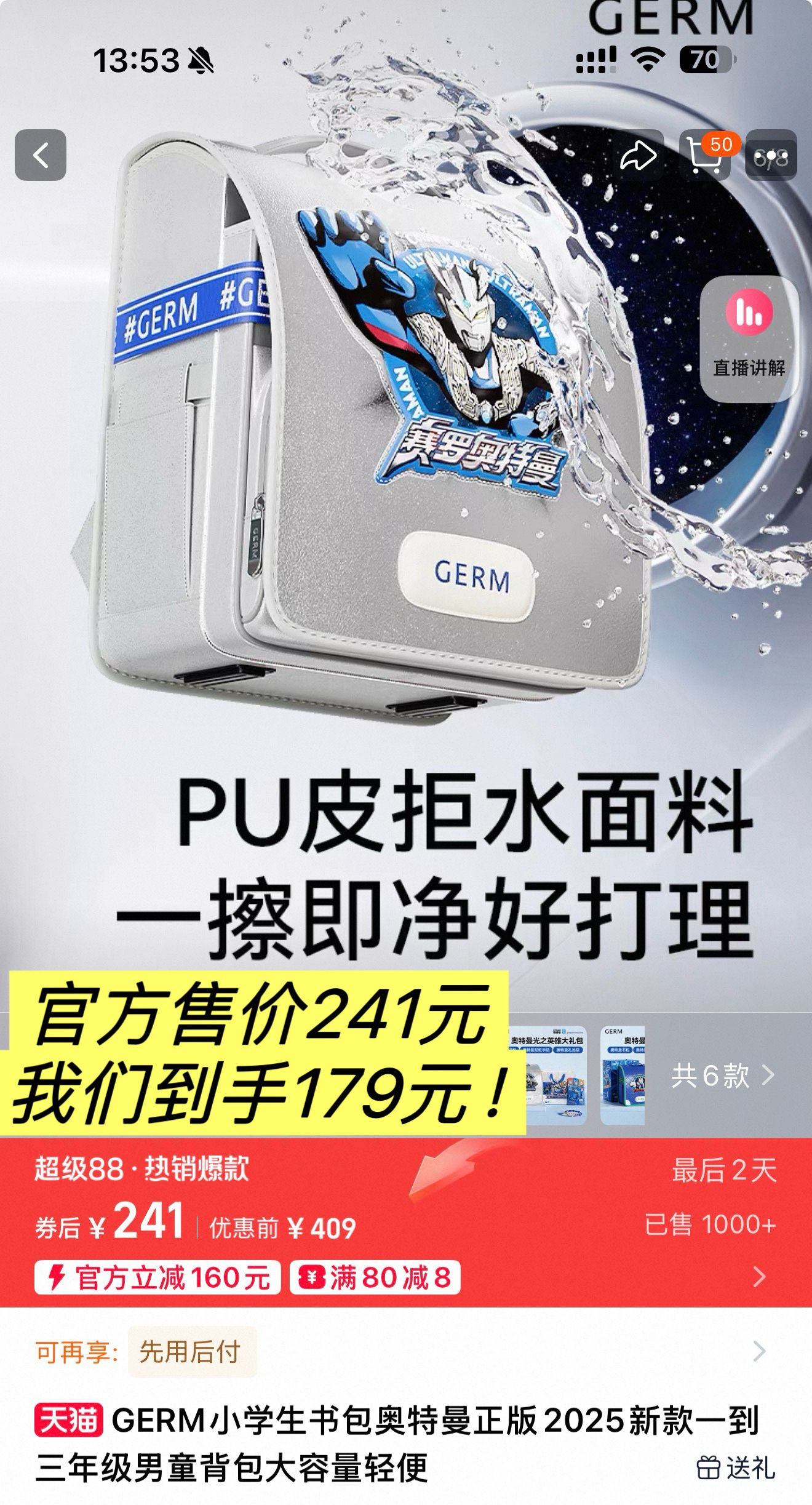 2.13-2.23停发!🔥再不买开学没货了❗爆款IP正品保障❗孩子指定要的GERM联名背书包‼【GERM&奥特曼&小马宝莉&芭比&面包超人正版联名】高颜值+高品质+高口碑❗️1-6年级送礼物