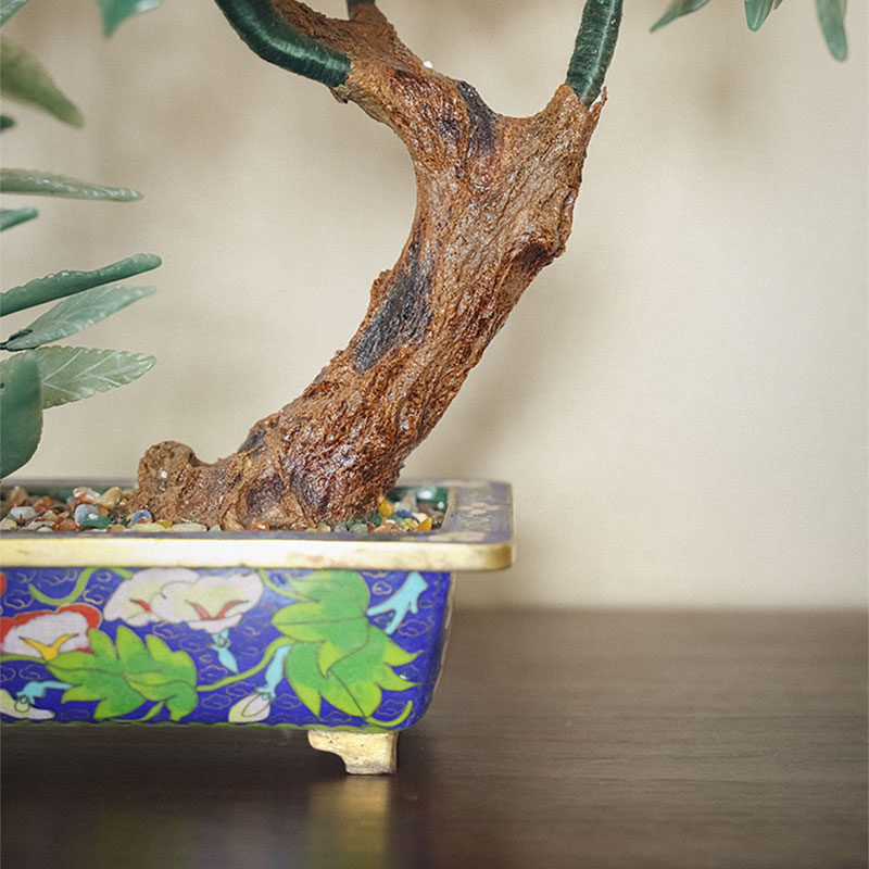 【已售】独角鹿西洋古董 20世纪中国创汇时期出品牵牛花纹样景泰蓝盆装饰珍宝「牡丹」像生盆景