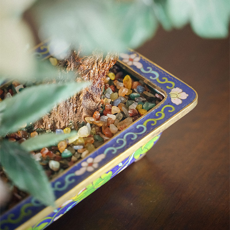 20世纪中国创汇时期出品牵牛花纹样景泰蓝盆装饰珍宝「牡丹」像生盆景