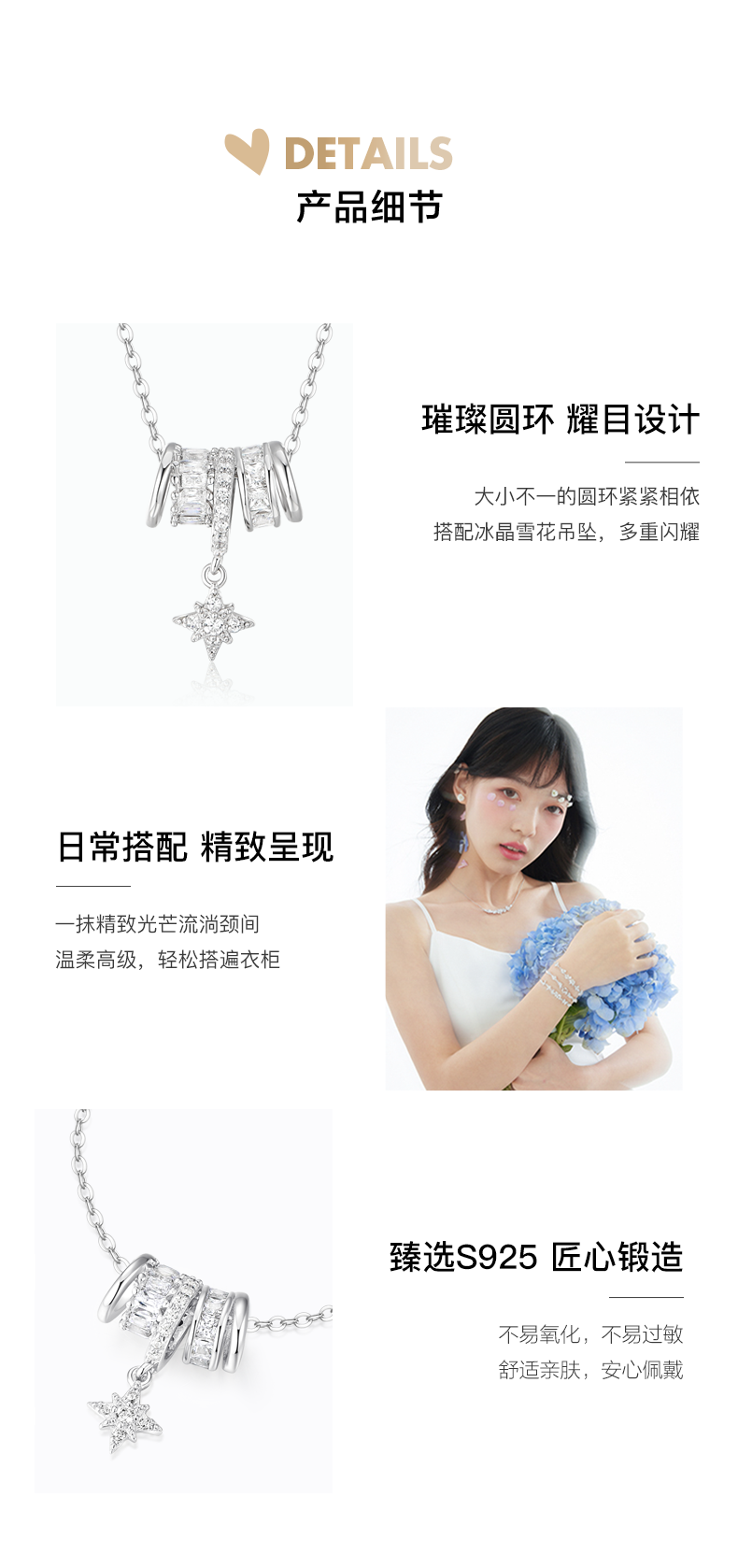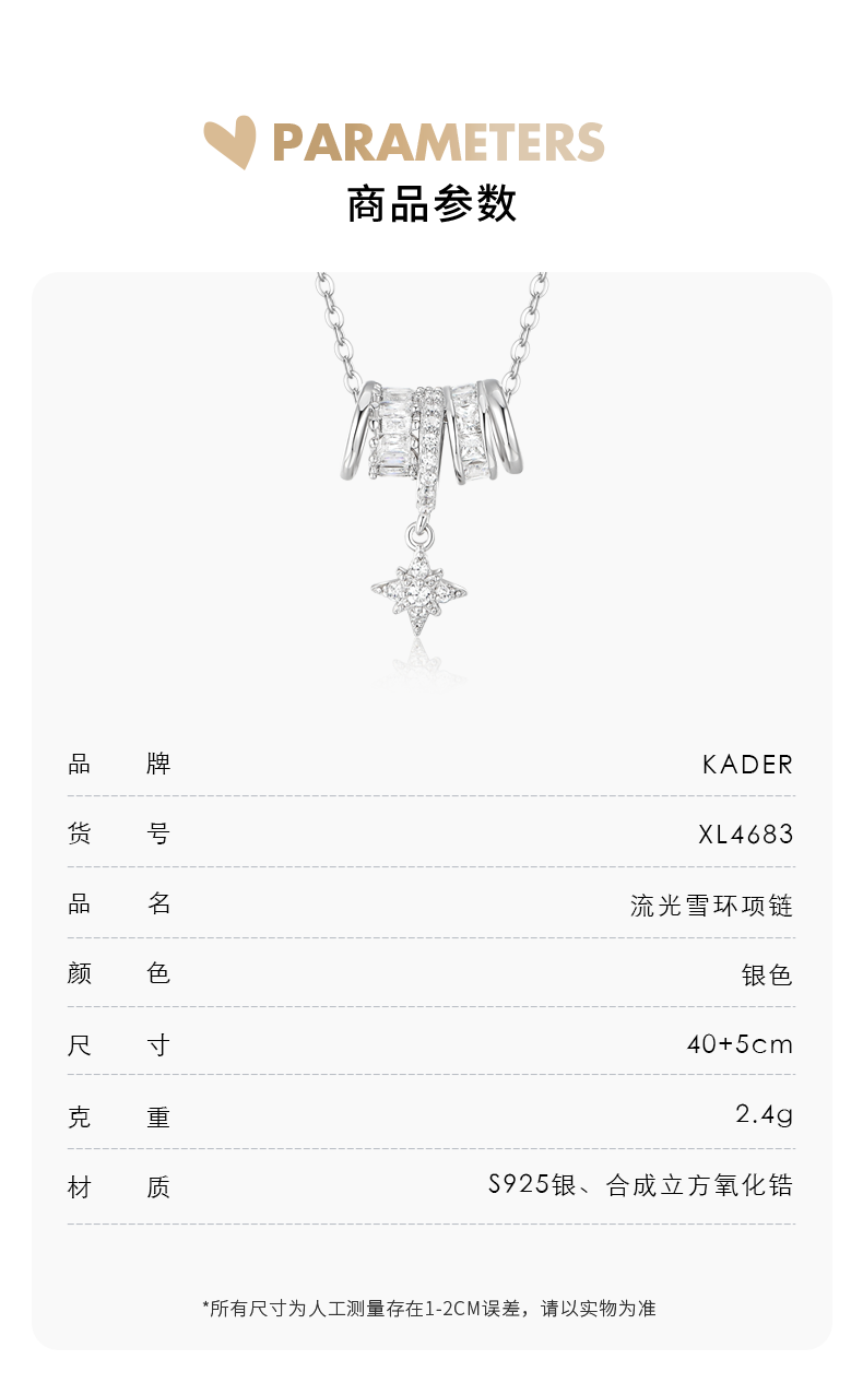 卡蒂罗/KADER 流光雪环项链 925银璀璨圆环梦幻雪花轻奢时尚可调节锁骨链 满钻吸睛优雅气质配饰 妈妈女神礼盒款