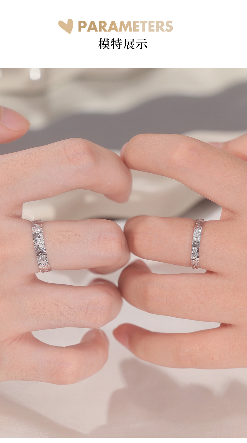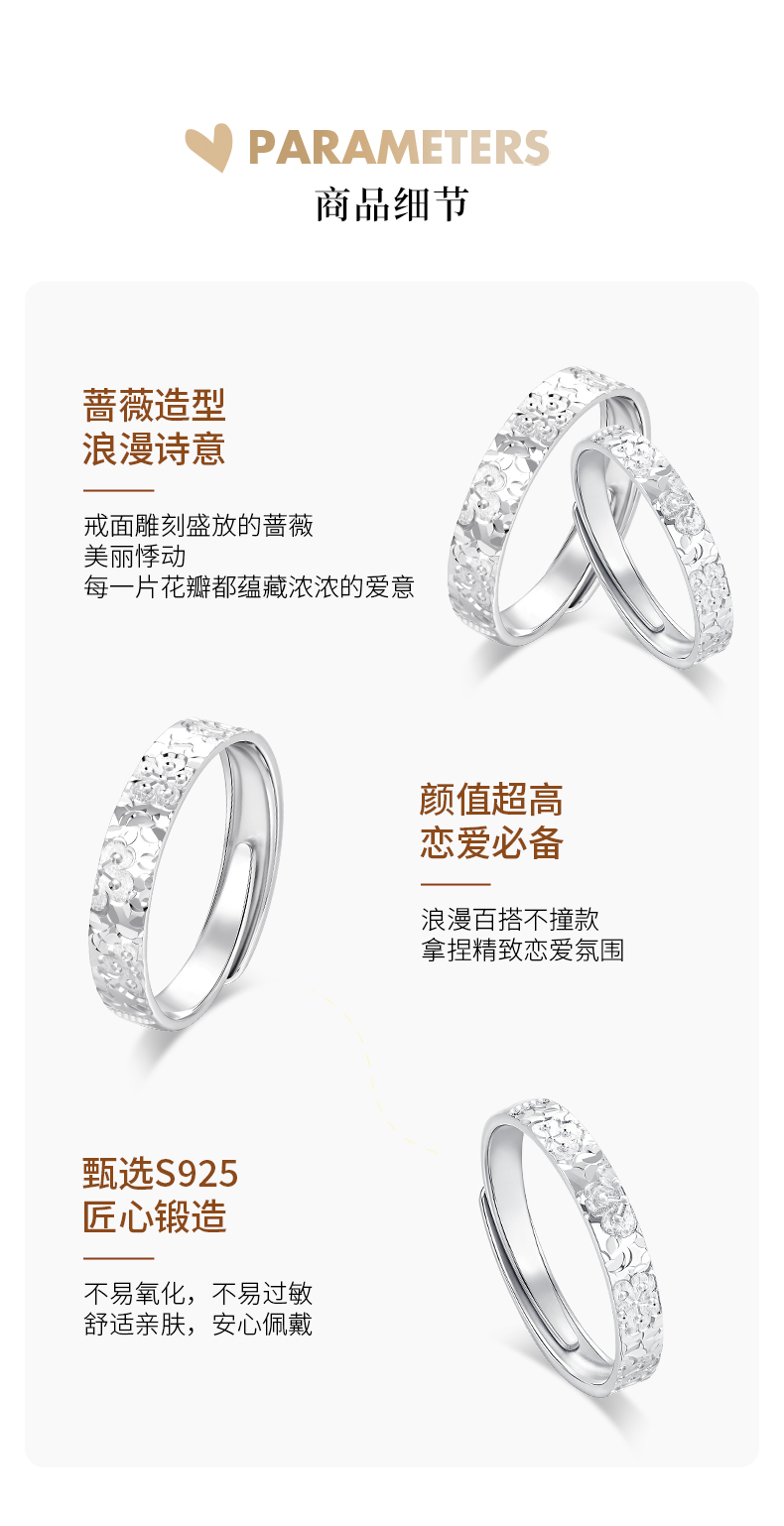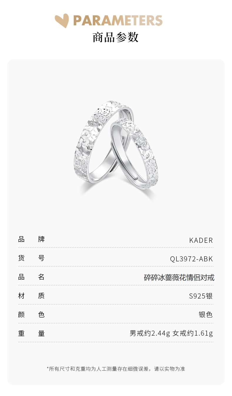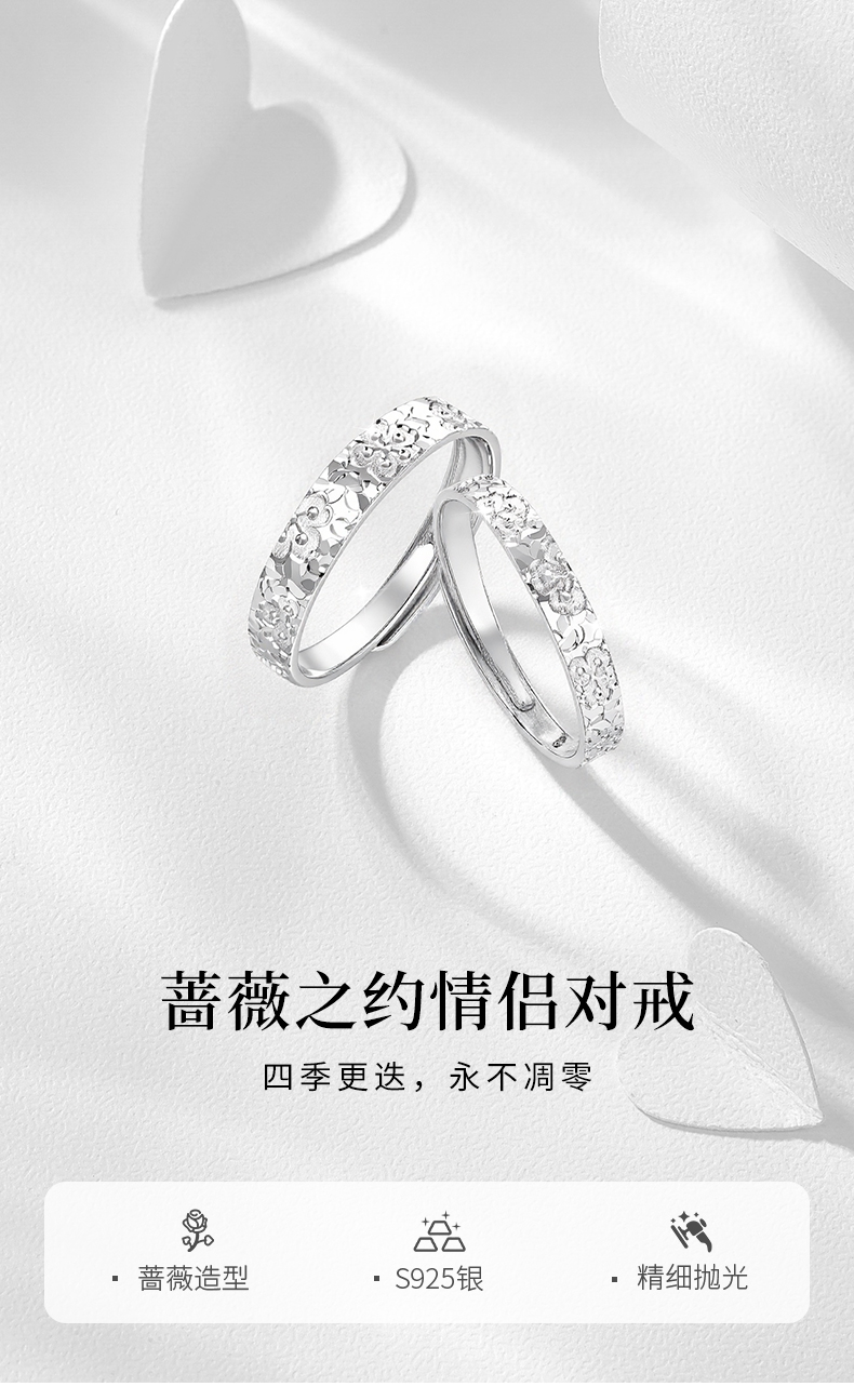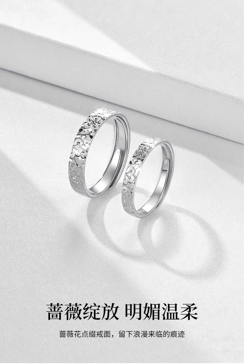 卡蒂罗KADER 碎碎冰蔷薇花情侣对戒 925银满天星璀璨星河钟爱久久雕刻盛放蔷薇 复古简约轻奢小众设计女朋友素圈可调节一对